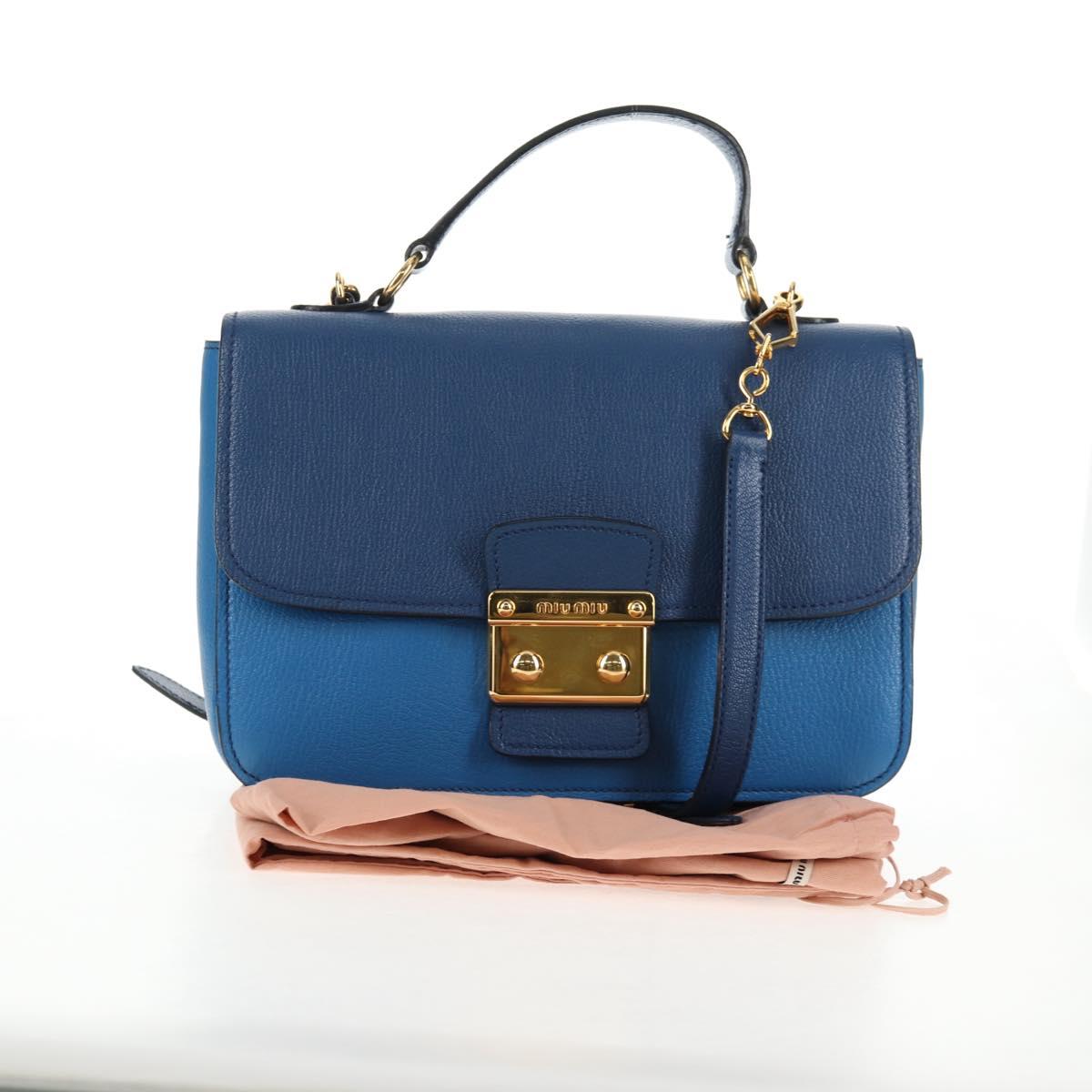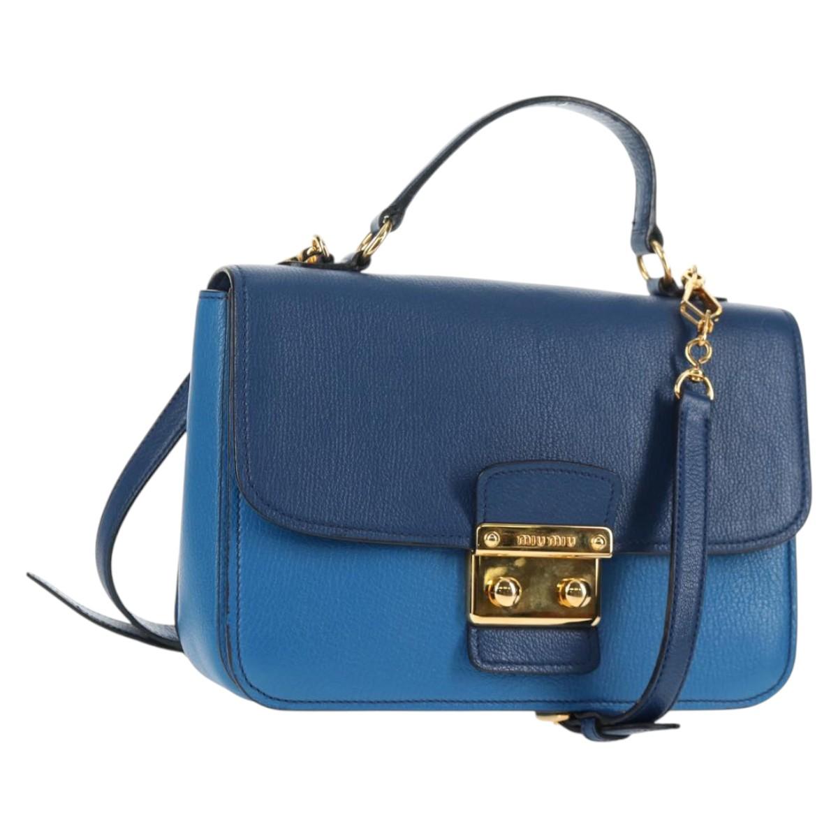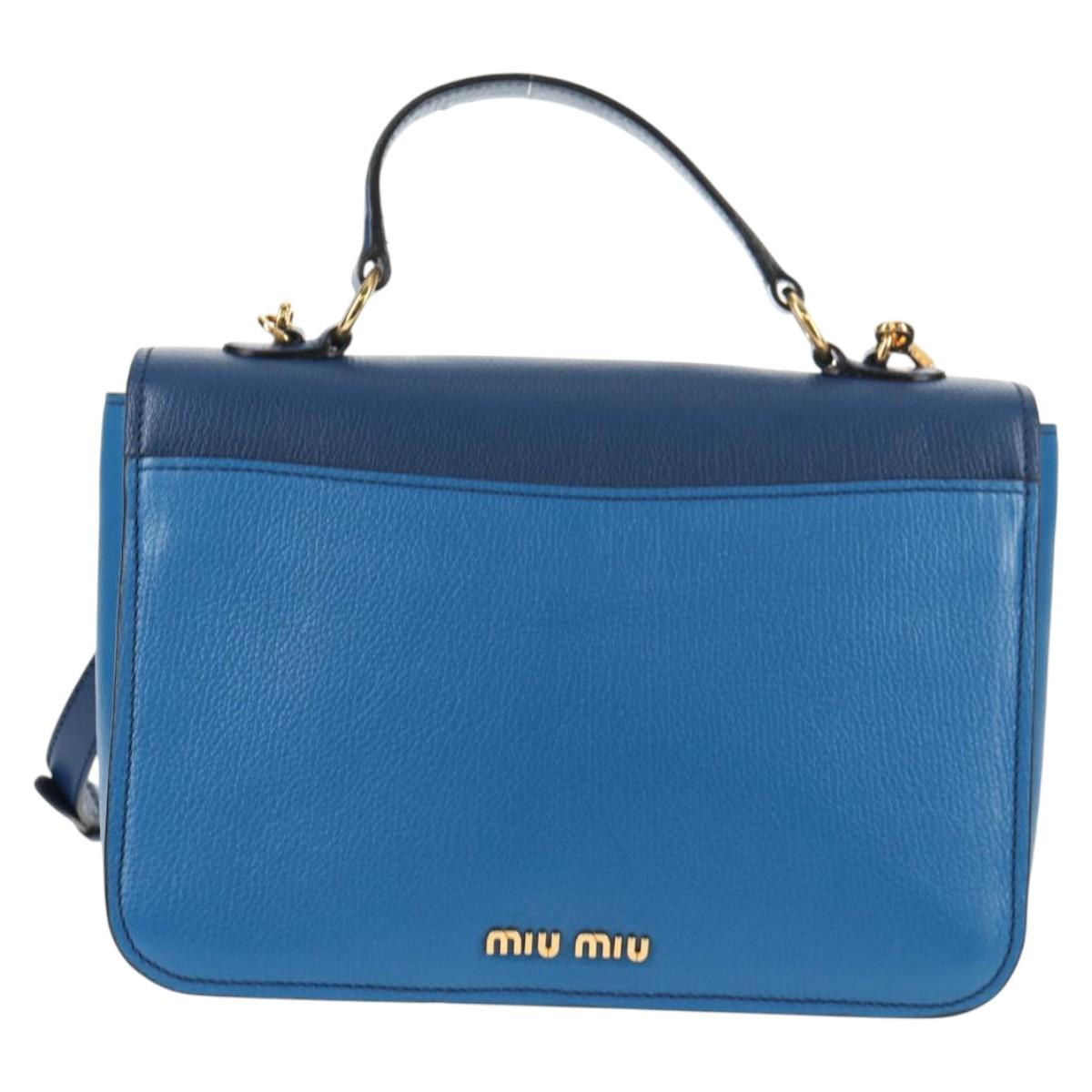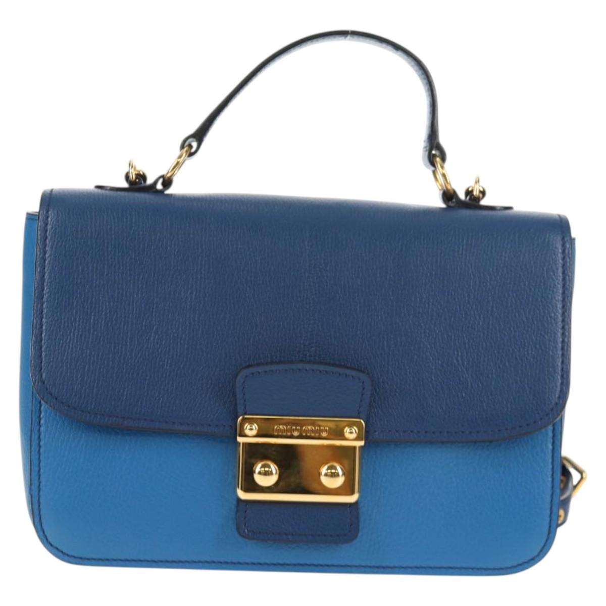 Miu Miu Hand Bag Leather 2way Blue Gold Auth 135331V