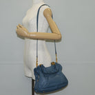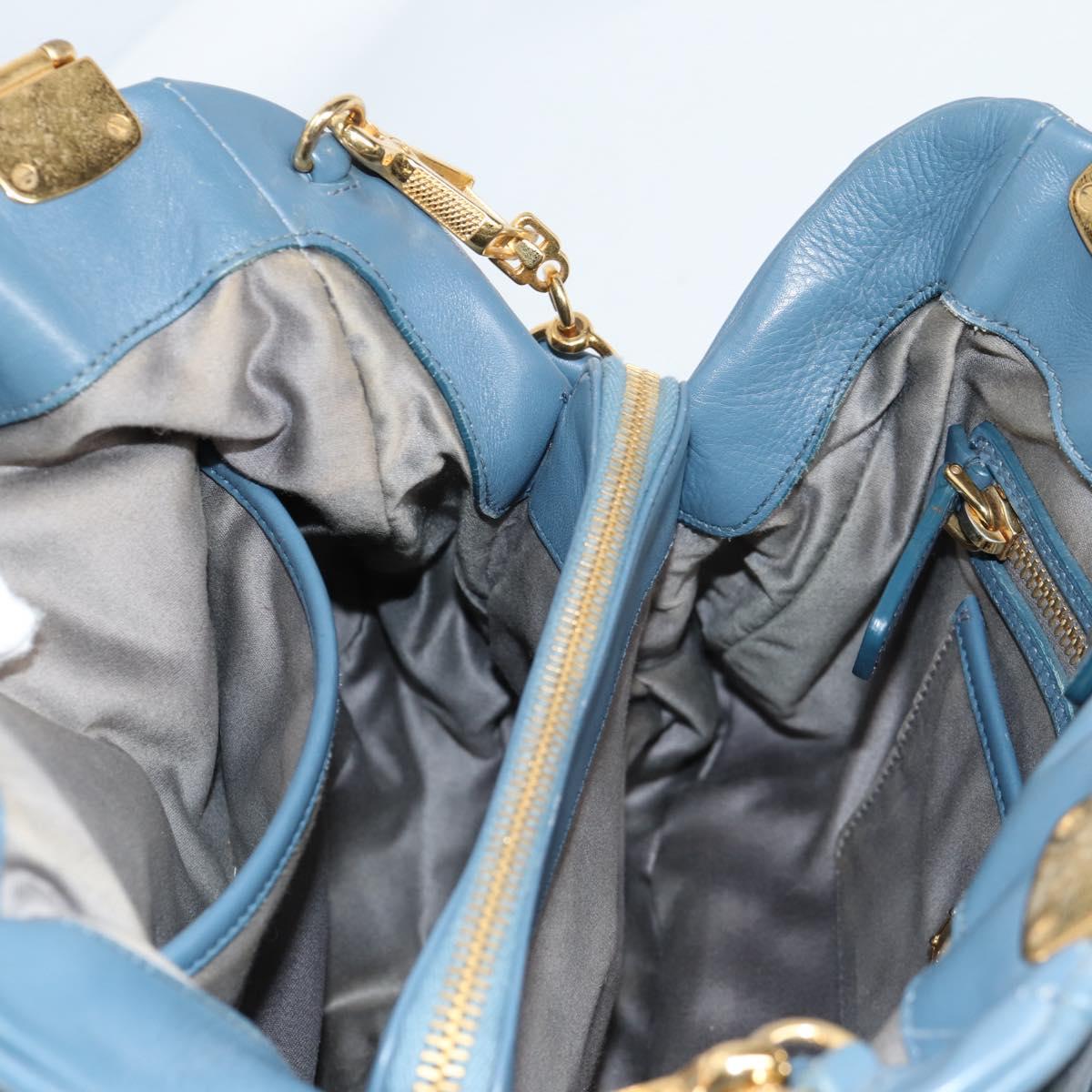 Miu Miu Hand Bag Leather 2way Blue Gold Auth SW1457V