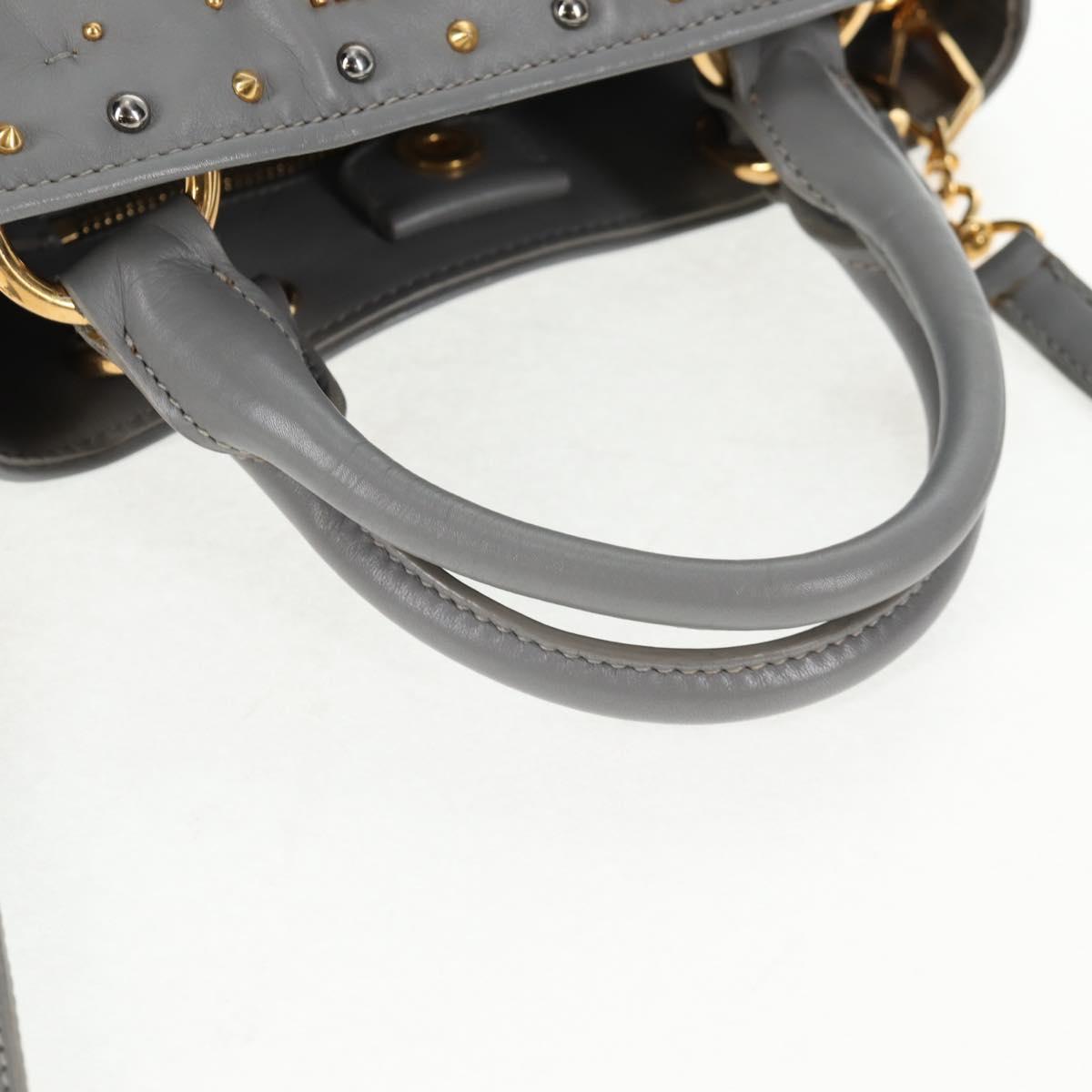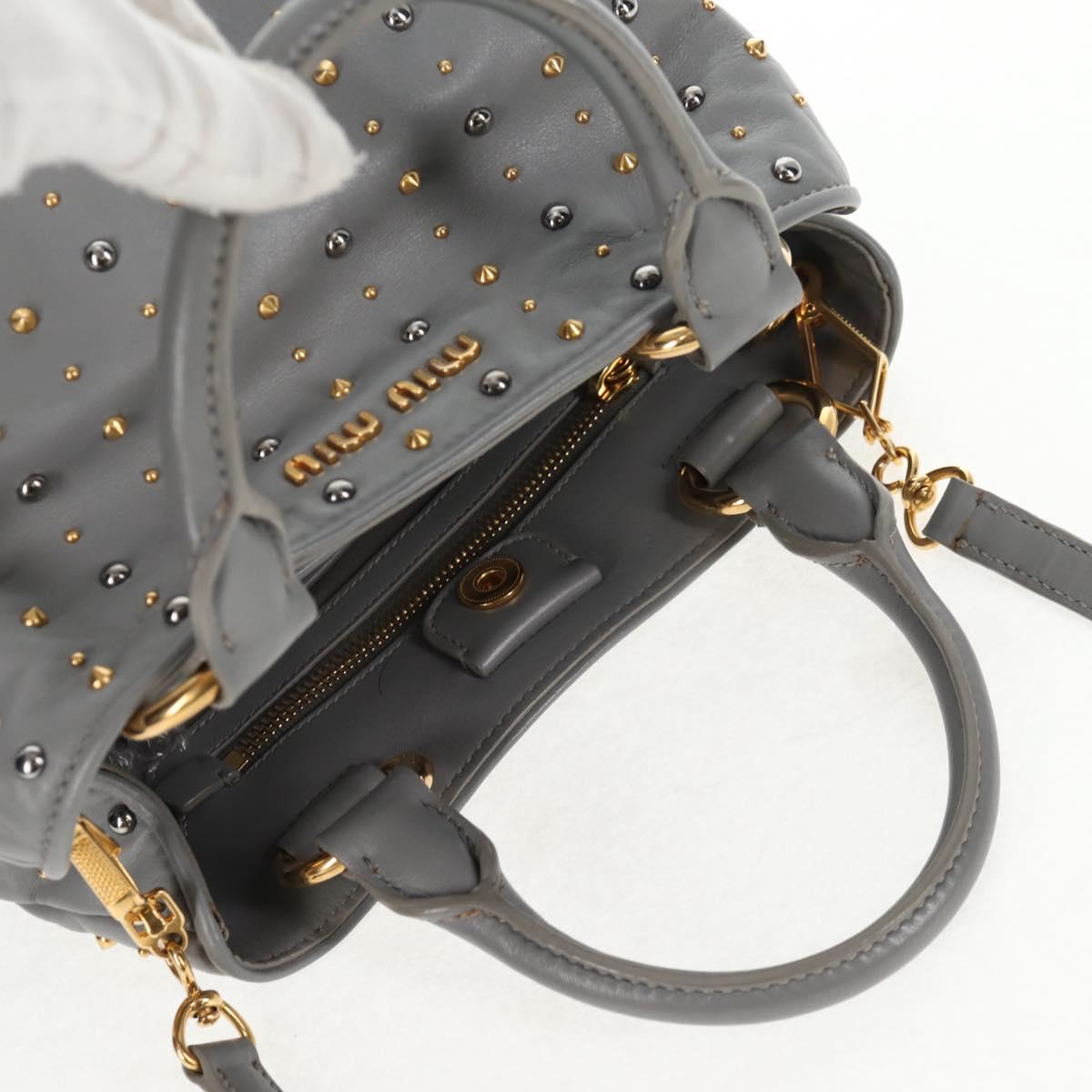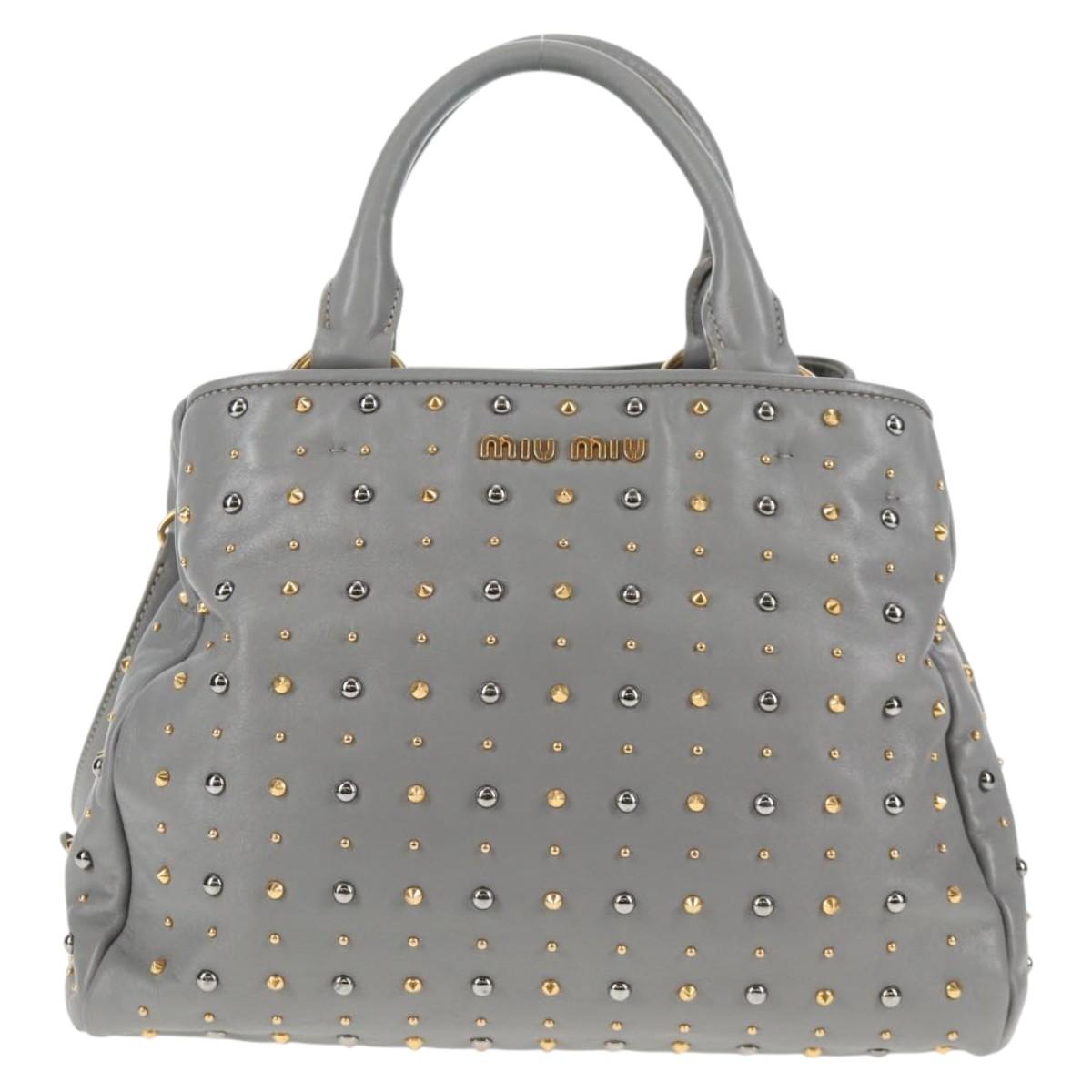 Miu Miu Hand Bag Leather 2way Gray Gold Auth 135324V