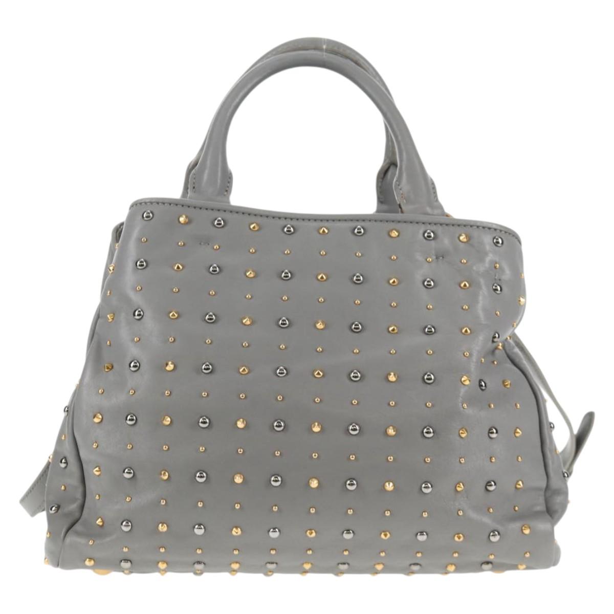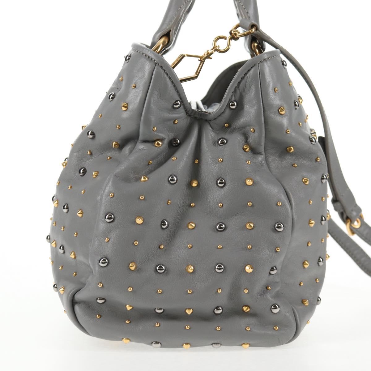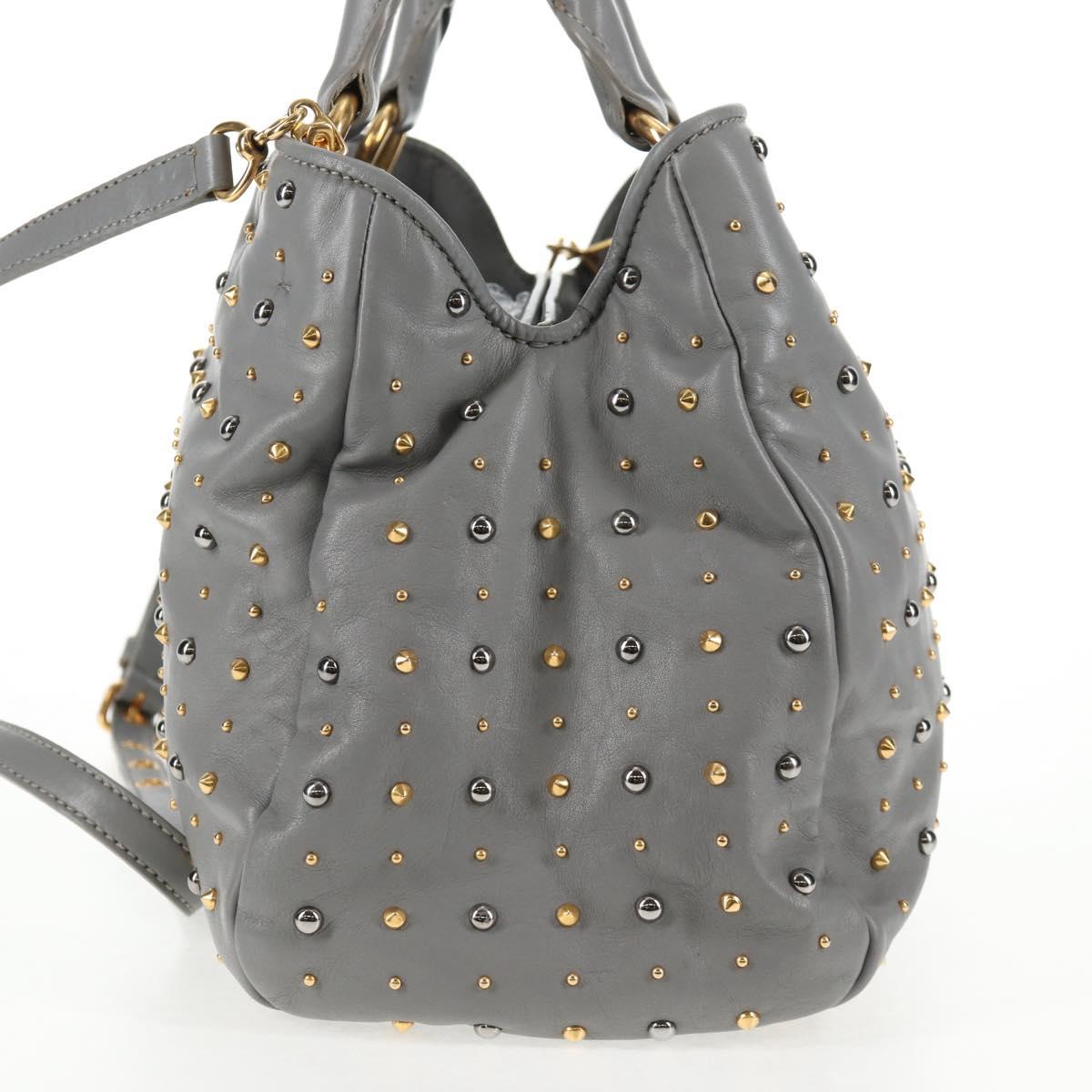 Miu Miu Hand Bag Leather 2way Gray Gold Auth 135324V