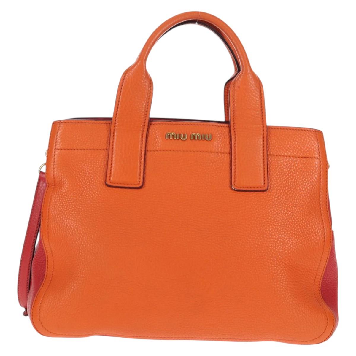 Miu Miu Madras Hand Bag Leather 2way Orange Gold Auth BA5951V