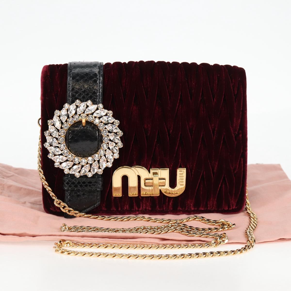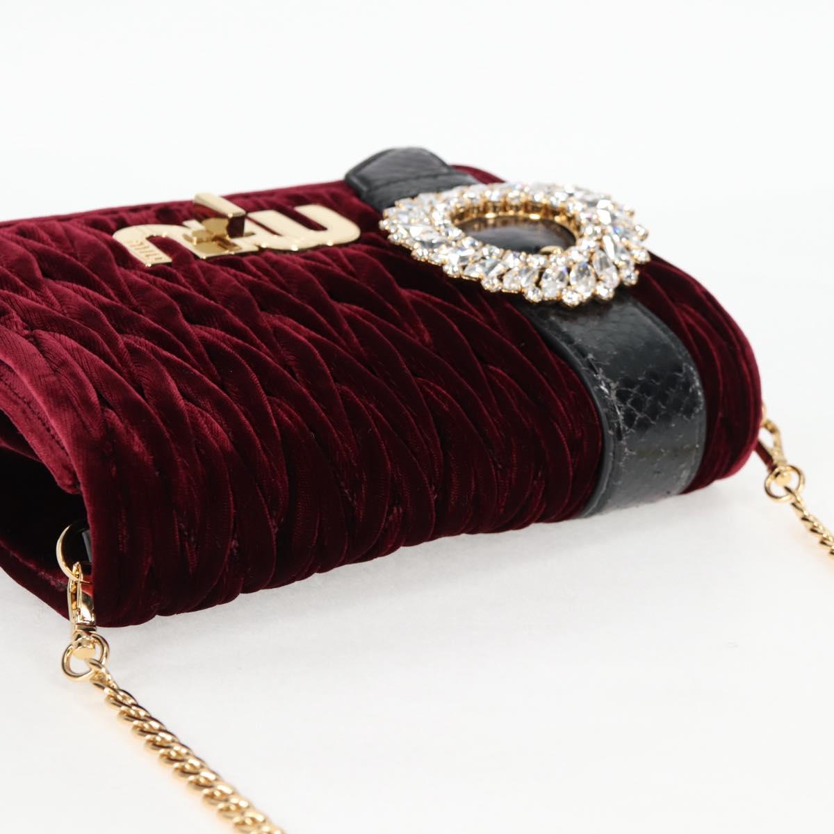 Miu Miu Matelasse Bijoux Shoulder Bag Velor Wine Red Gold Auth 118941M