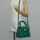 Miu Miu Matelasse Hand Bag Leather 2way Green Gold Auth 143983M