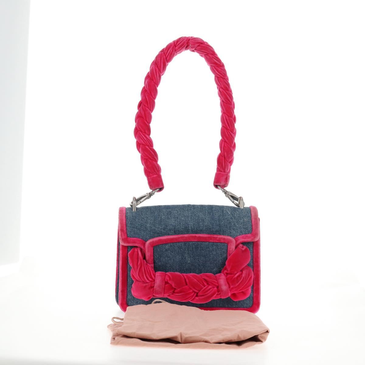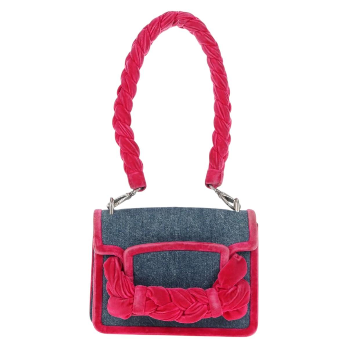 Miu Miu Shoulder Bag Denim Blue Silver Auth 142288V