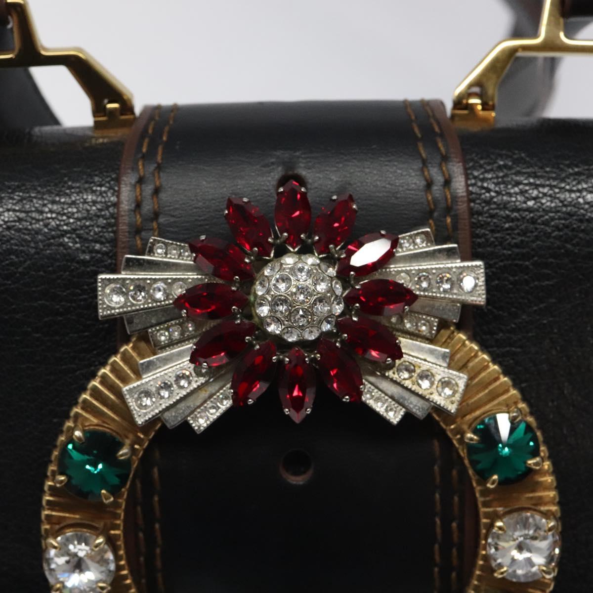 Miu Miu Shoulder Bag Leather Black Gold Auth MX101AV