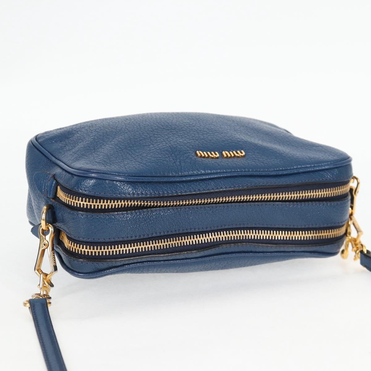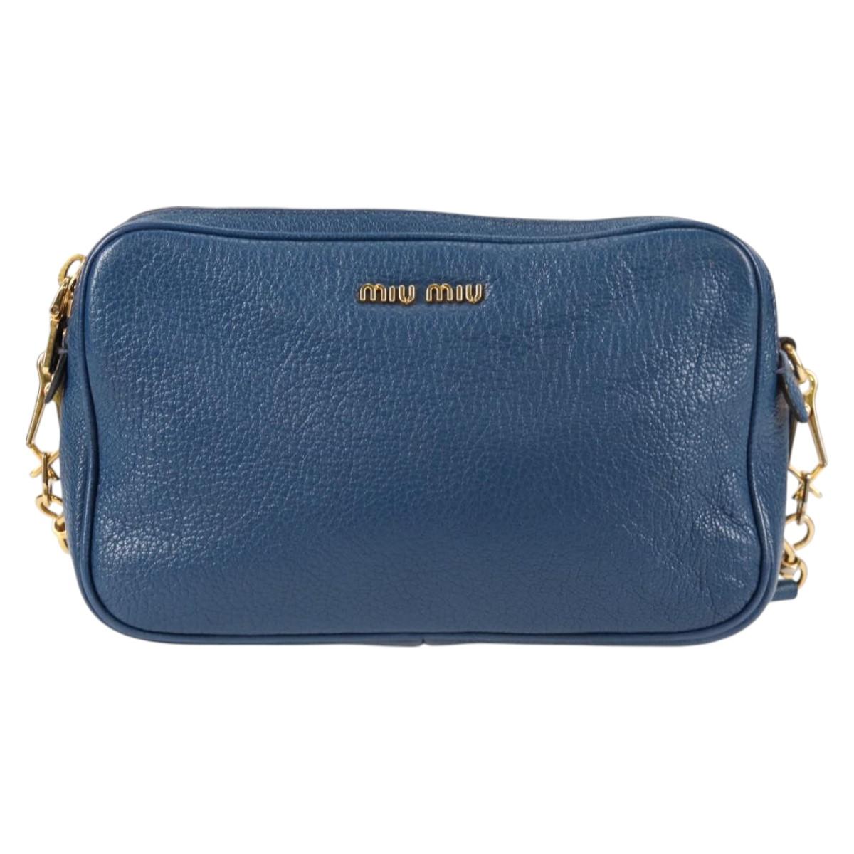 Miu Miu Shoulder Bag Leather Blue Gold Auth 130157V