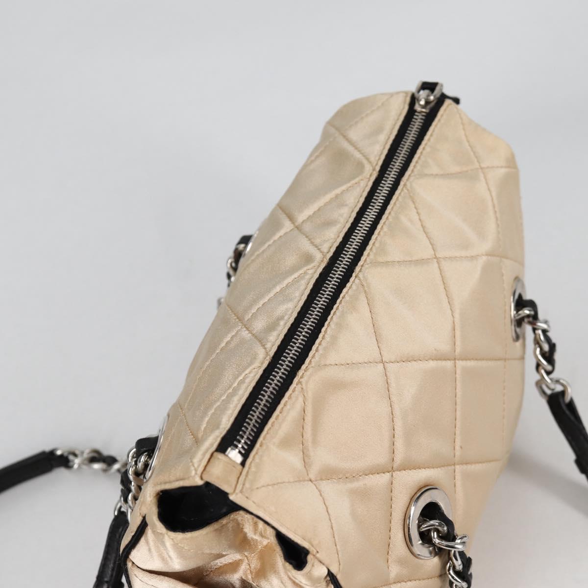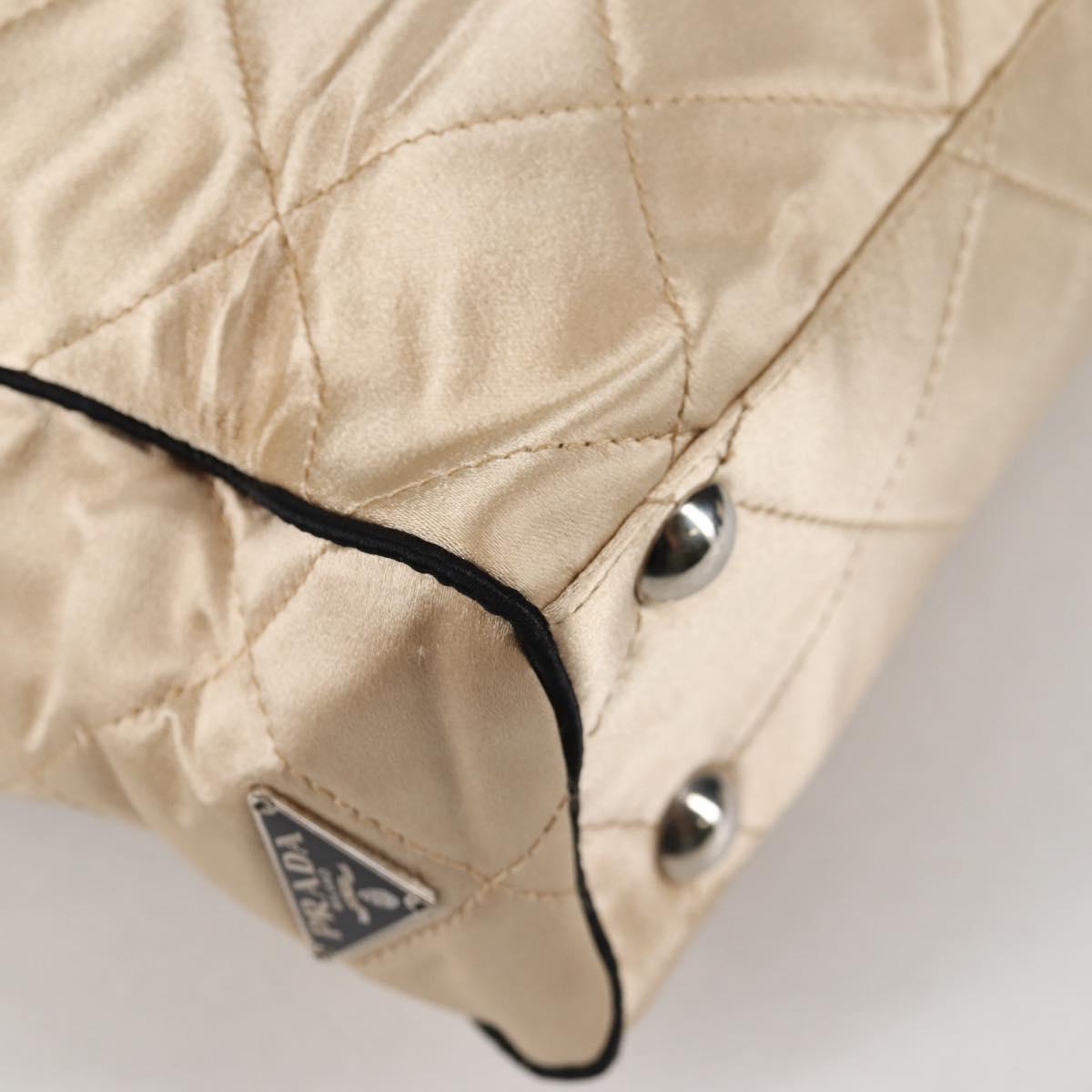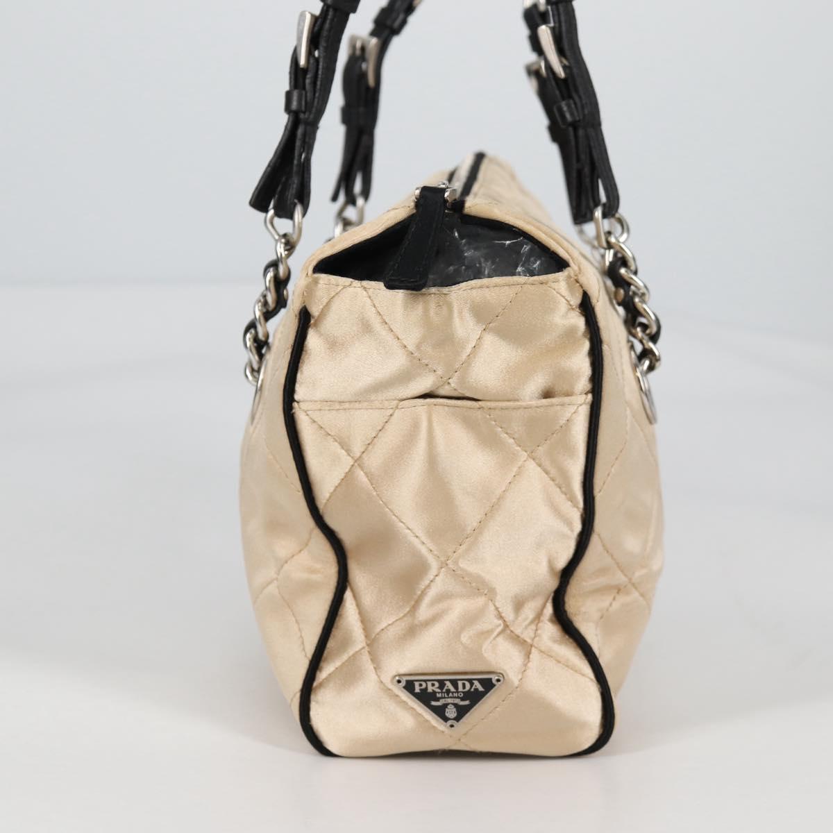 PRADA Chain Shoulder Bag Satin Beige Silver Auth 141037V