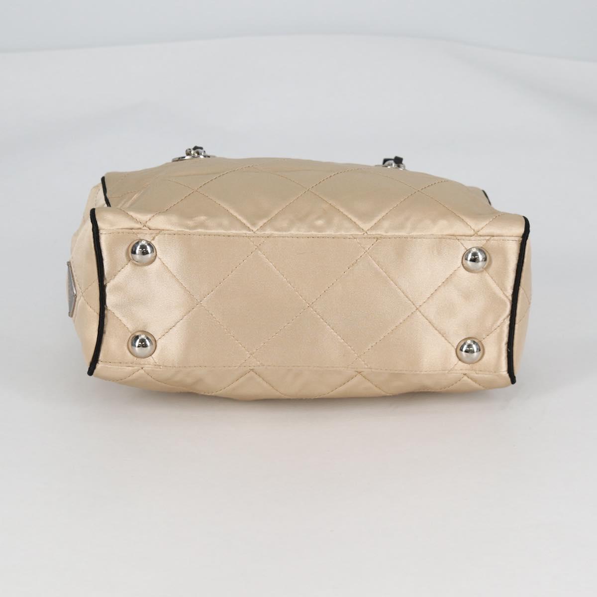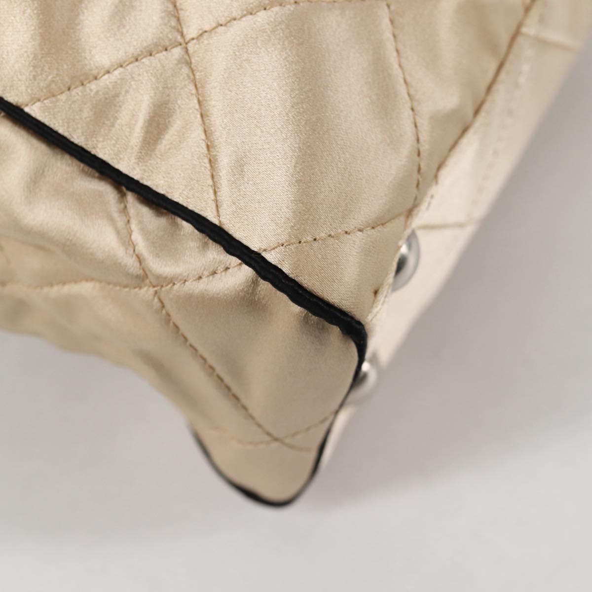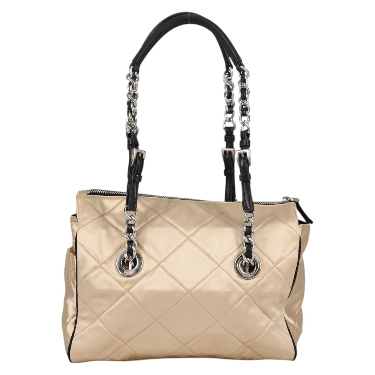 PRADA Chain Shoulder Bag Satin Beige Silver Auth 141037V