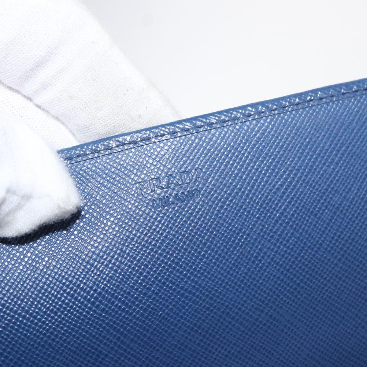 PRADA Chain Shoulder Wallet Safiano leather Blue Gold Auth ka128