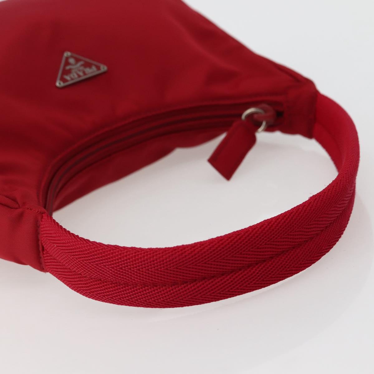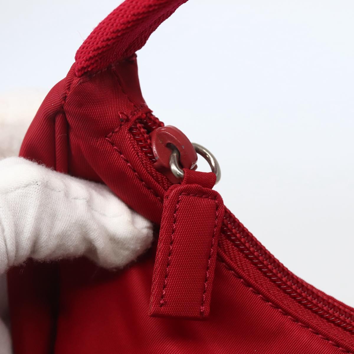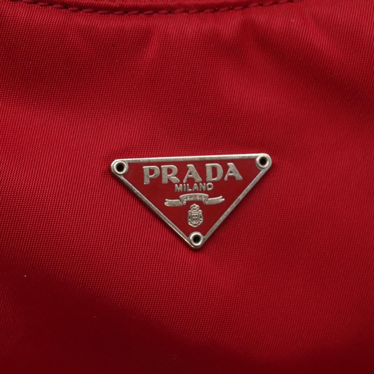 PRADA Hand Bag Nylon Red Silver Auth 143136V