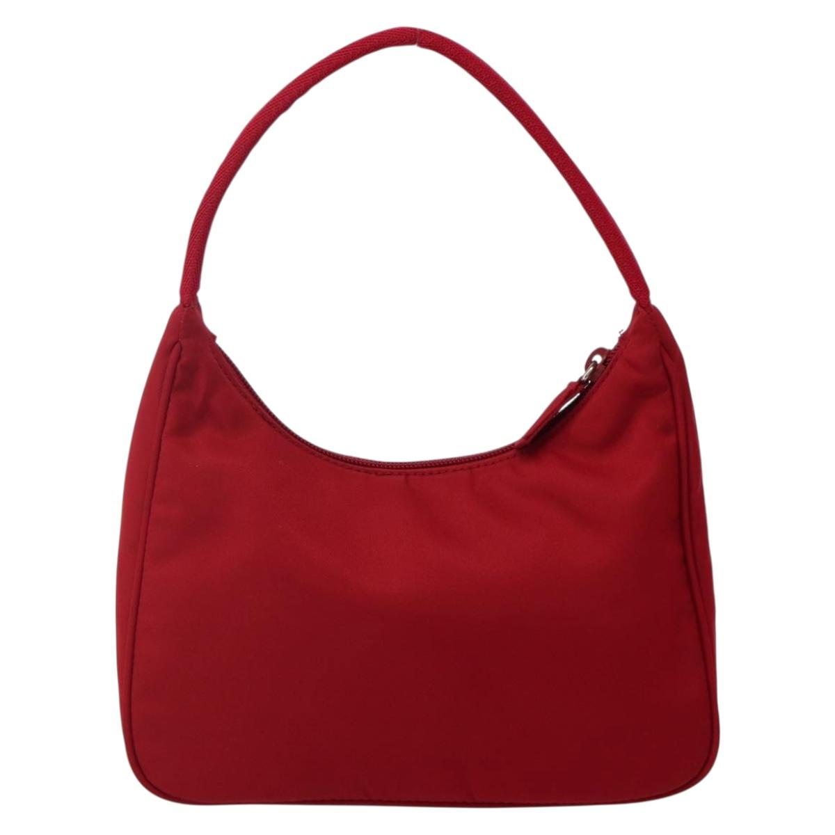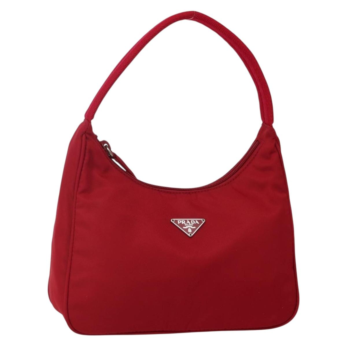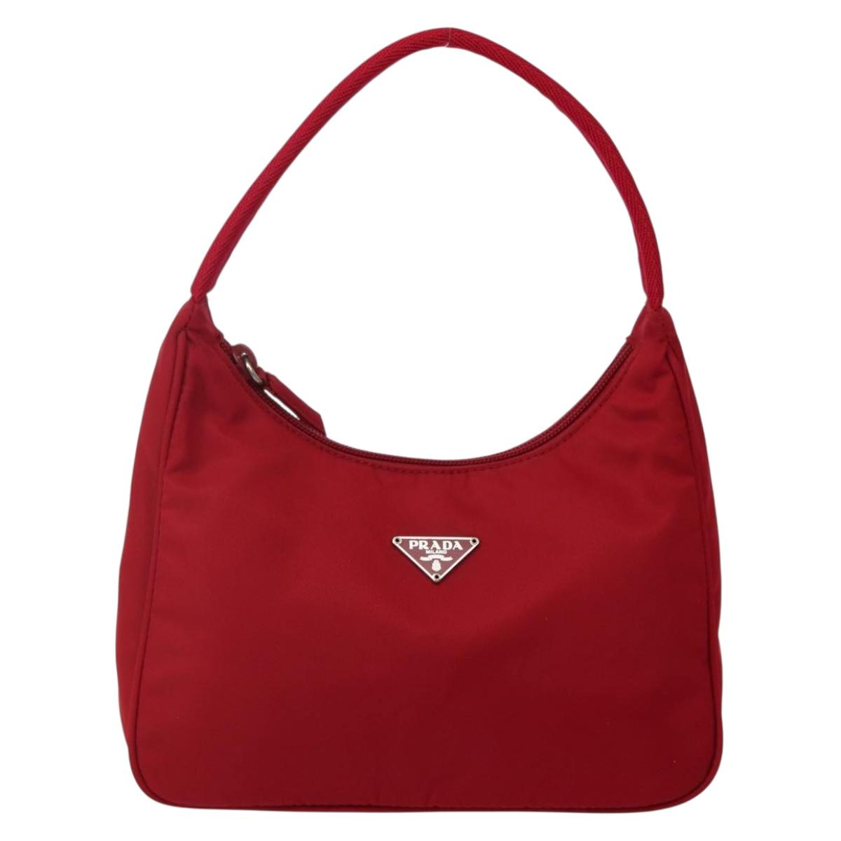 PRADA Hand Bag Nylon Red Silver Auth 143136V