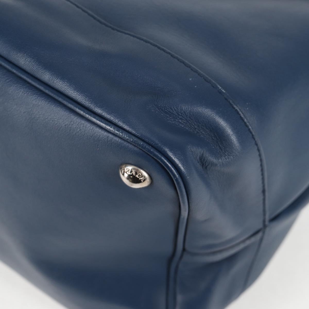 PRADA Shoulder Bag Leather Blue Silver Auth 127875V