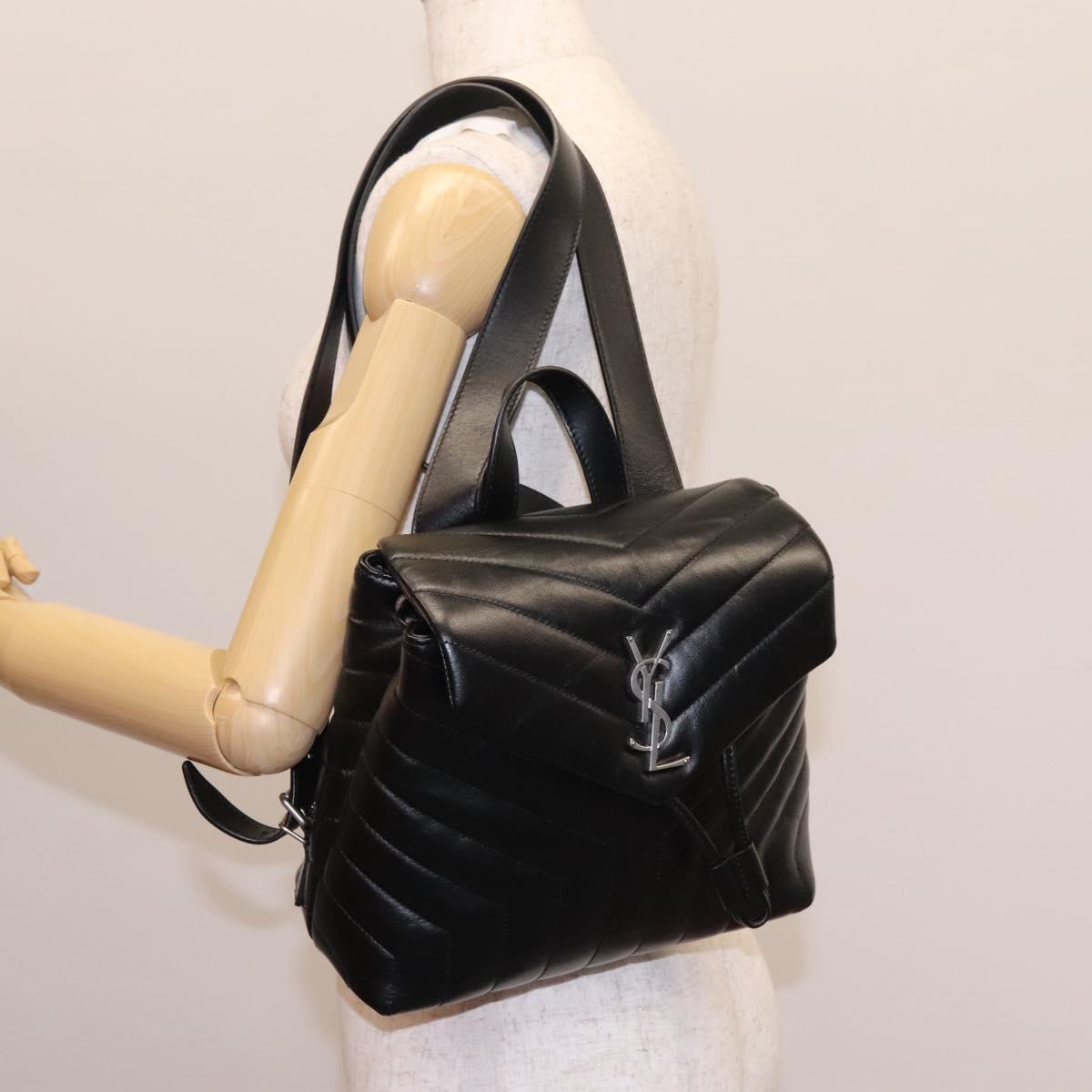 SAINT LAURENT Backpack Lamb Skin Black Auth 117169AM