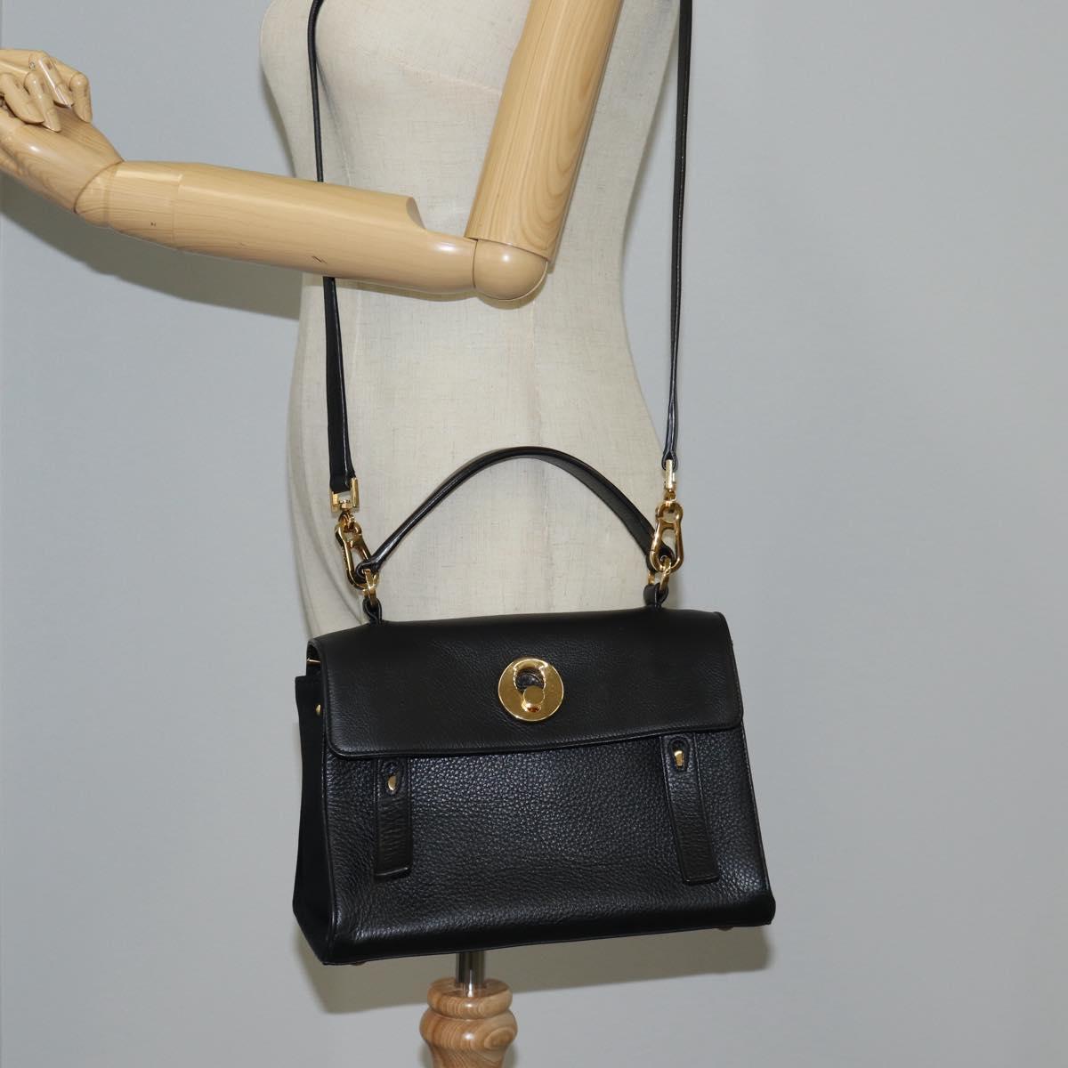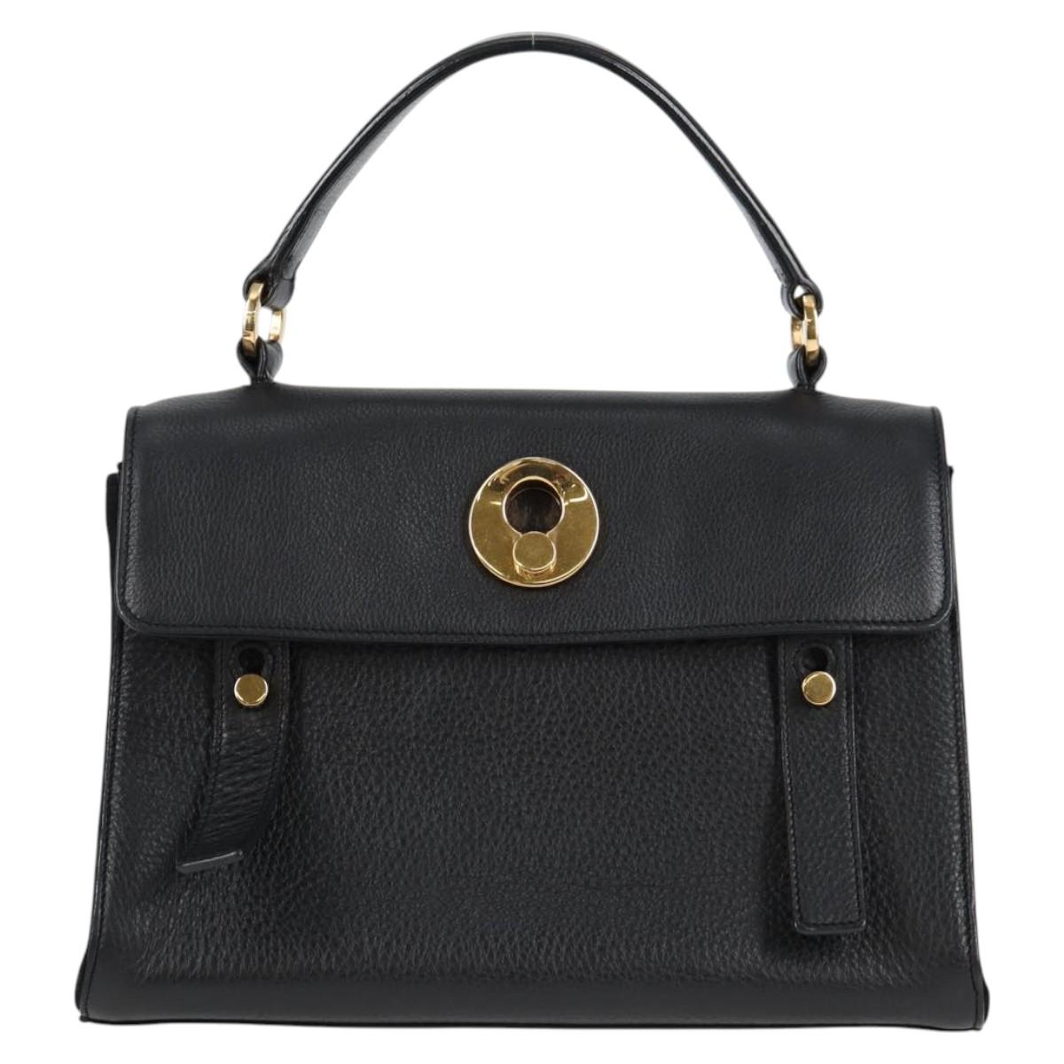 SAINT LAURENT Muse Toe Hand Bag Leather 2way Black Gold Auth yk18438M