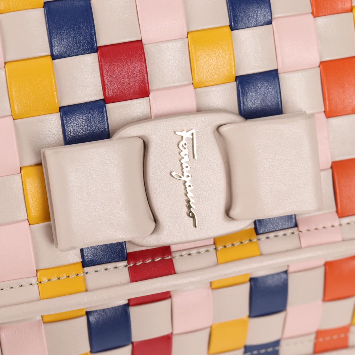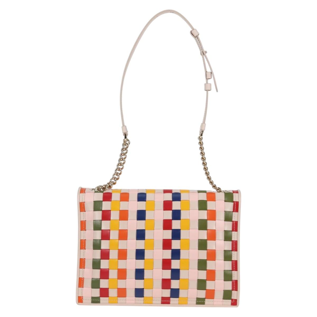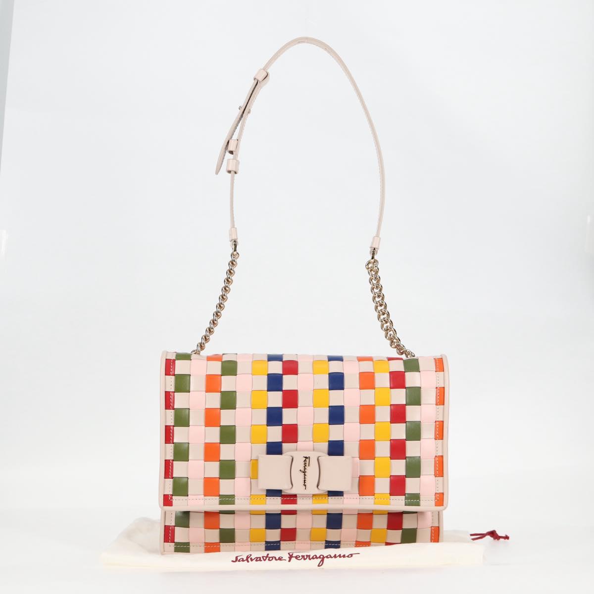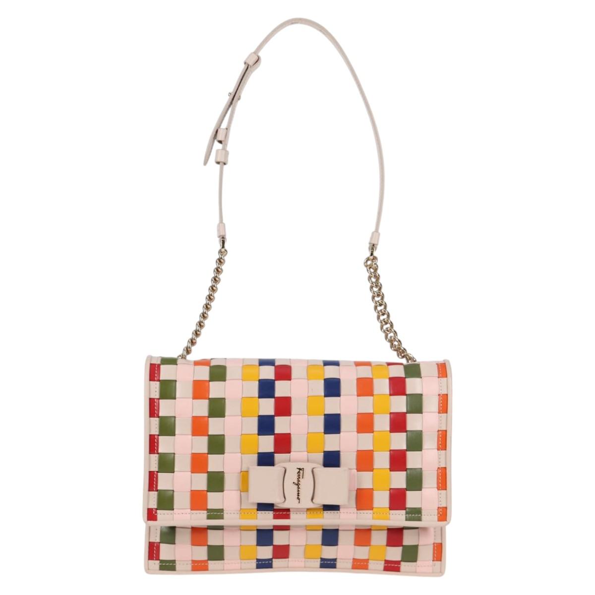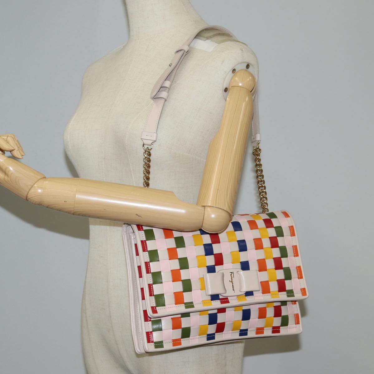 Salvatore Ferragamo Chain Shoulder Bag Leather Ivory Gold Auth 123872AV