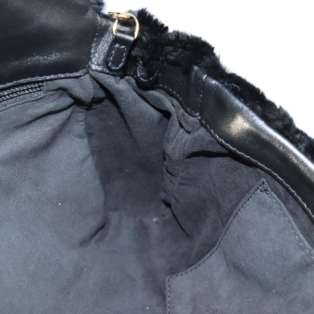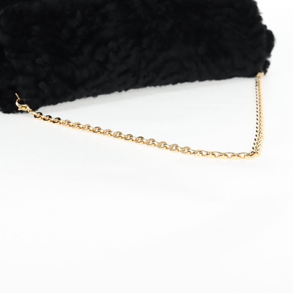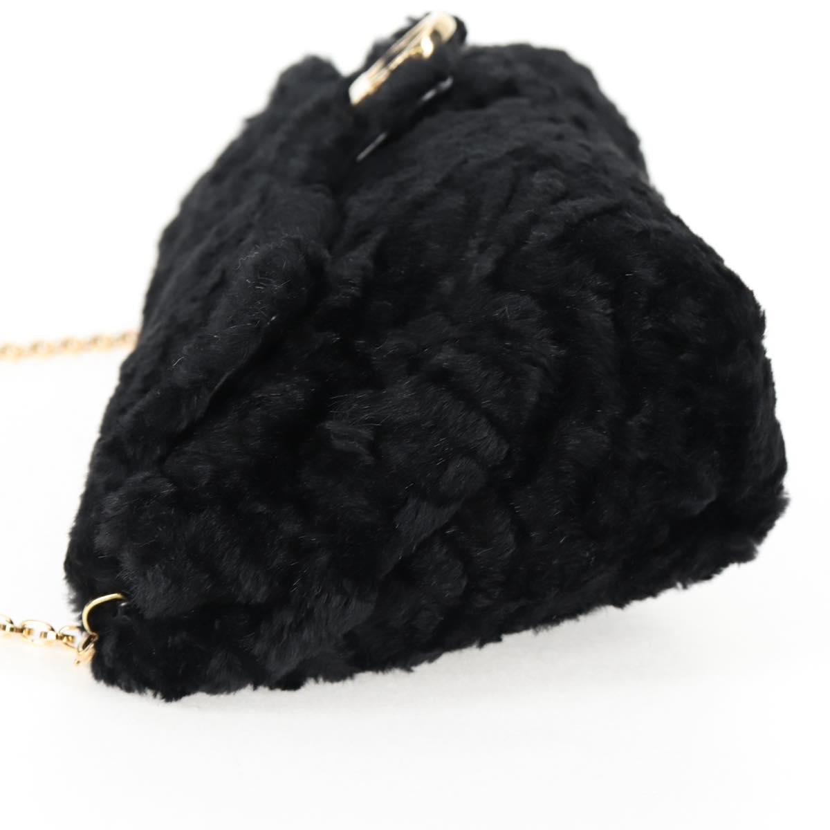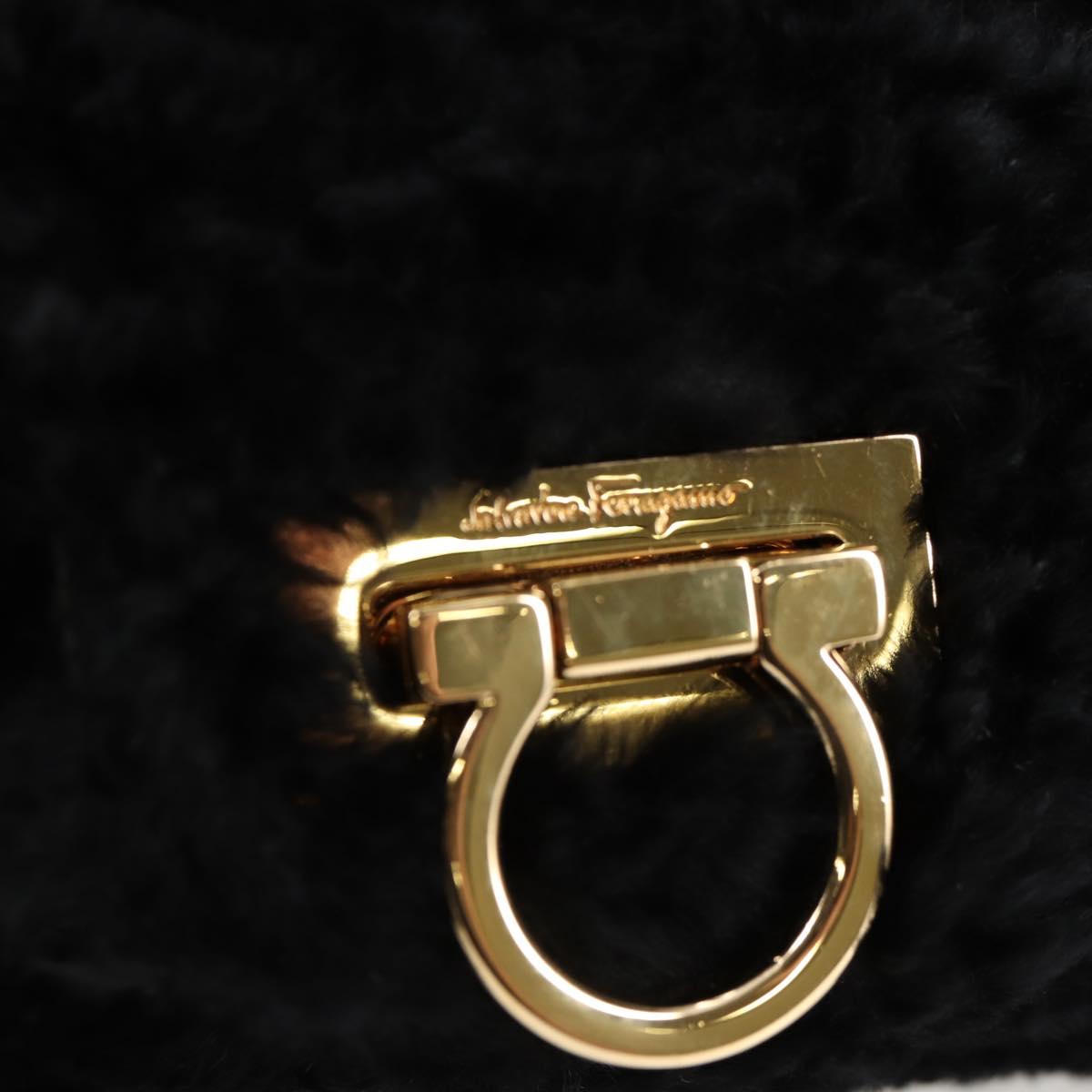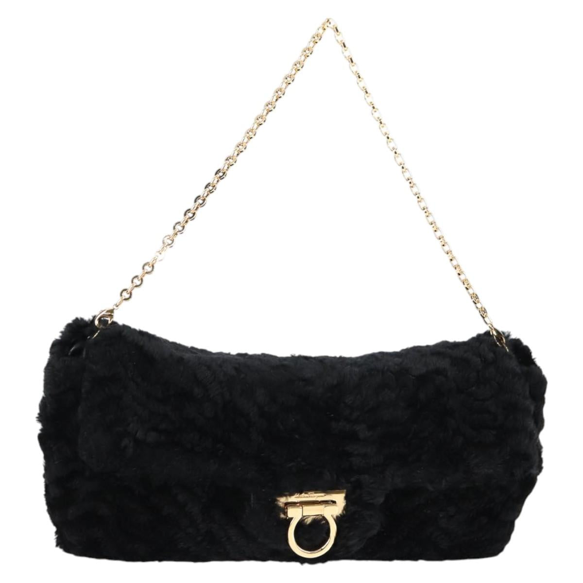 Salvatore Ferragamo Gancini Chain Shoulder Bag Fur Black Gold Auth 124868V