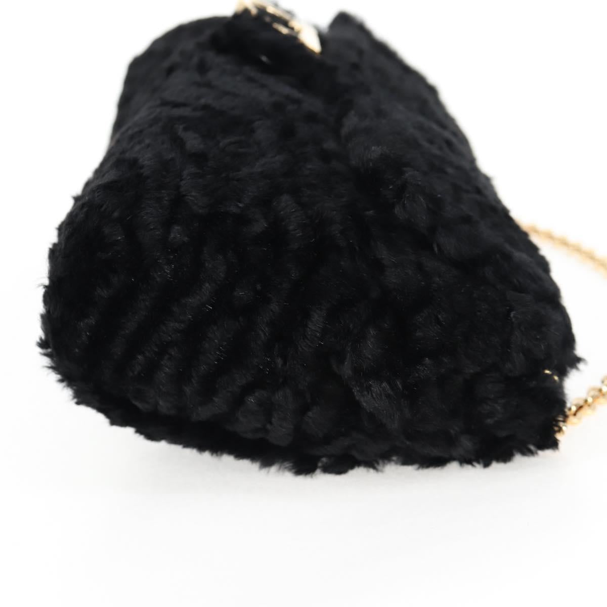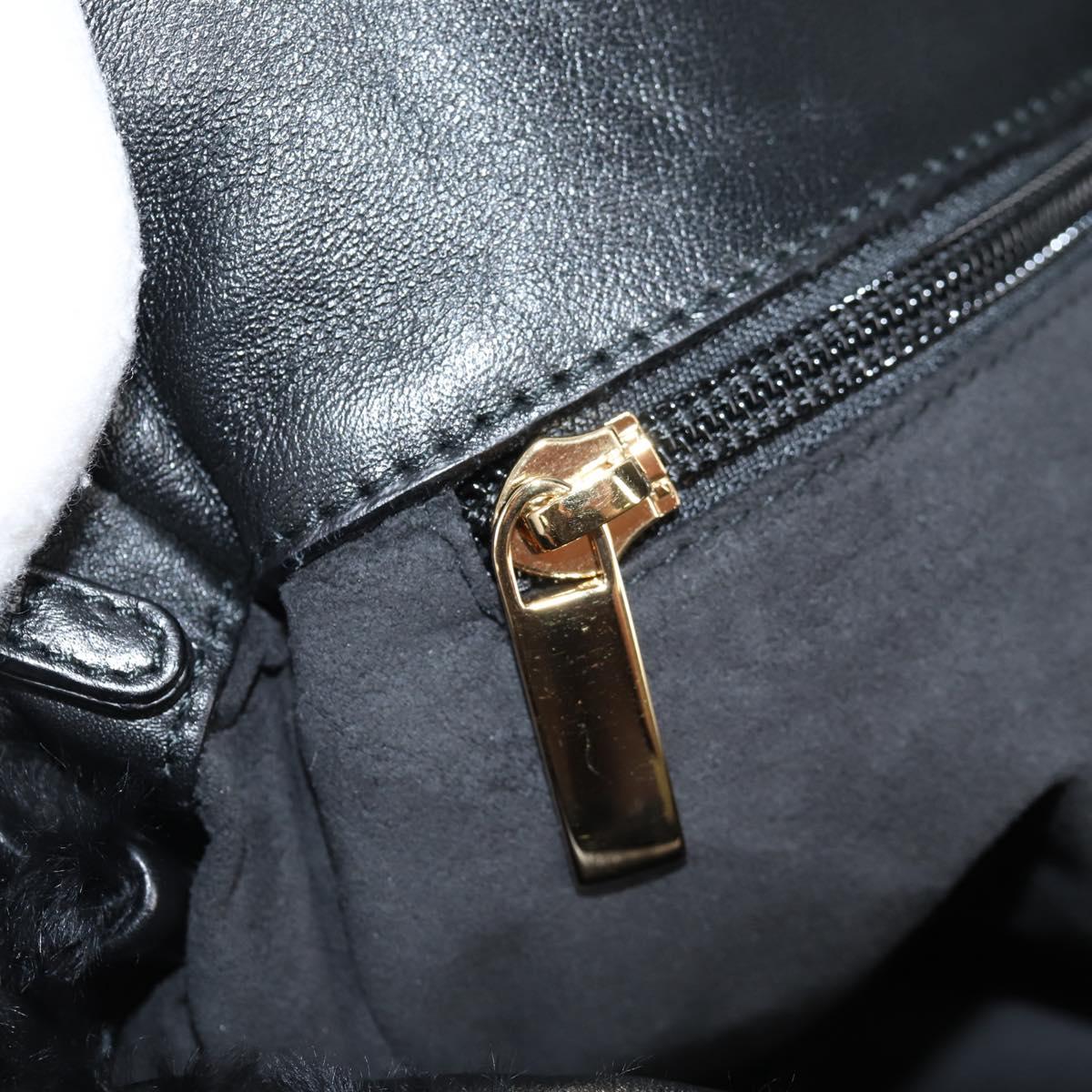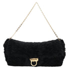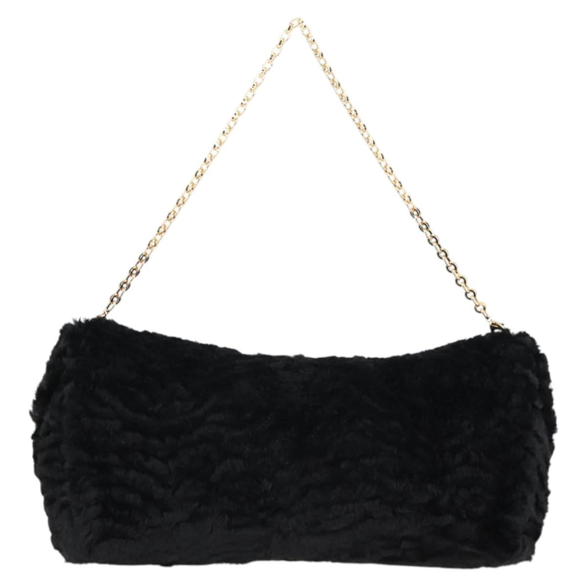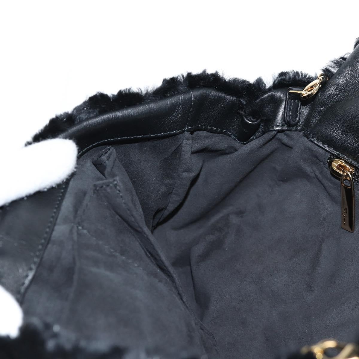 Salvatore Ferragamo Gancini Chain Shoulder Bag Fur Black Gold Auth 124868V