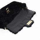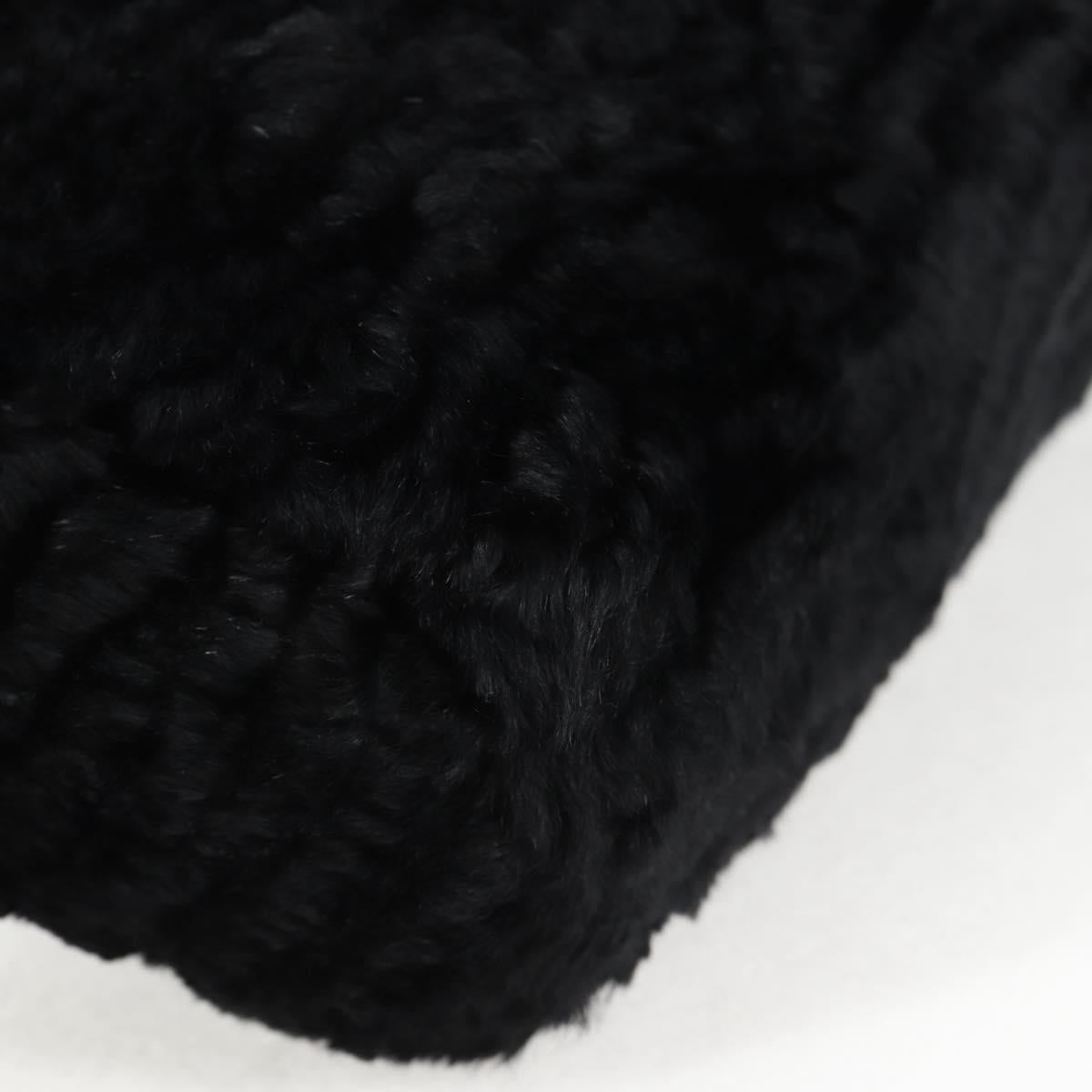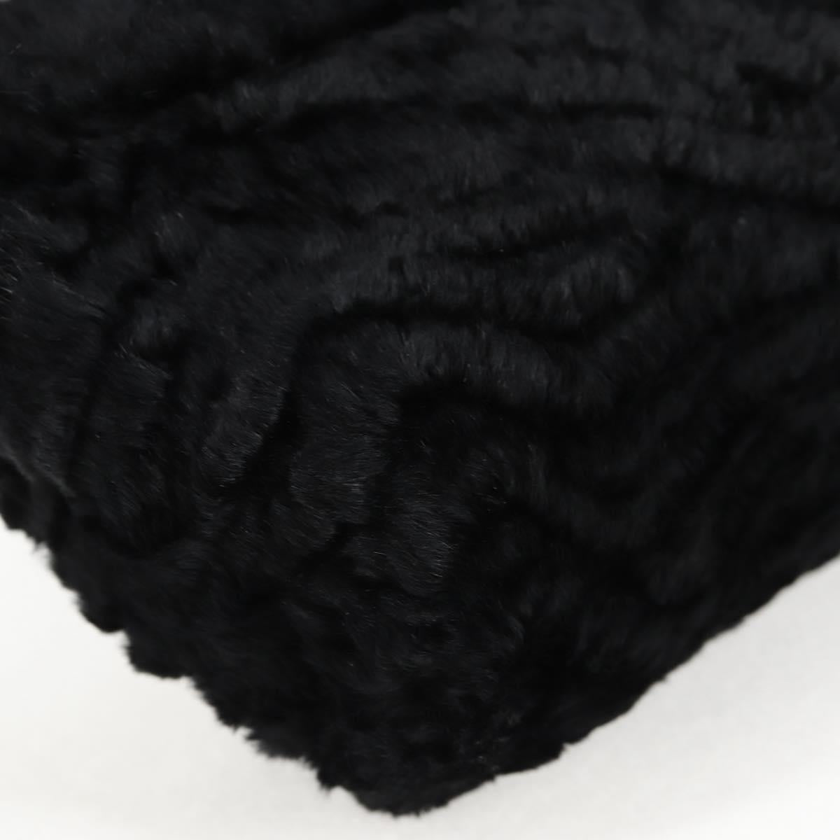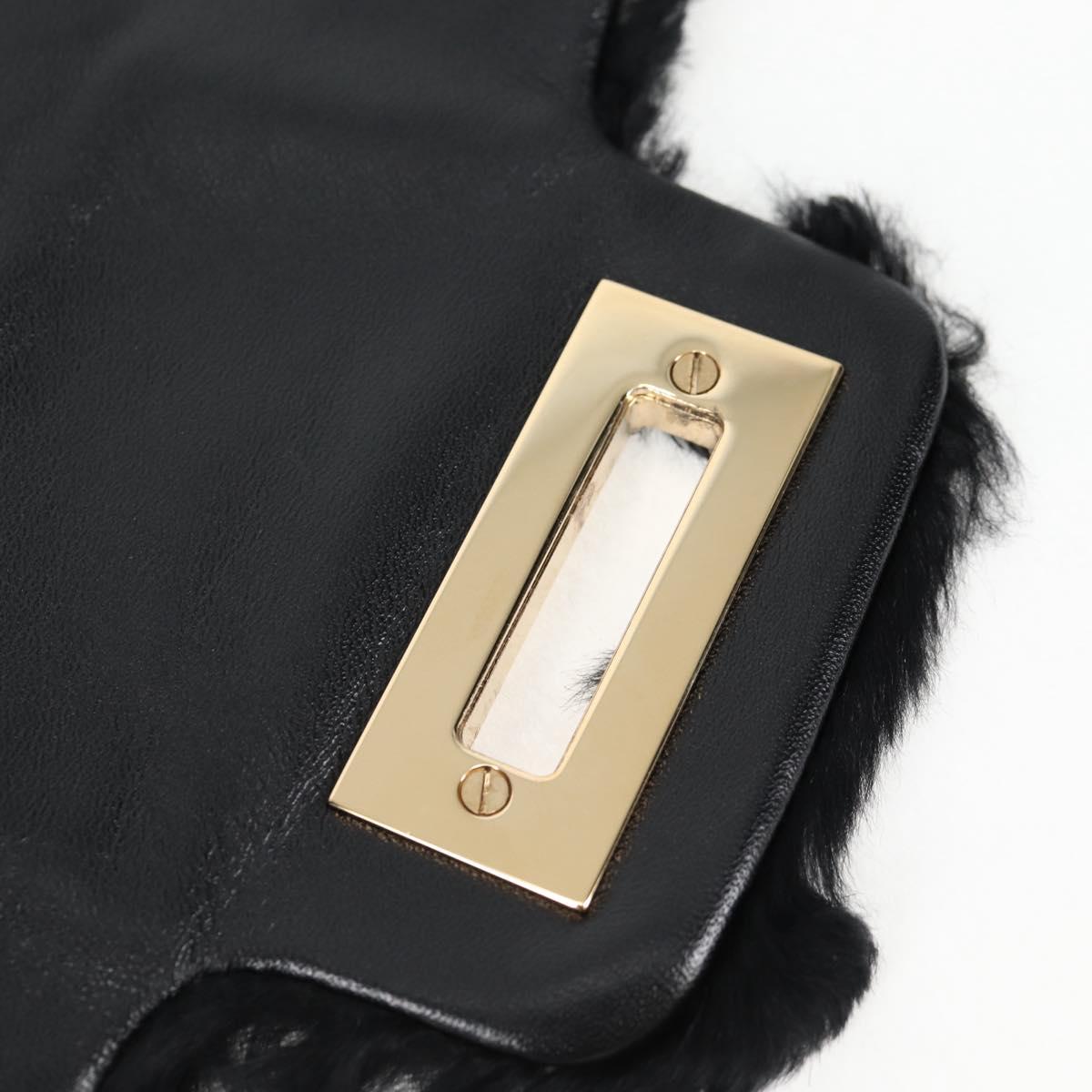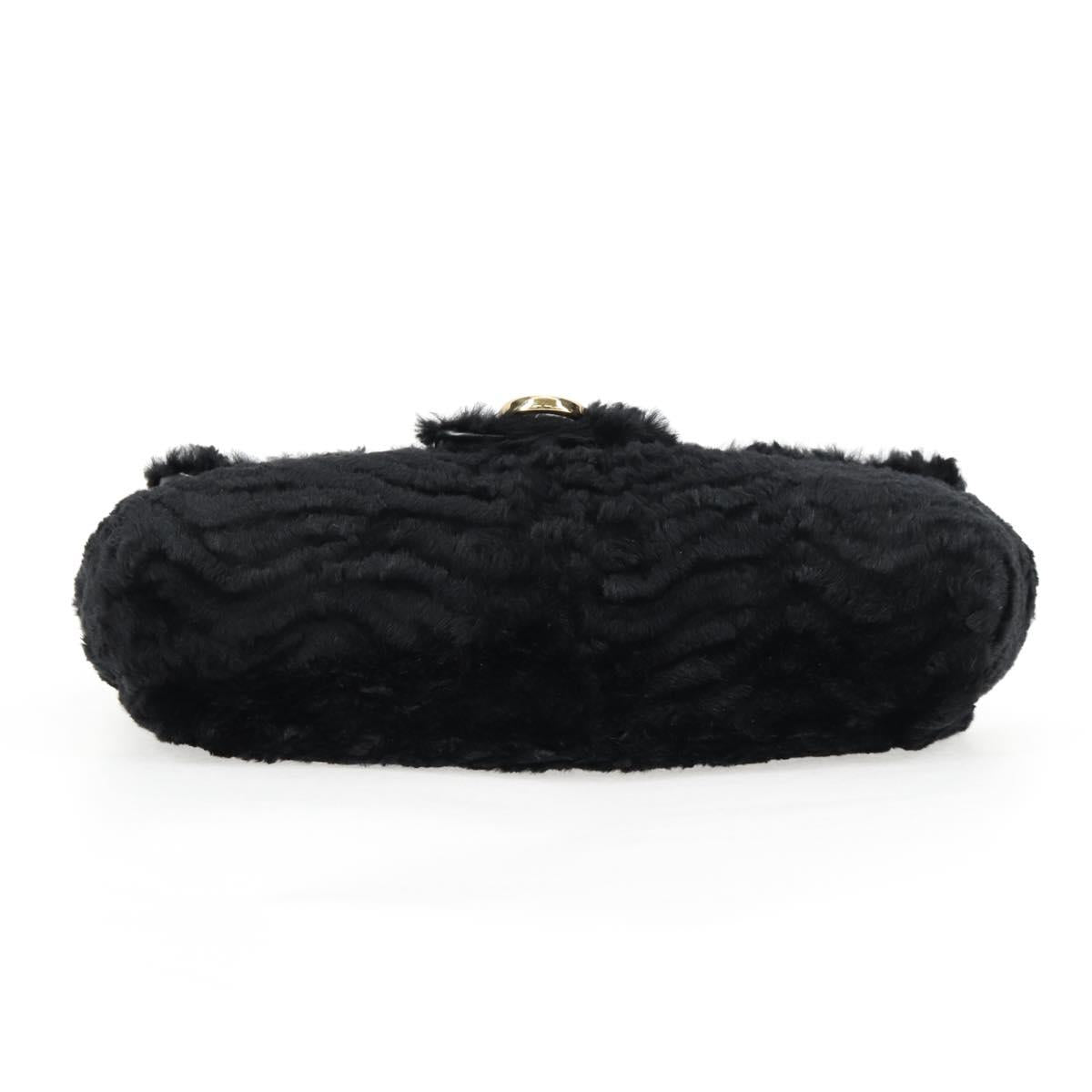 Salvatore Ferragamo Gancini Chain Shoulder Bag Fur Black Gold Auth 124868V