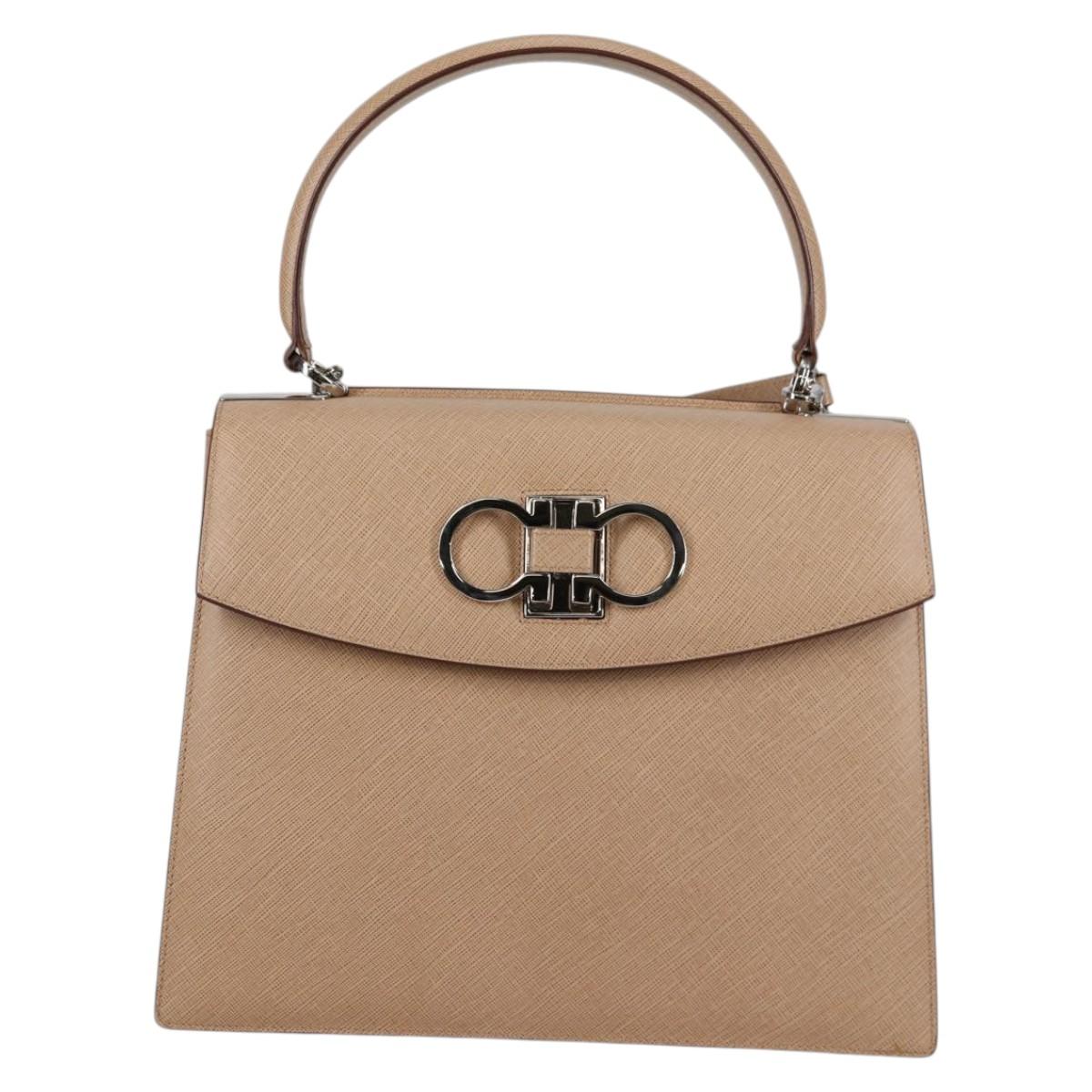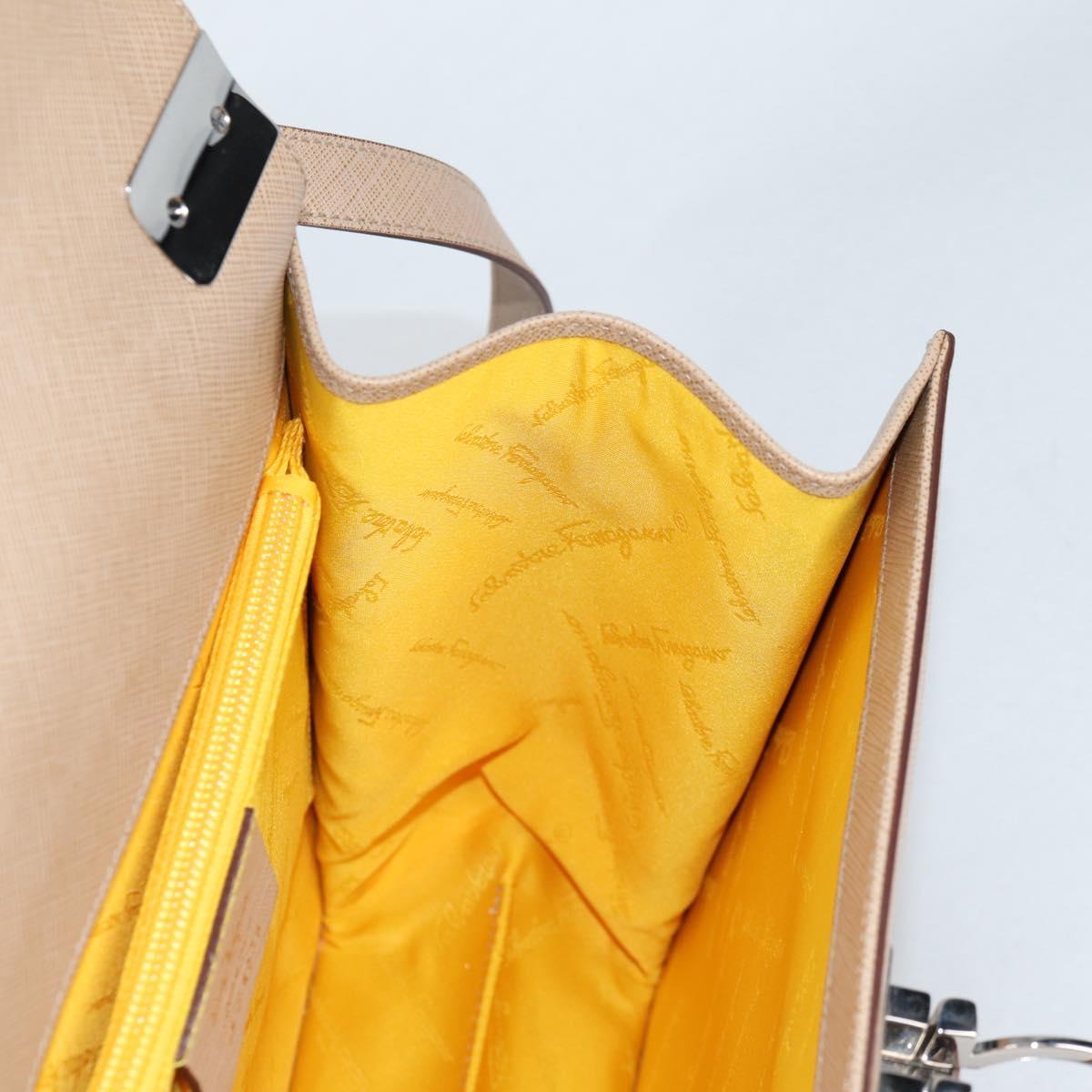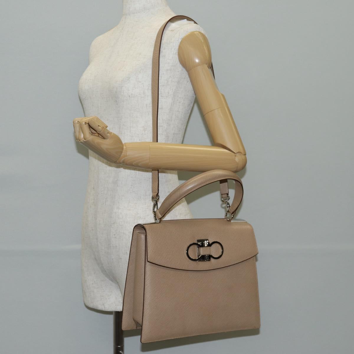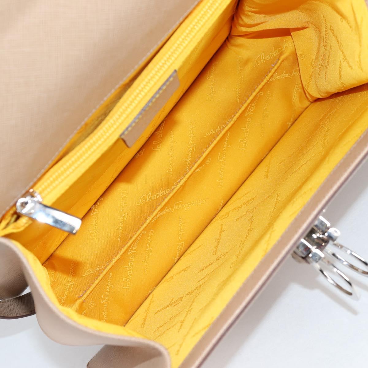 Salvatore Ferragamo Gancini Hand Bag Leather 2way Beige Silver Auth 142127V