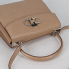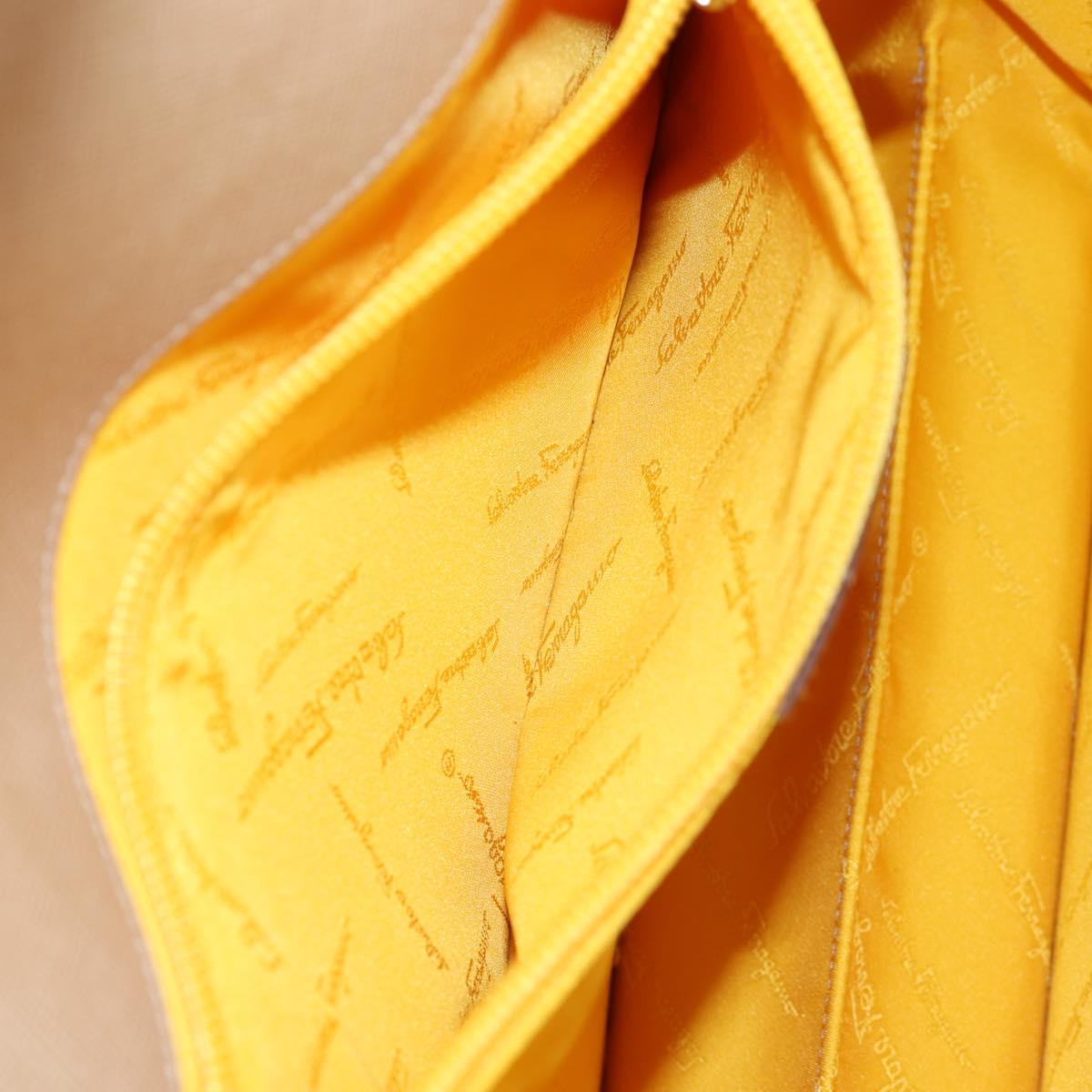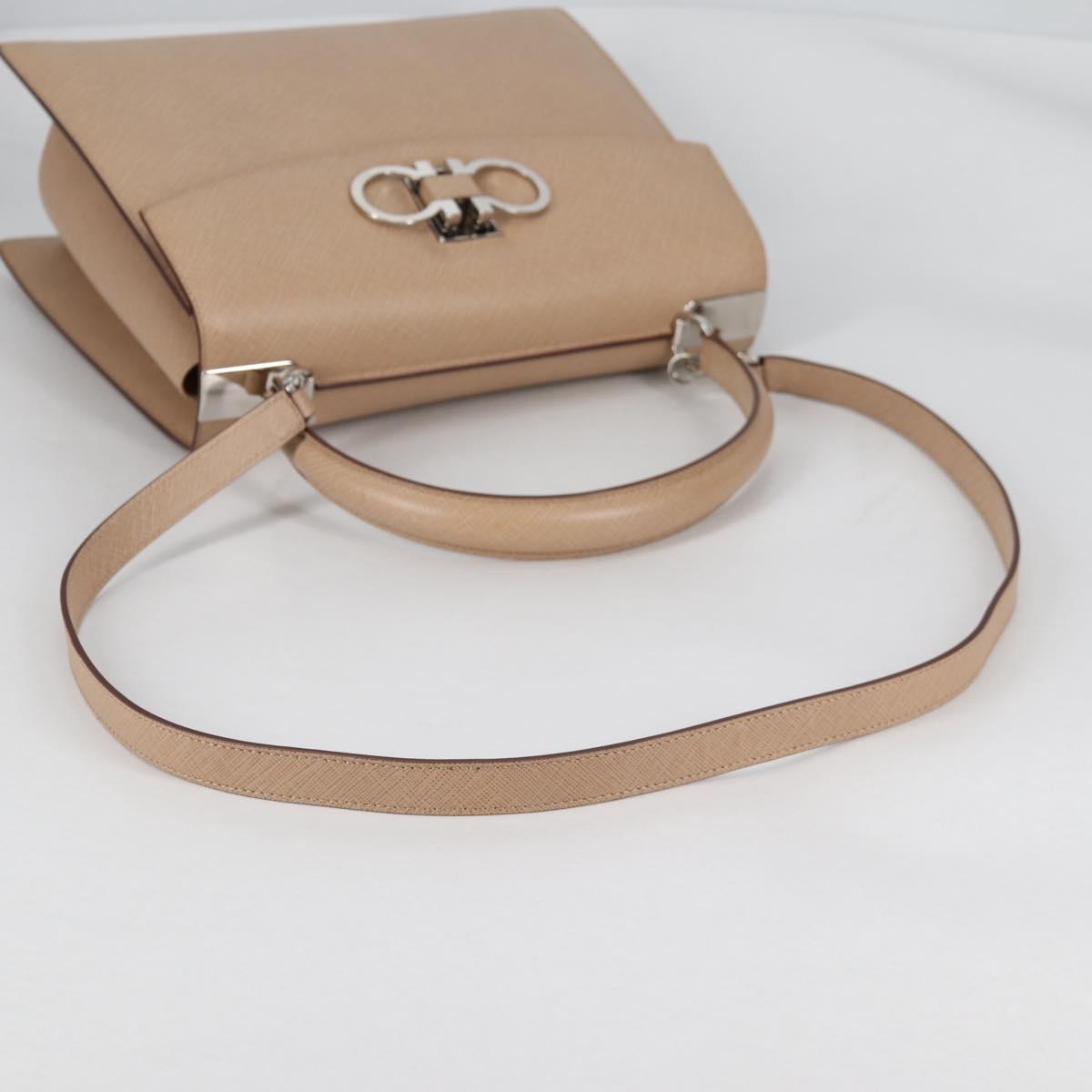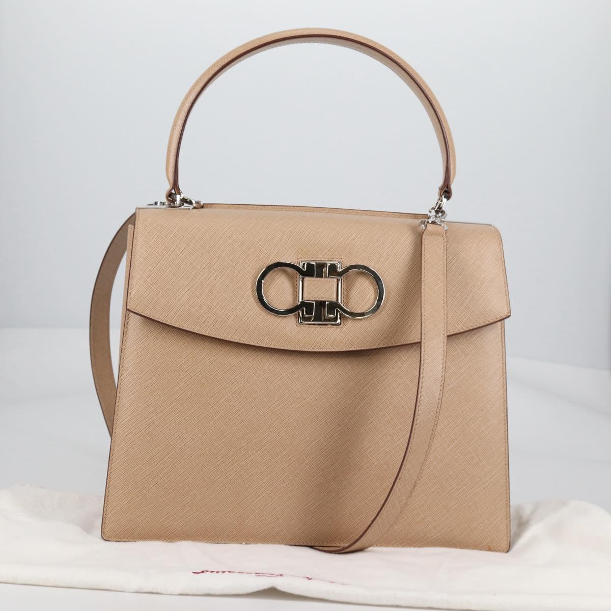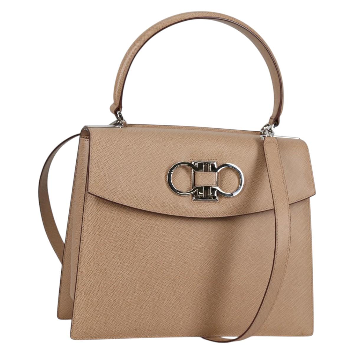 Salvatore Ferragamo Gancini Hand Bag Leather 2way Beige Silver Auth 142127V
