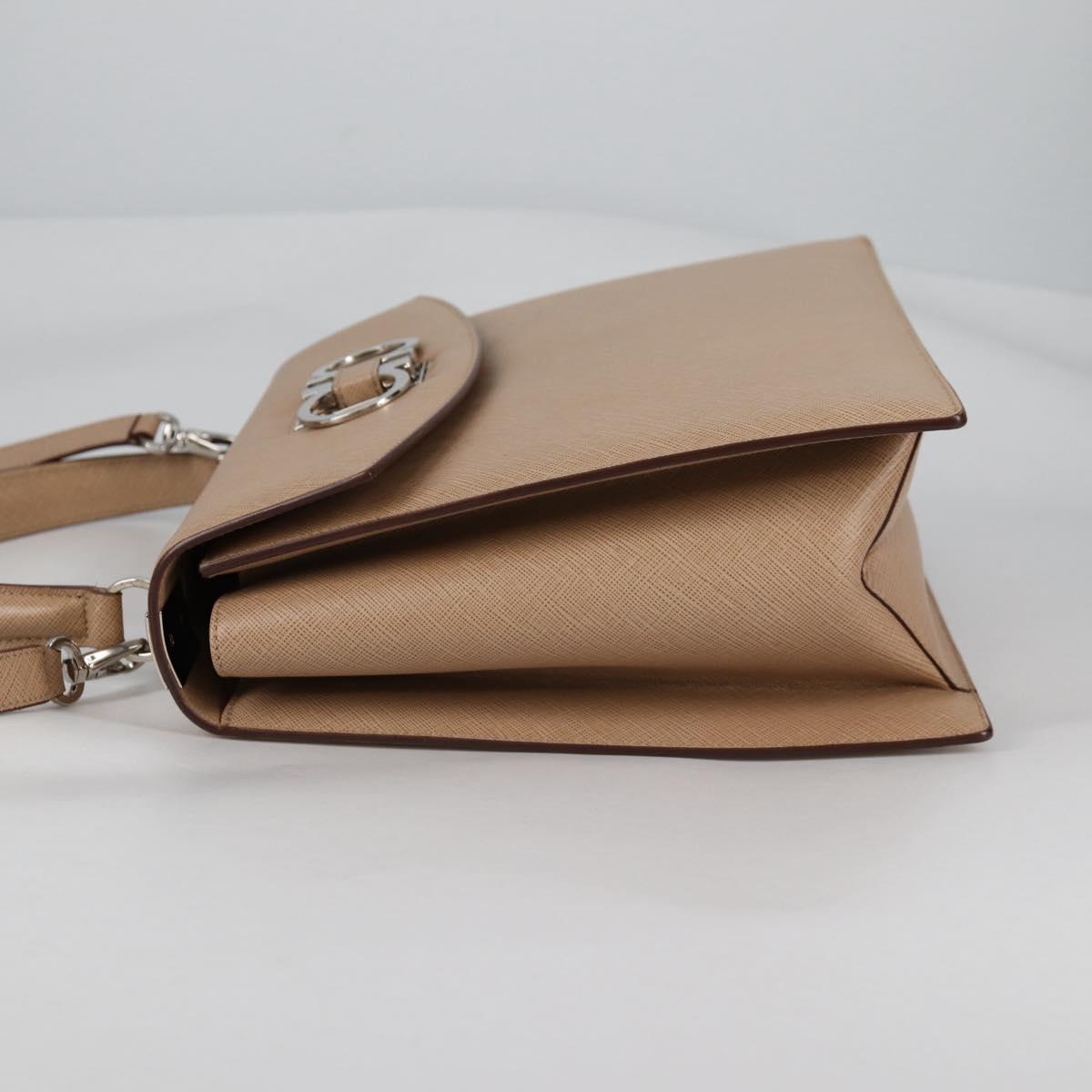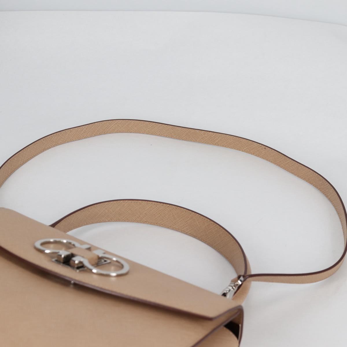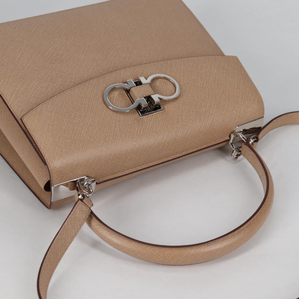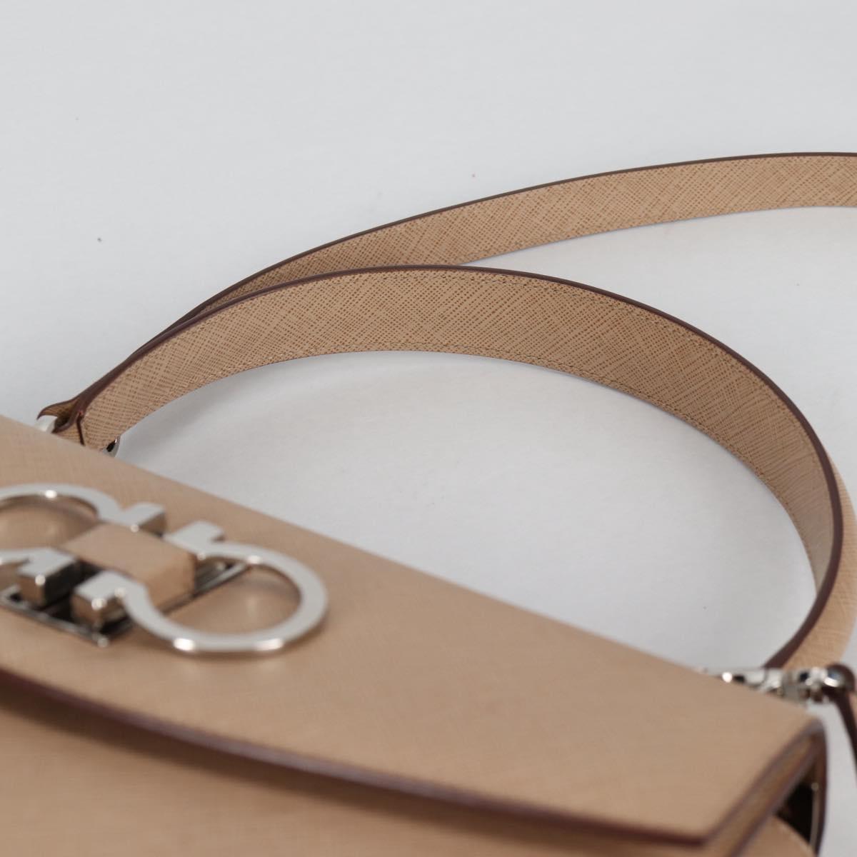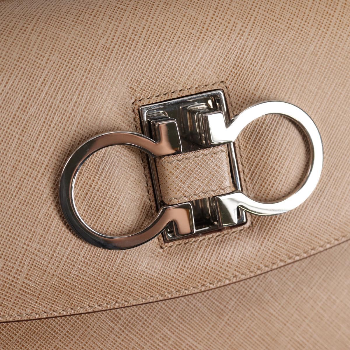 Salvatore Ferragamo Gancini Hand Bag Leather 2way Beige Silver Auth 142127V