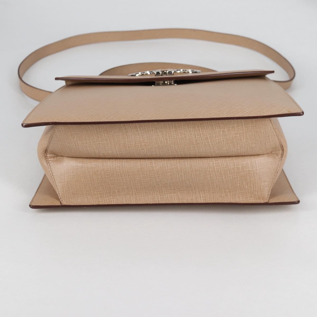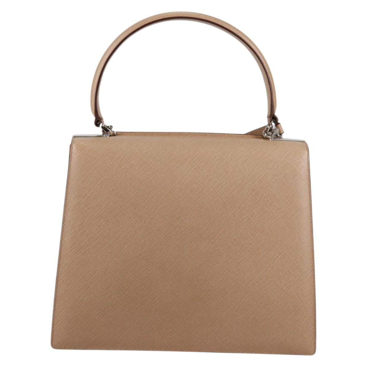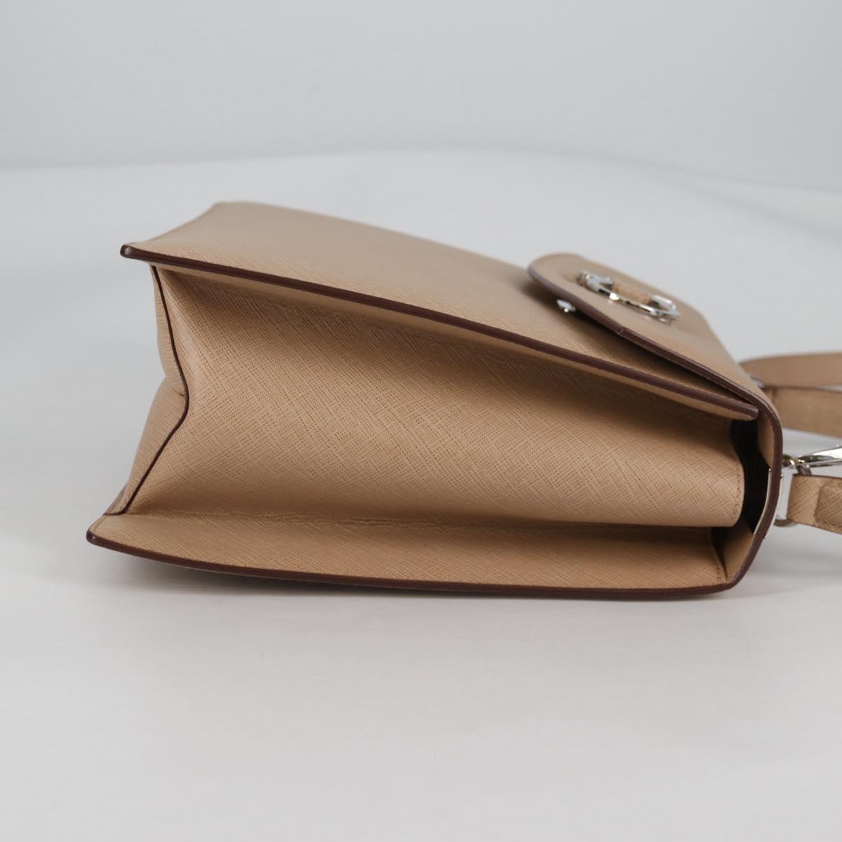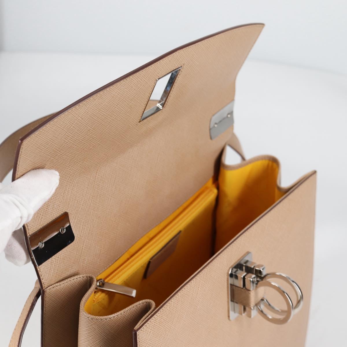 Salvatore Ferragamo Gancini Hand Bag Leather 2way Beige Silver Auth 142127V