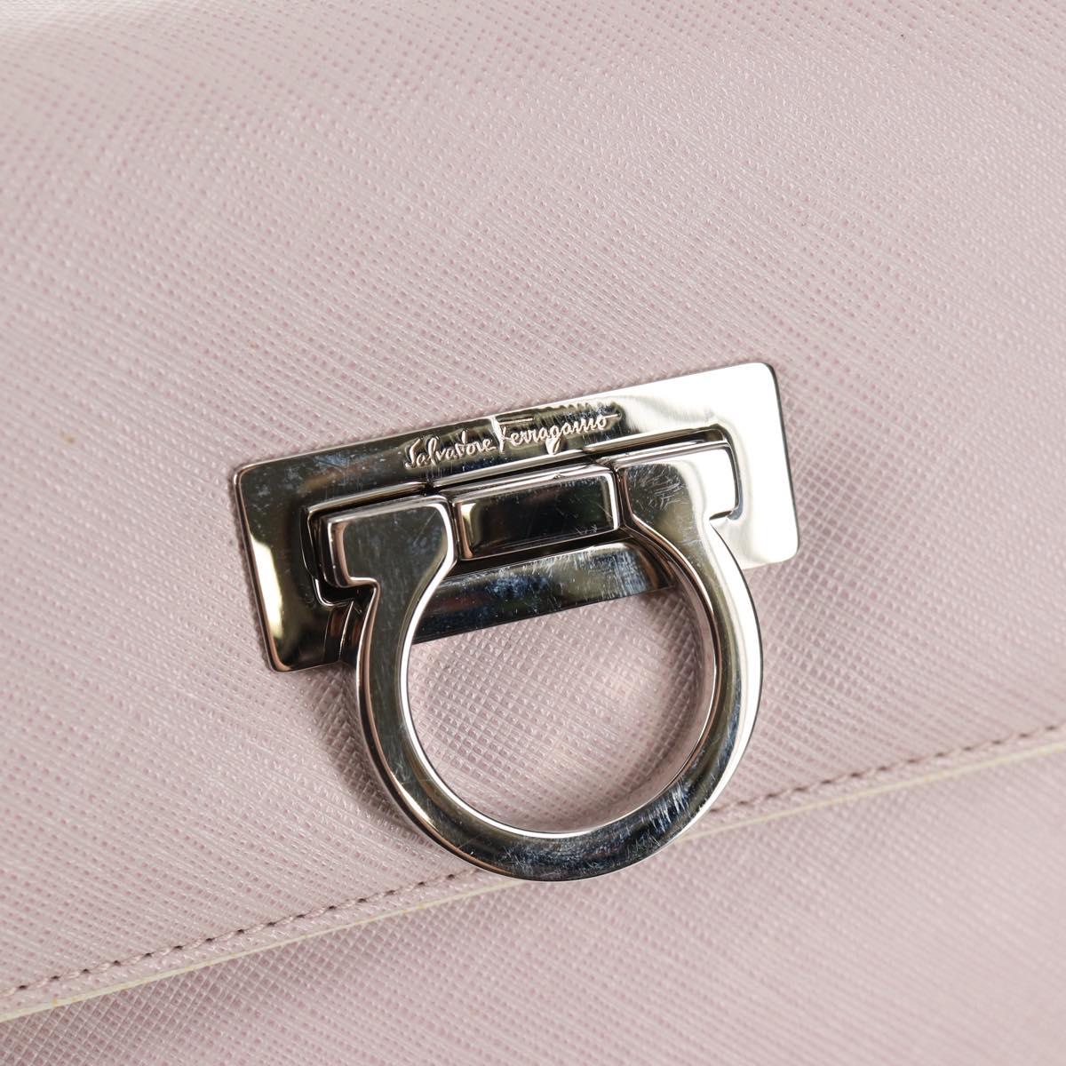 Salvatore Ferragamo Gancini Hand Bag Leather 2way Pink Silver Auth 128169V