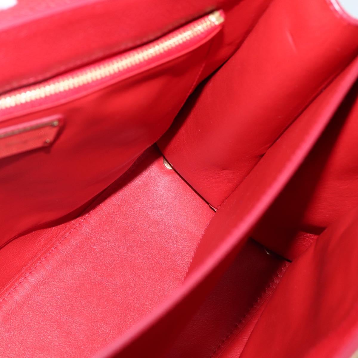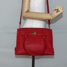 Salvatore Ferragamo Gancini Hand Bag Leather 2way Red Gold Auth 143649V