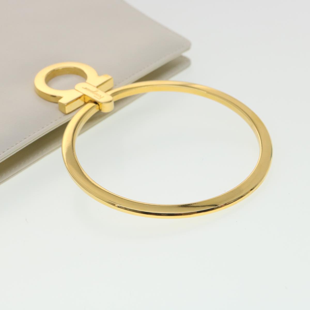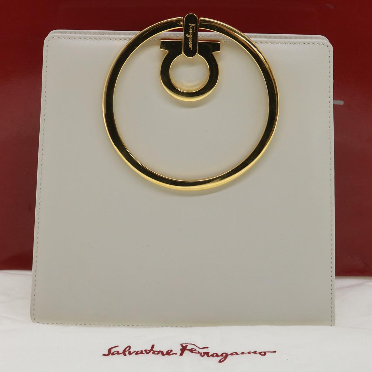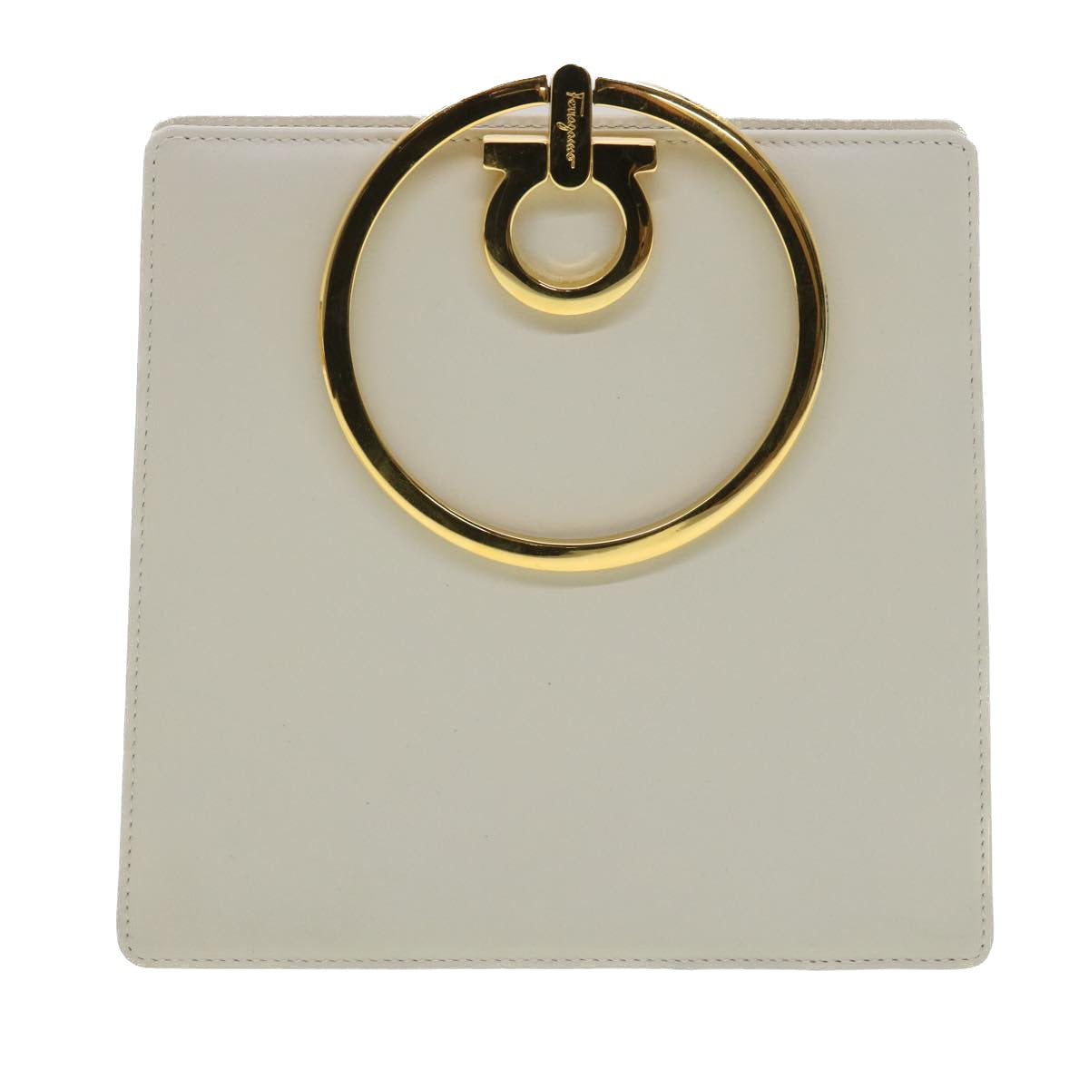 Salvatore Ferragamo Gancini Hand Bag Leather White Gold Tone Auth 34202AV