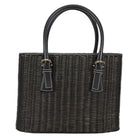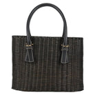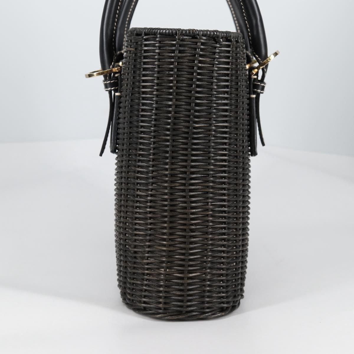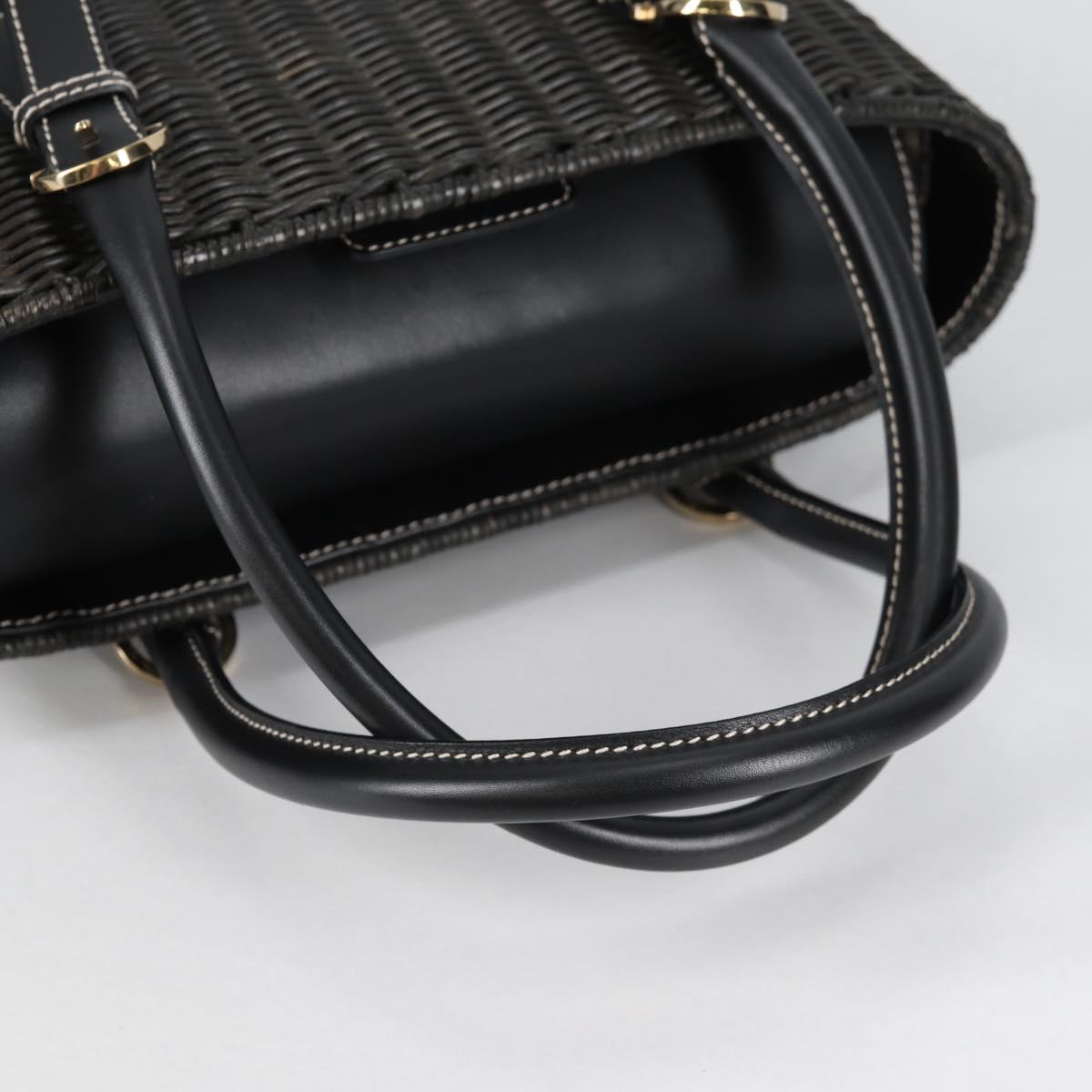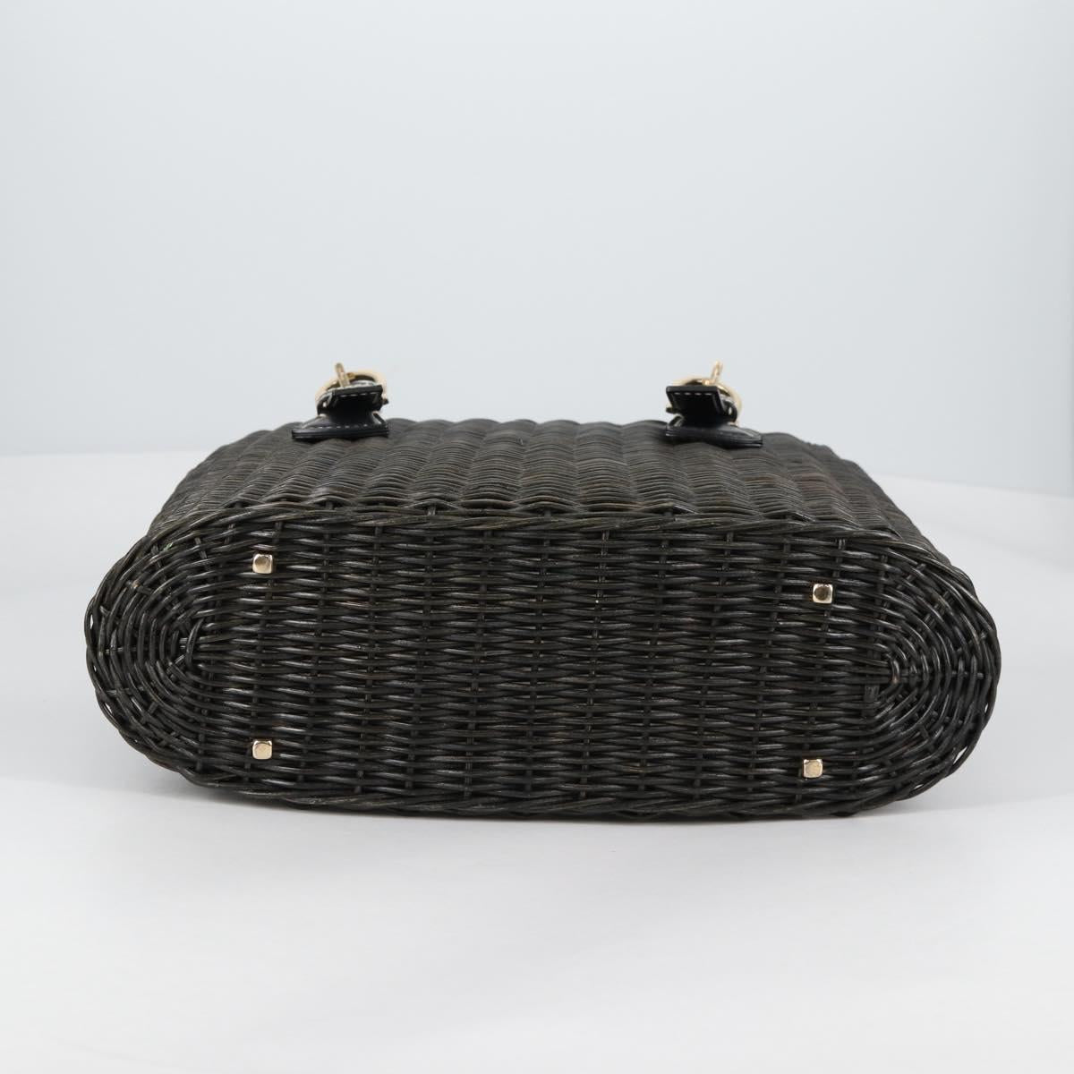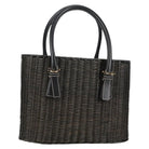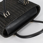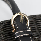 Salvatore Ferragamo Gancini Hand Bag Rattan Black Gold Auth 142182V