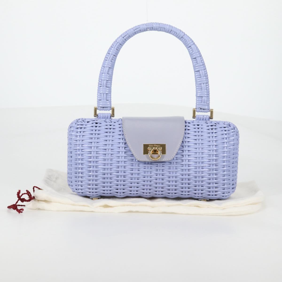 Salvatore Ferragamo Gancini Hand Bag Rattan Purple Gold Auth 141146V