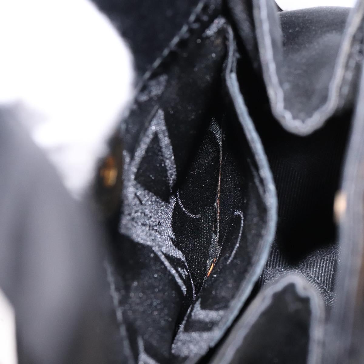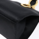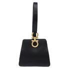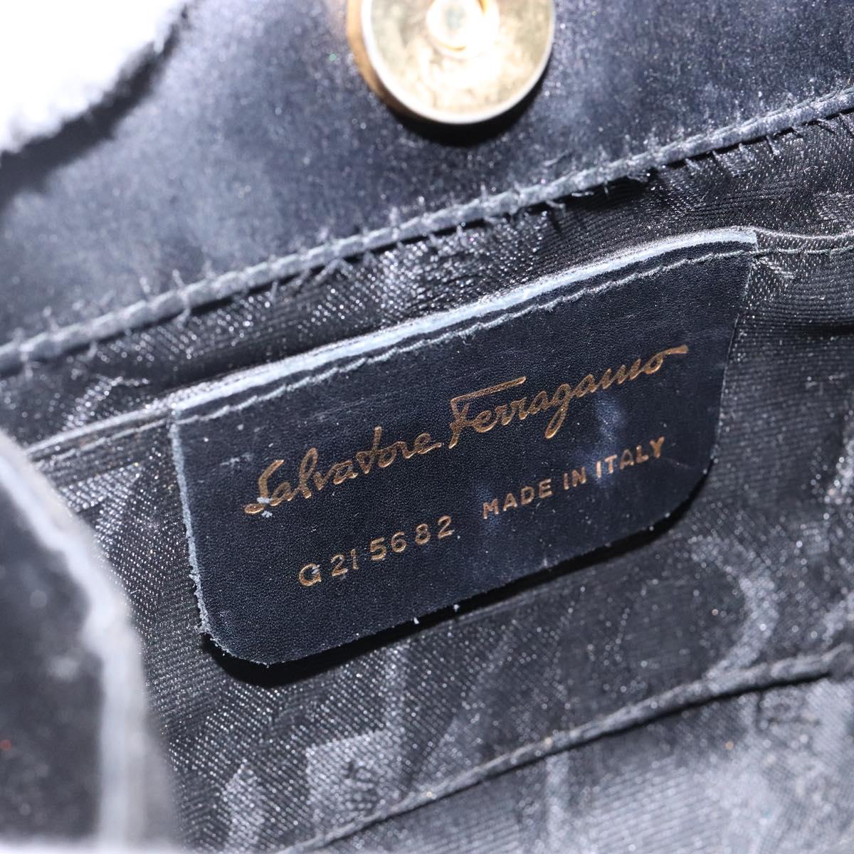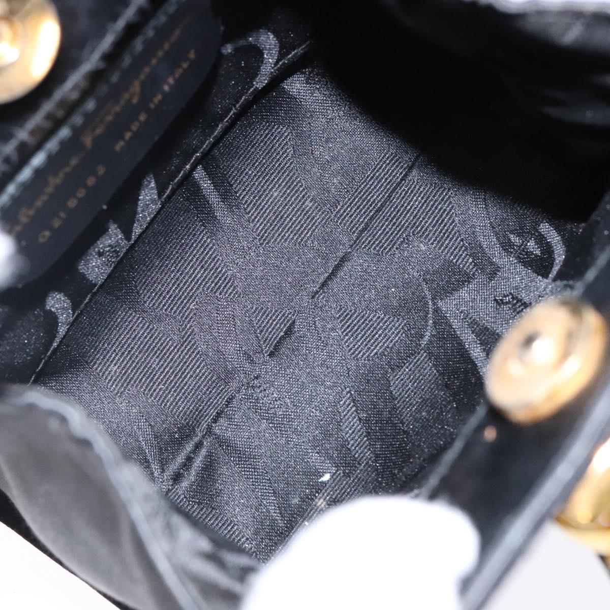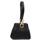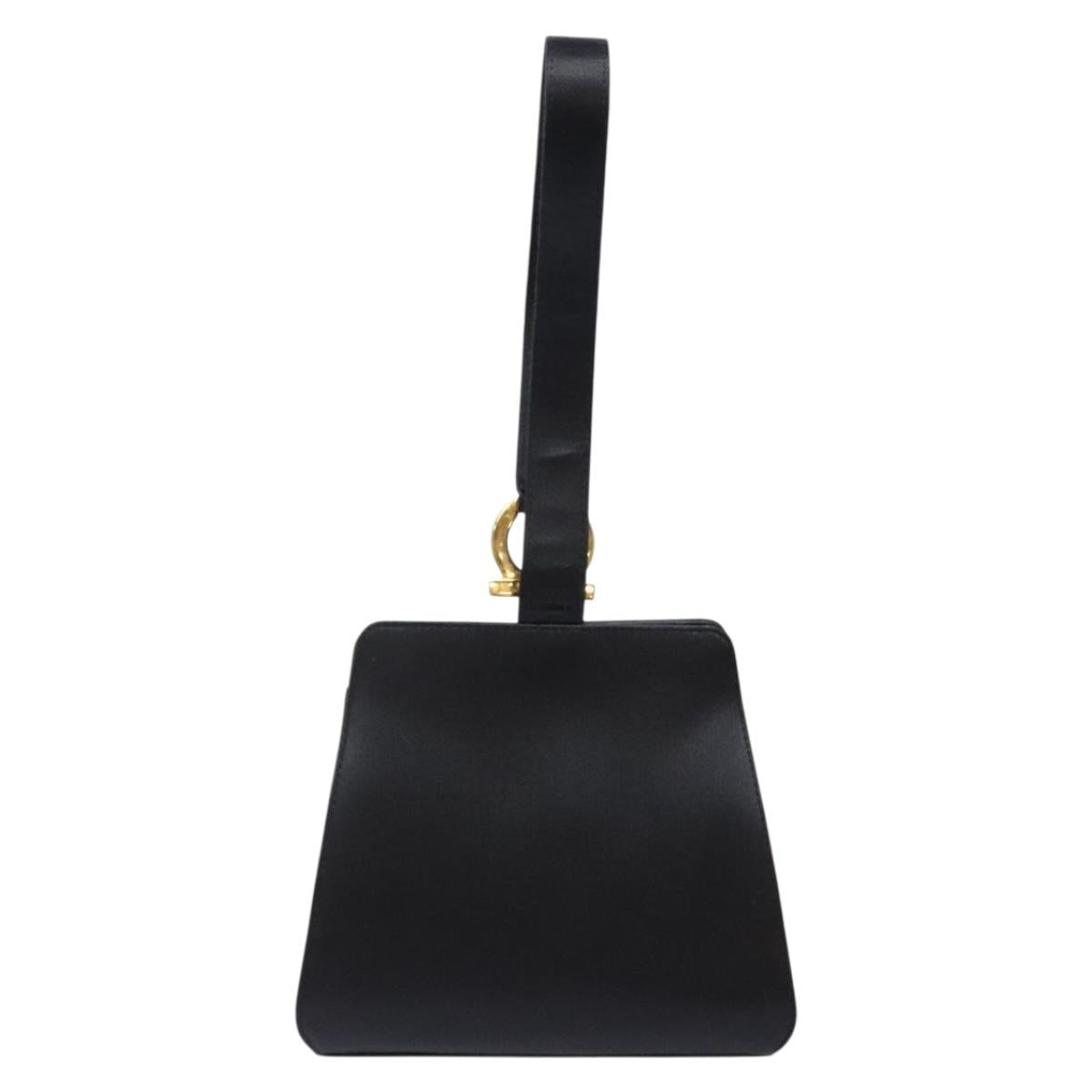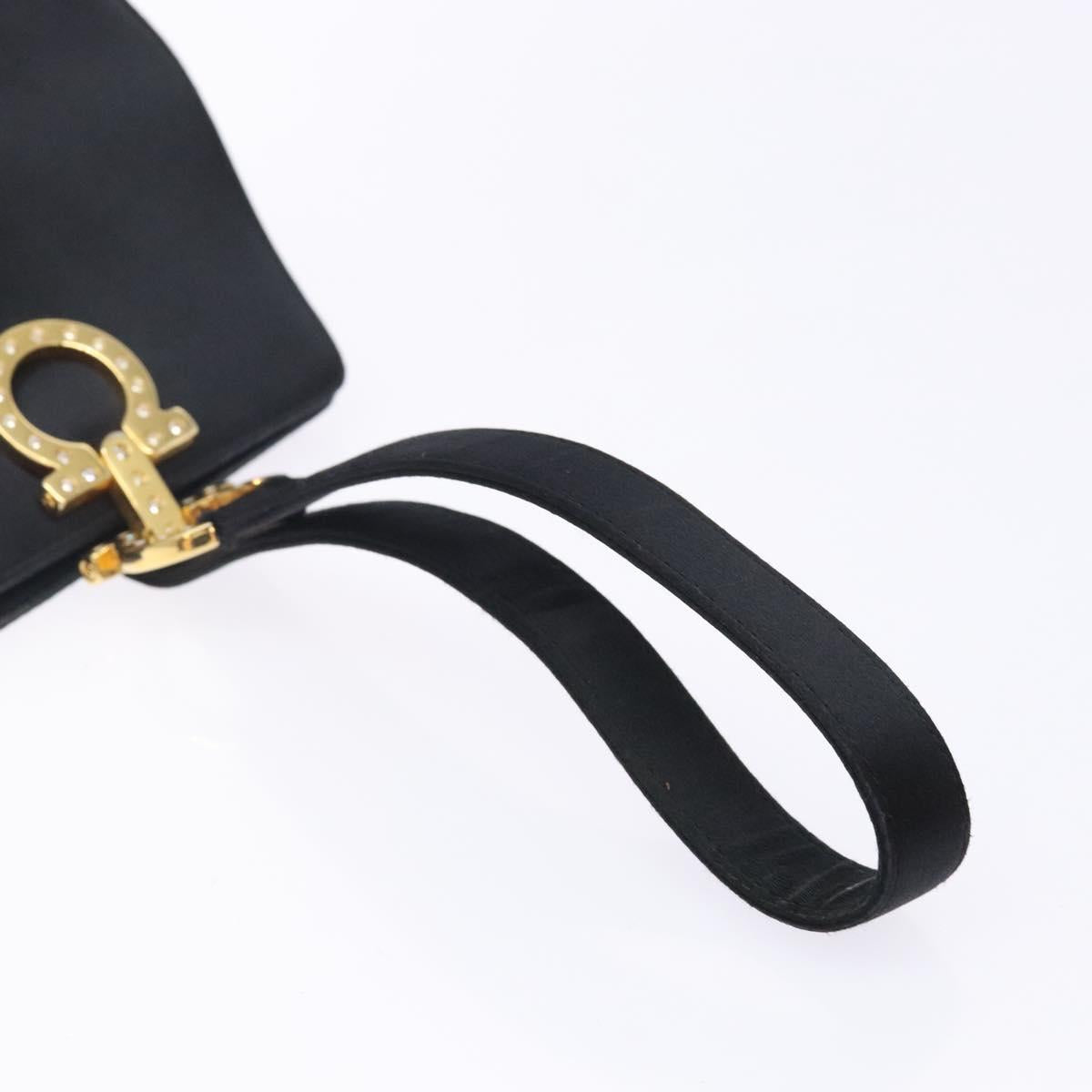 Salvatore Ferragamo Gancini Hand Bag Satin Black Gold Auth 142124V