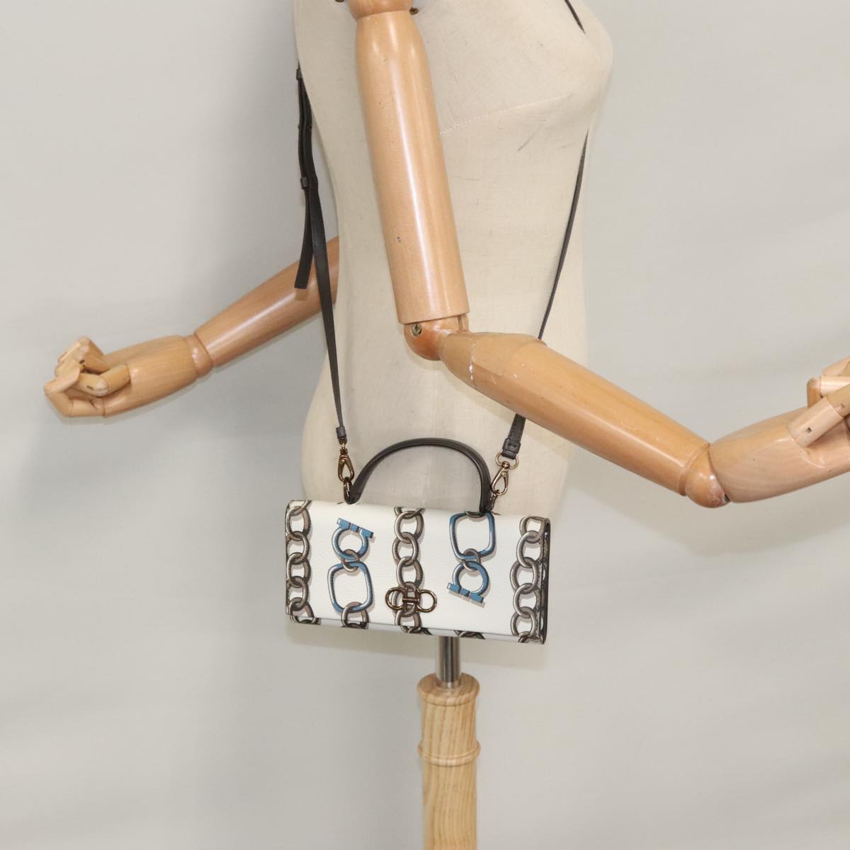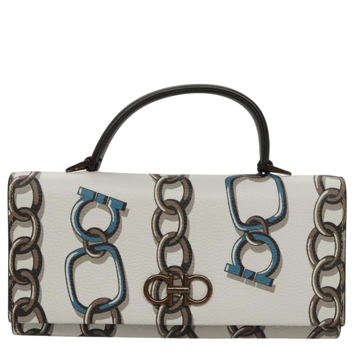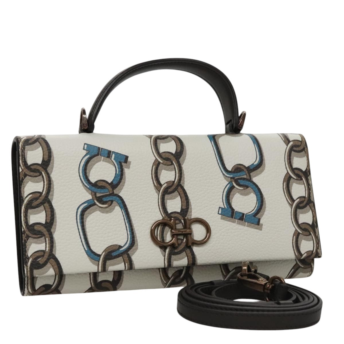 Salvatore Ferragamo Gancini Shoulder Wallet Leather White Auth 108583V