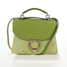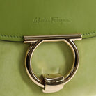 Salvatore Ferragamo Hand Bag Suede Leather 2way Green Gold Auth 128919V