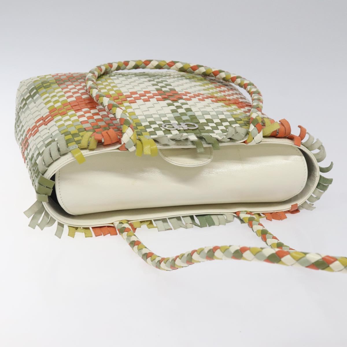 Salvatore Ferragamo Tote Bag Leather White Silver Auth 116250V