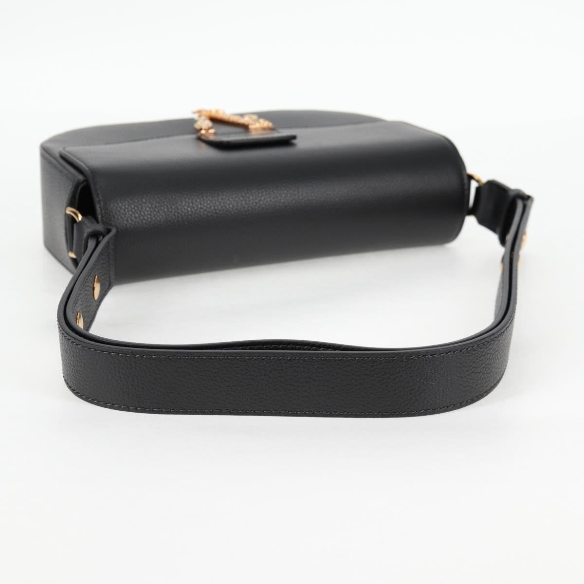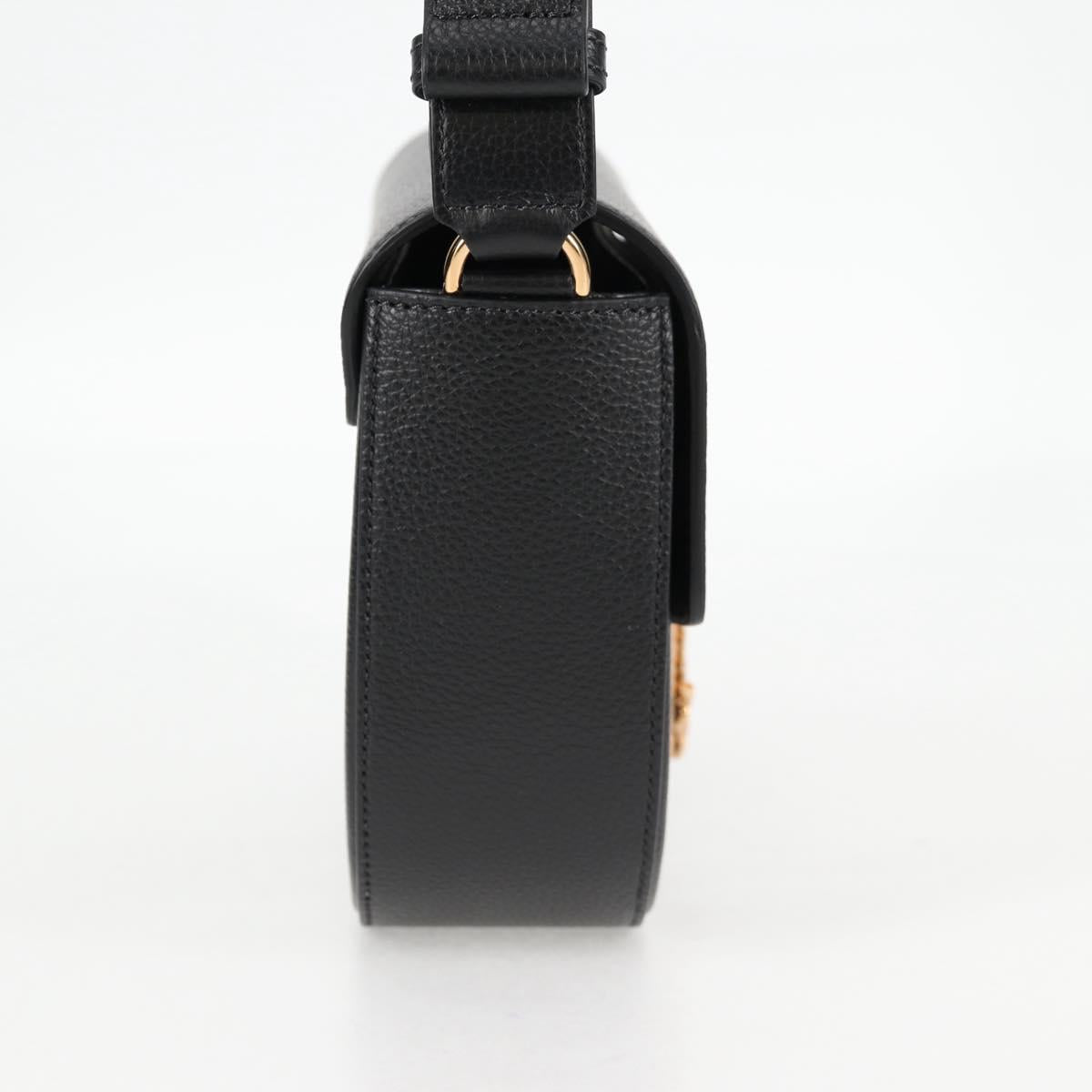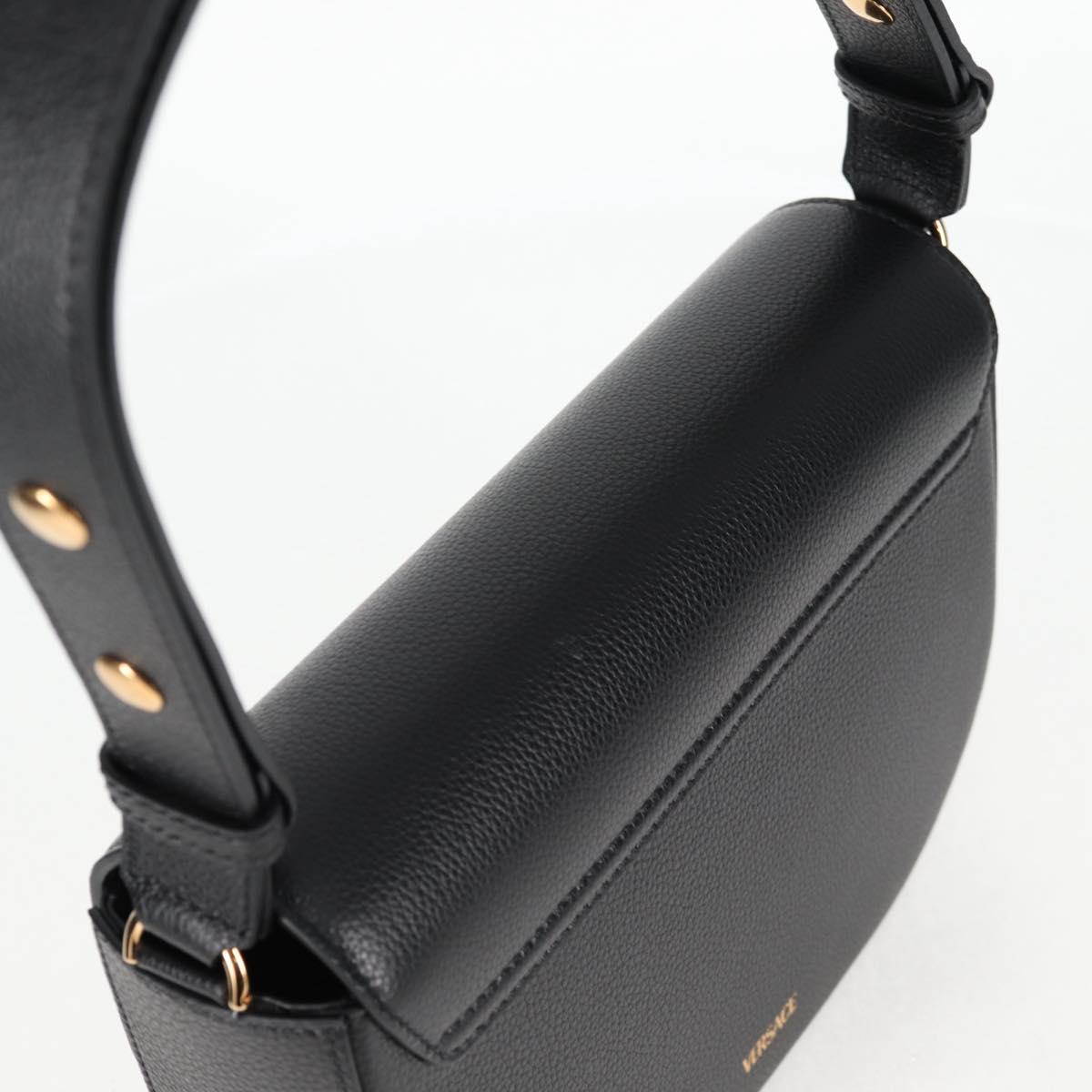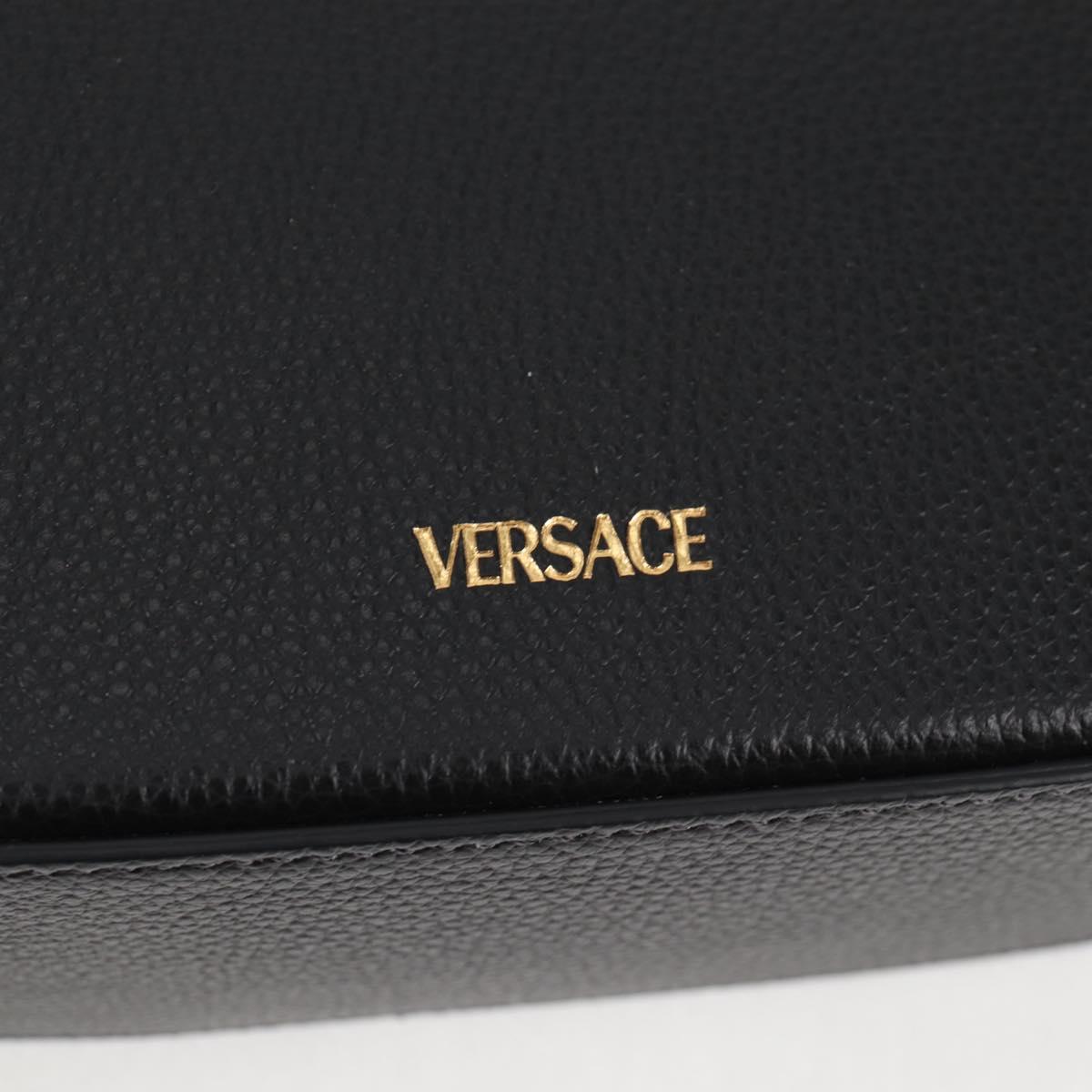 VERSACE Shoulder Bag Leather Black Gold Auth 118685AM