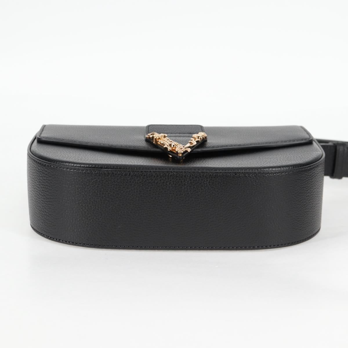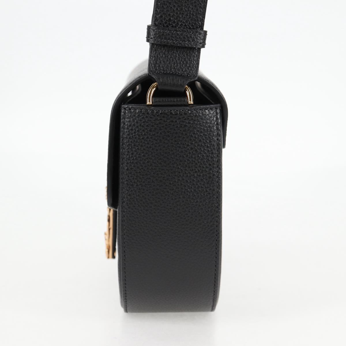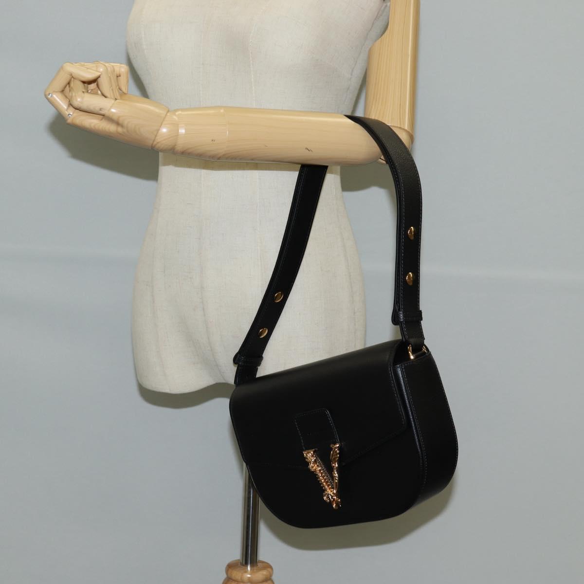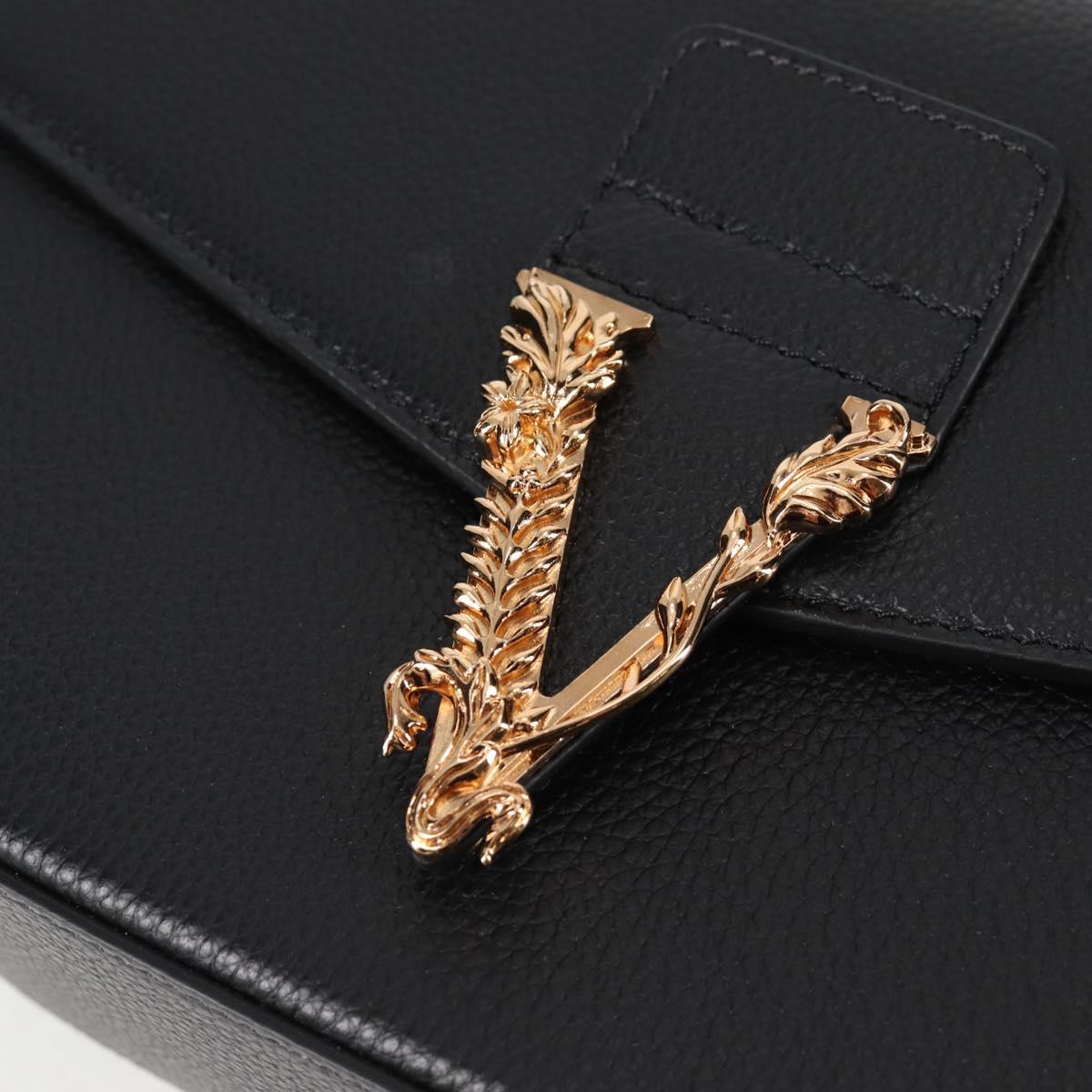 VERSACE Shoulder Bag Leather Black Gold Auth 118685AM