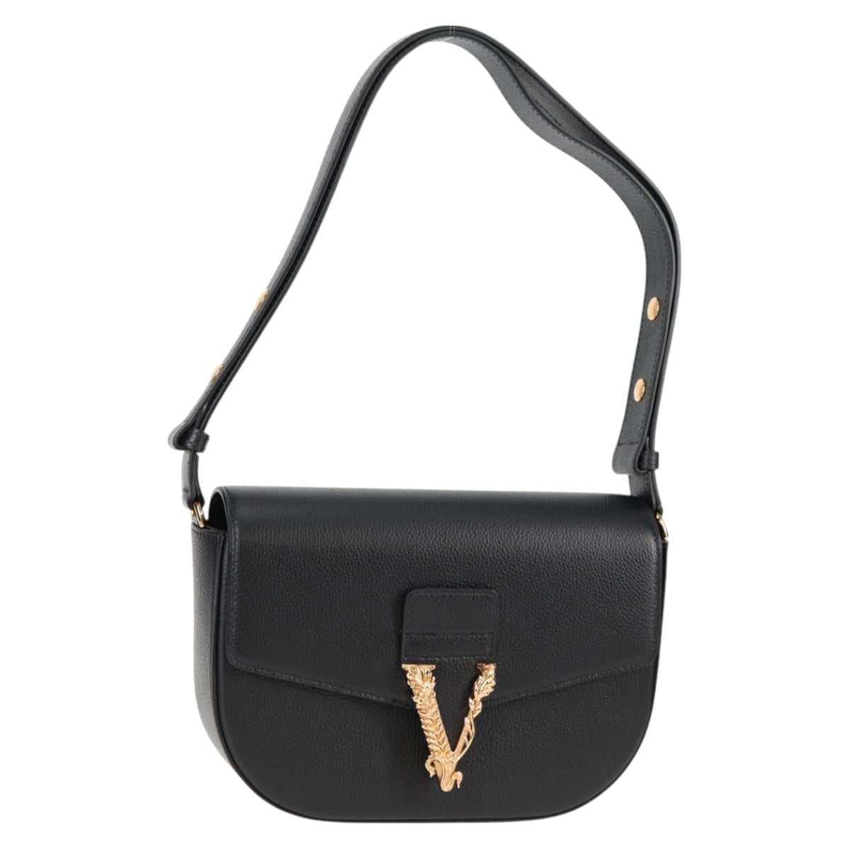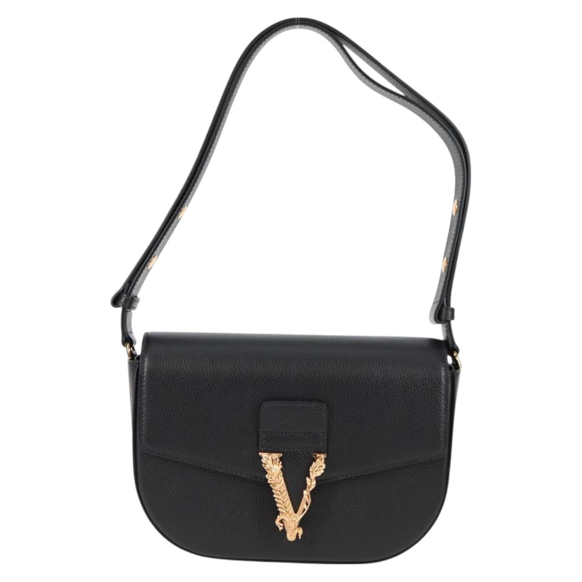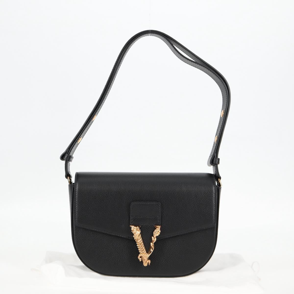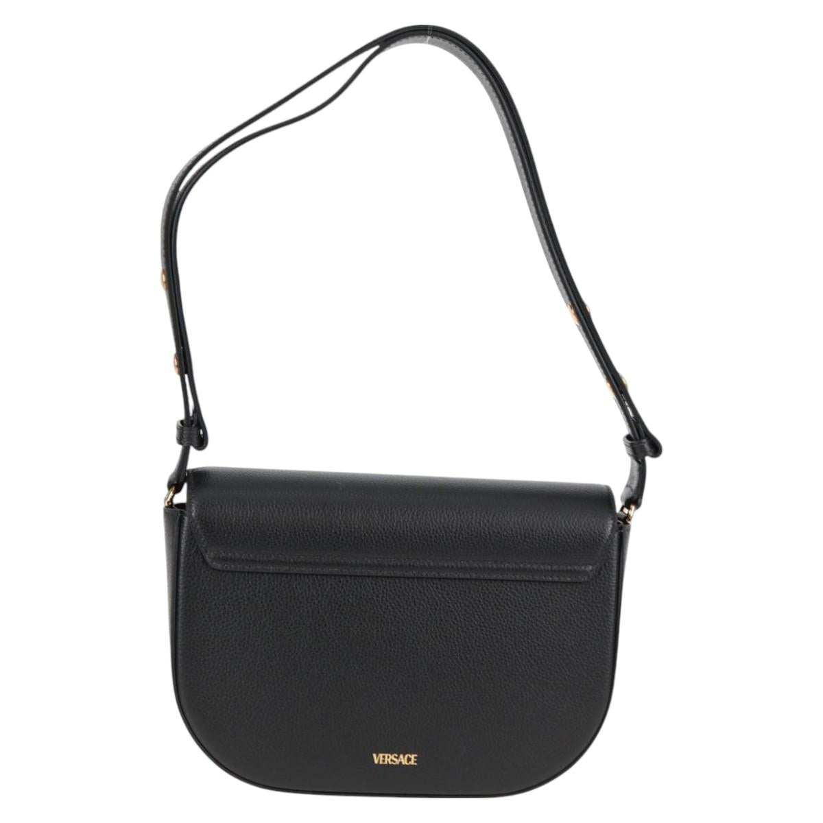 VERSACE Shoulder Bag Leather Black Gold Auth 118685AM