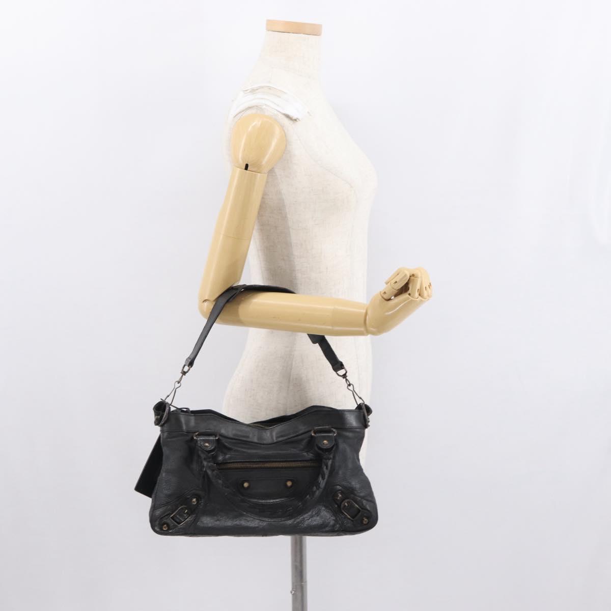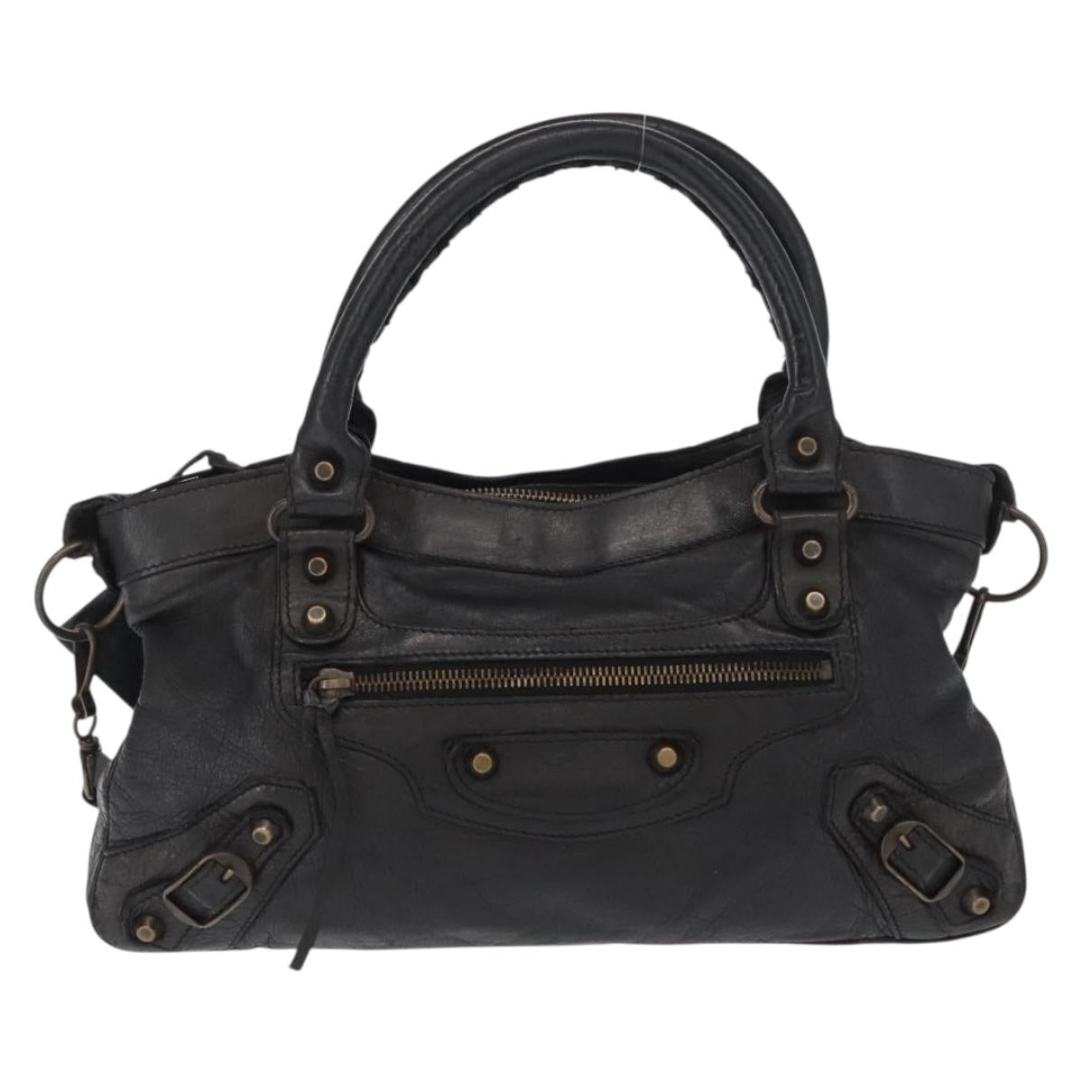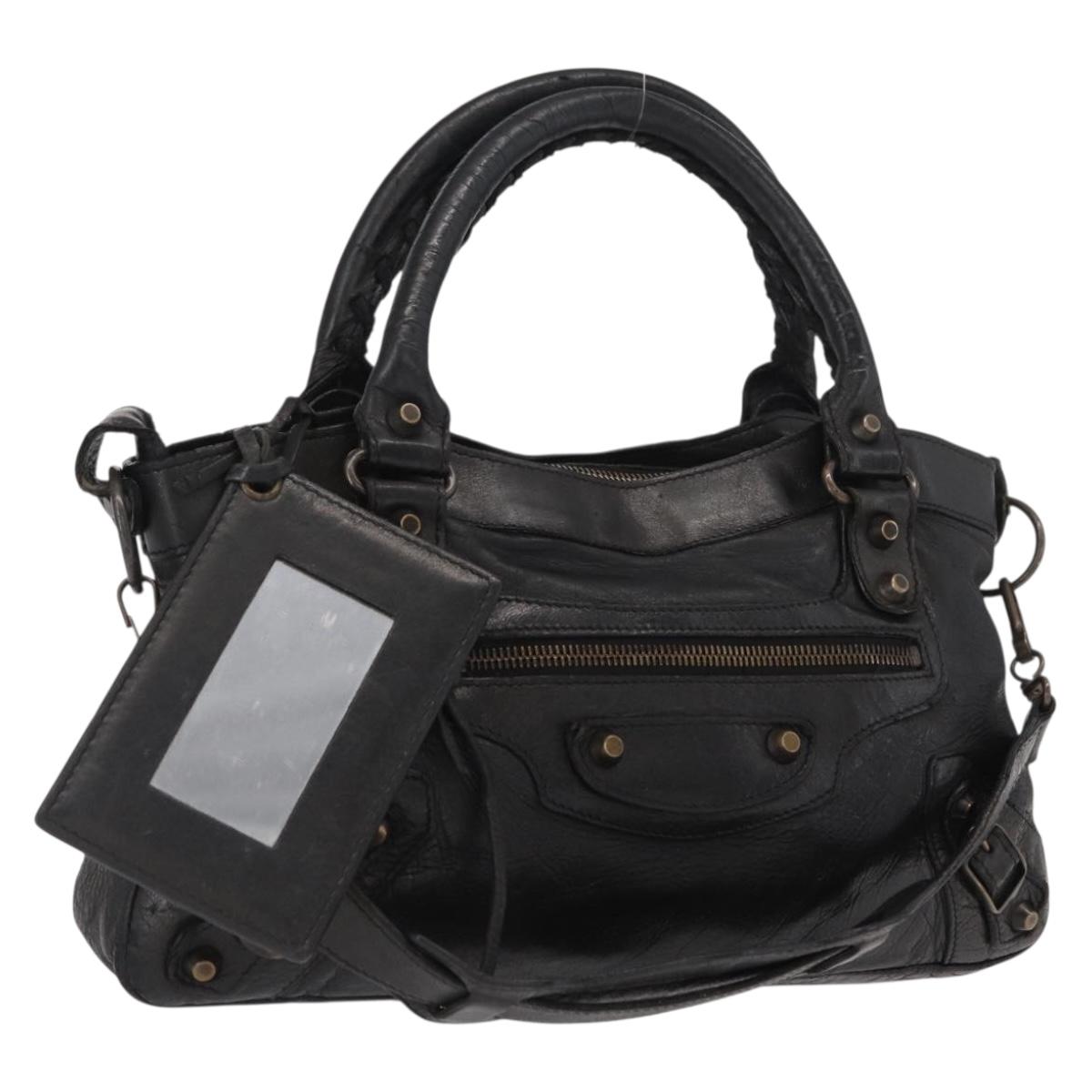 BALENCIAGA The First Shoulder Bag Leather Black 103208 Auth bs32637