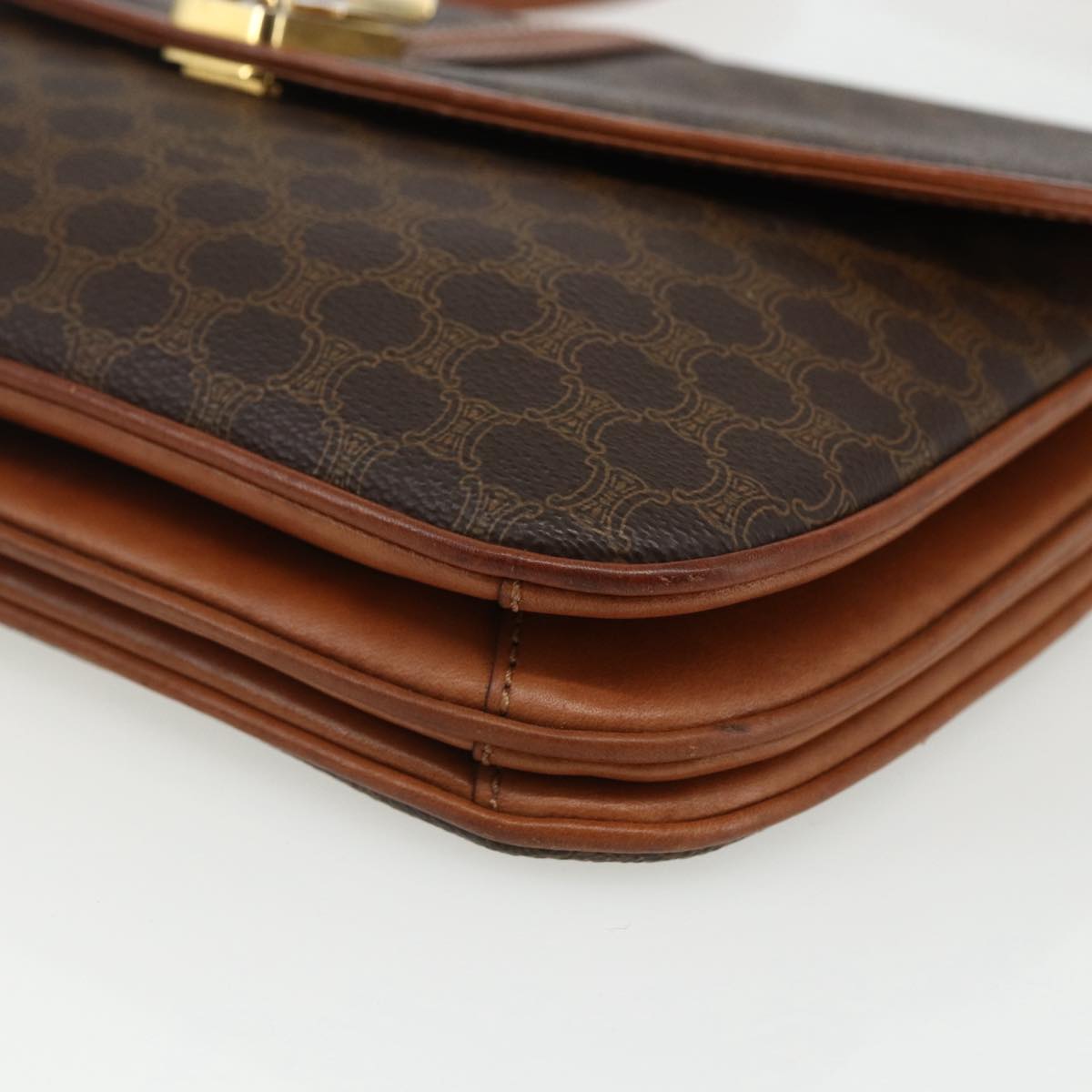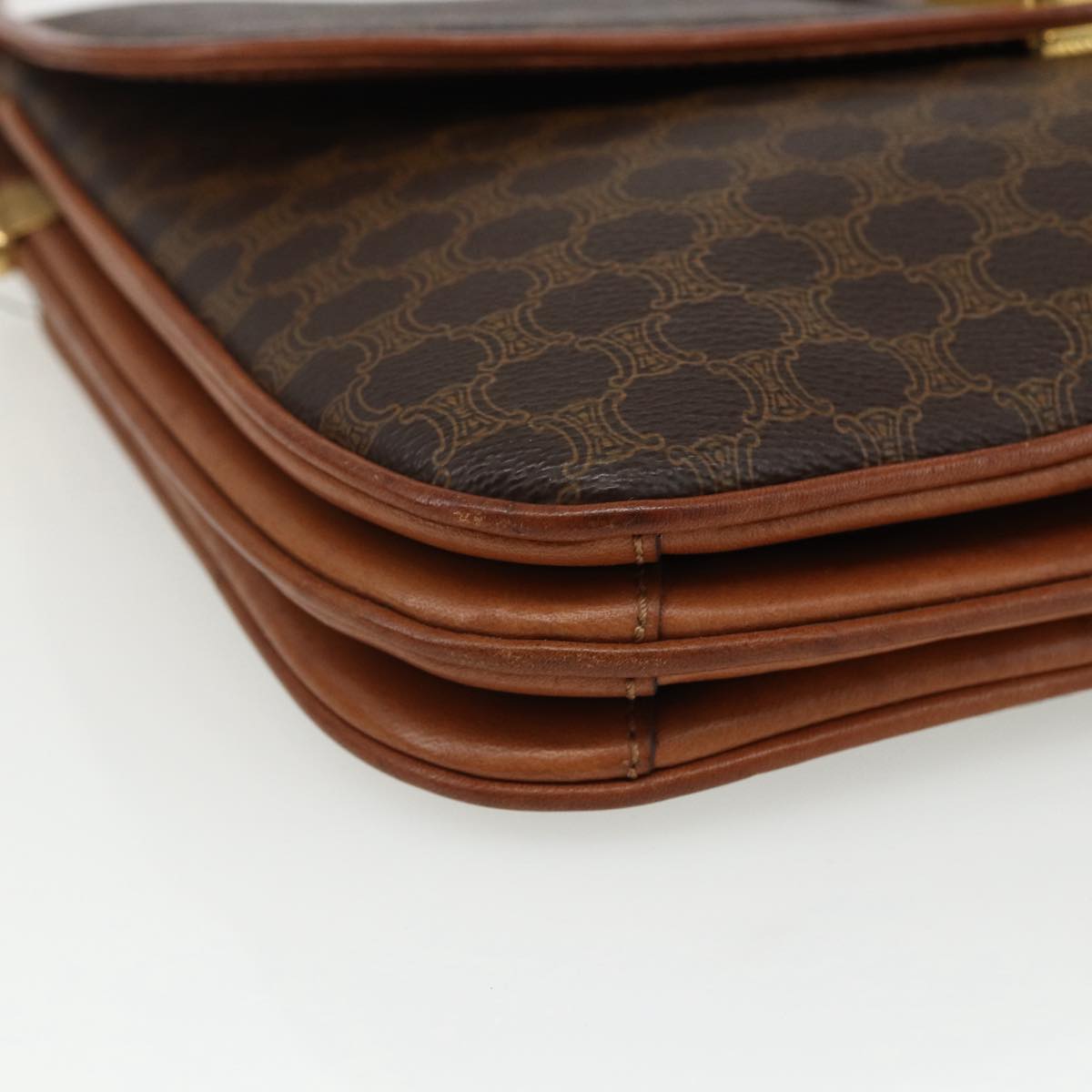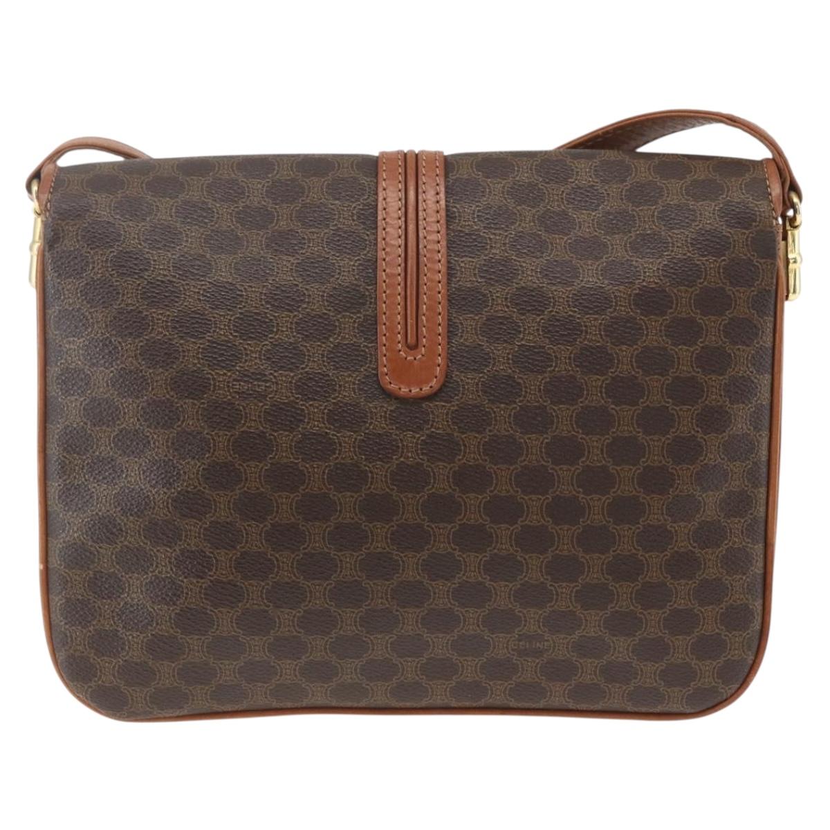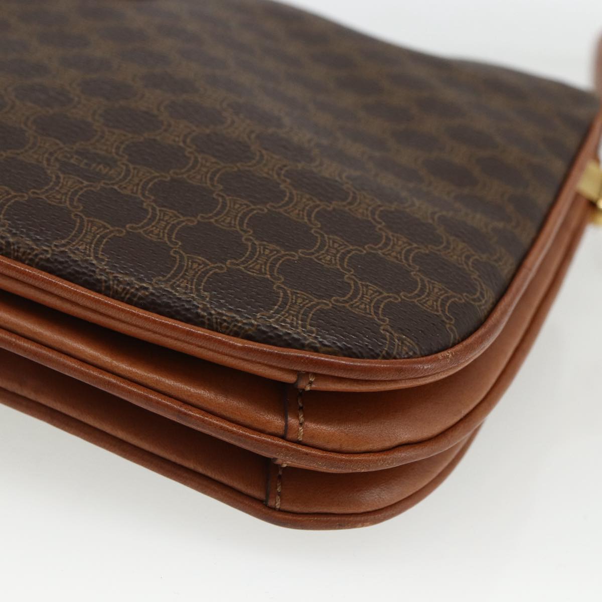 CELINE Macadam Canvas Shoulder Bag PVC Leather Brown Gold Auth 166352