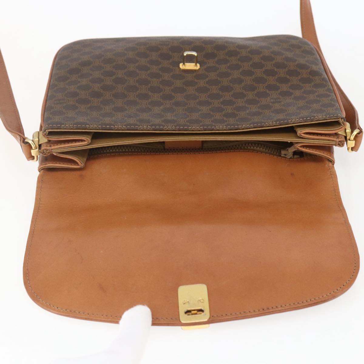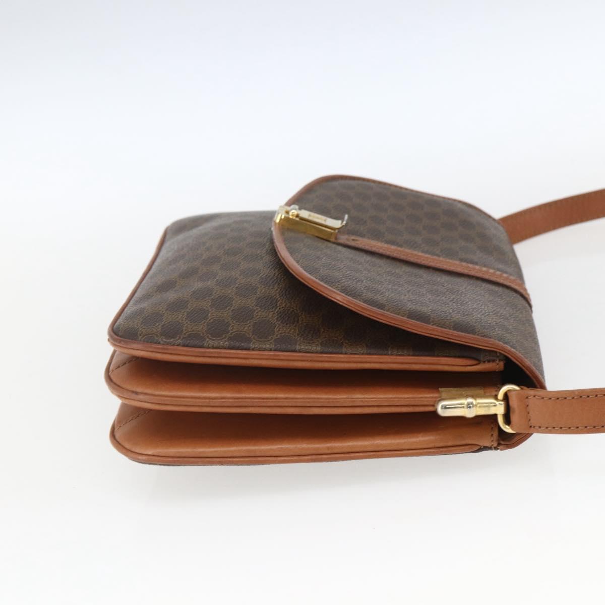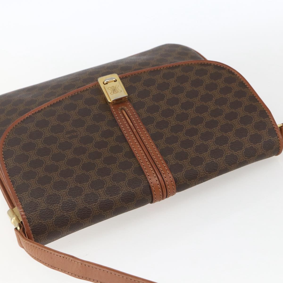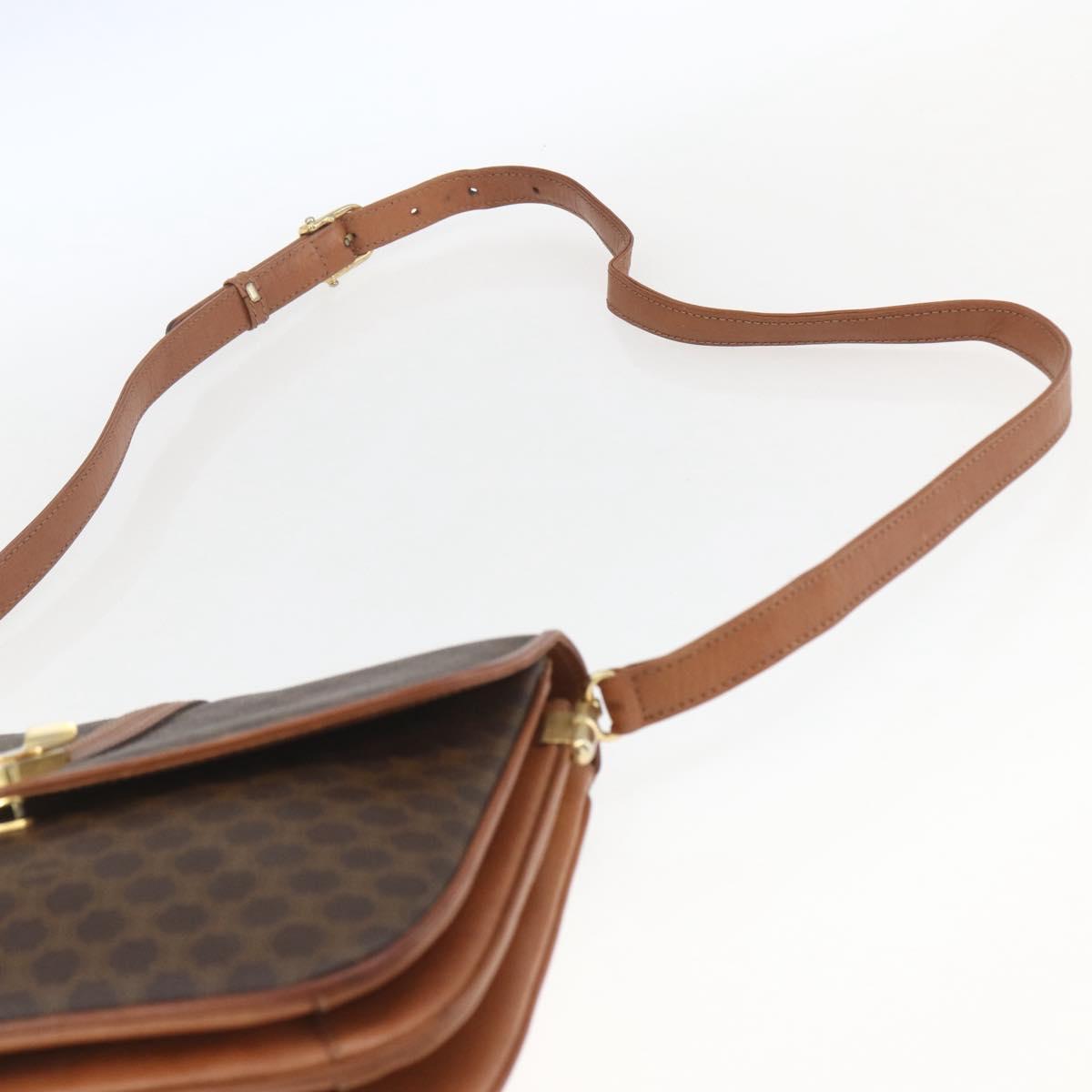 CELINE Macadam Canvas Shoulder Bag PVC Leather Brown Gold Auth 166352