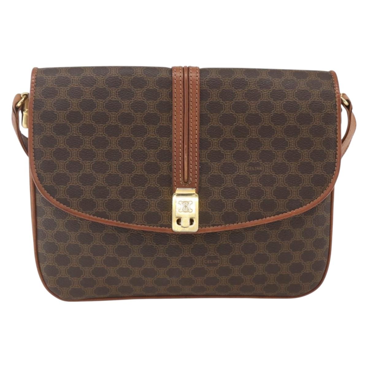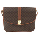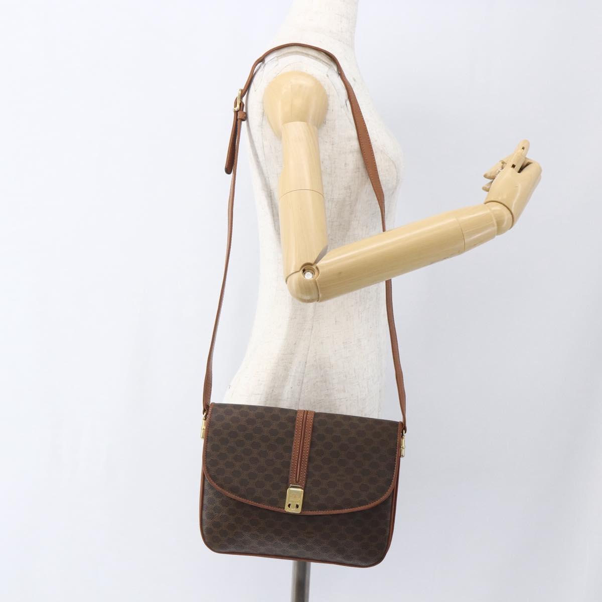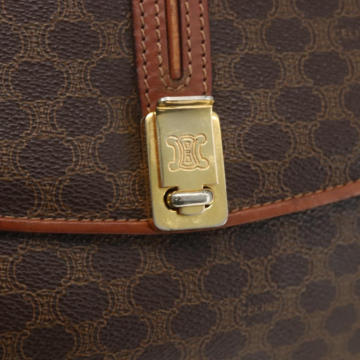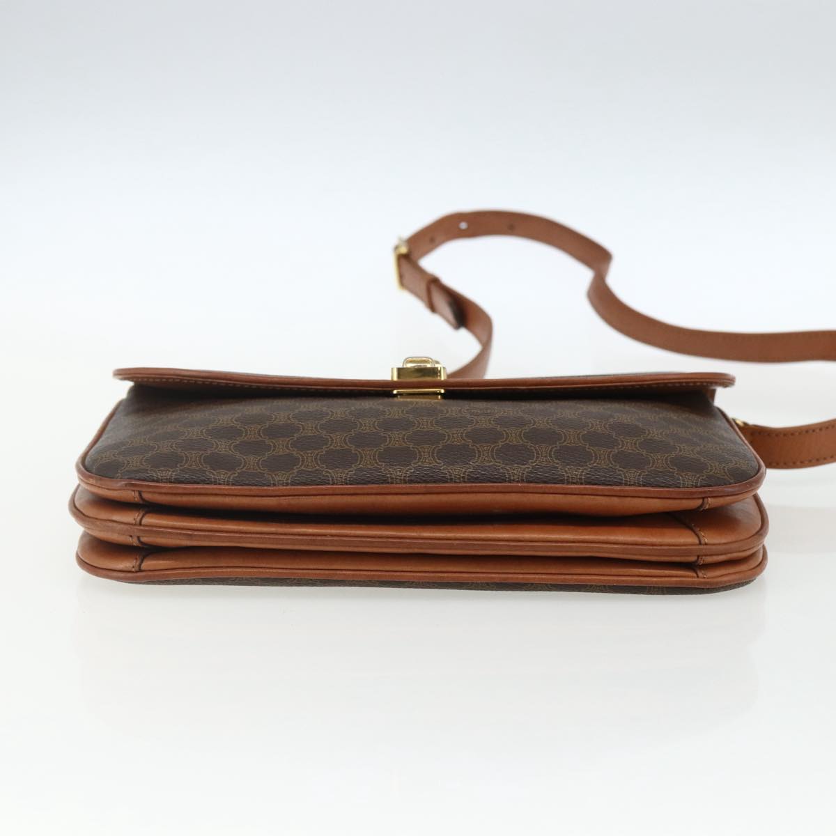 CELINE Macadam Canvas Shoulder Bag PVC Leather Brown Gold Auth 166352