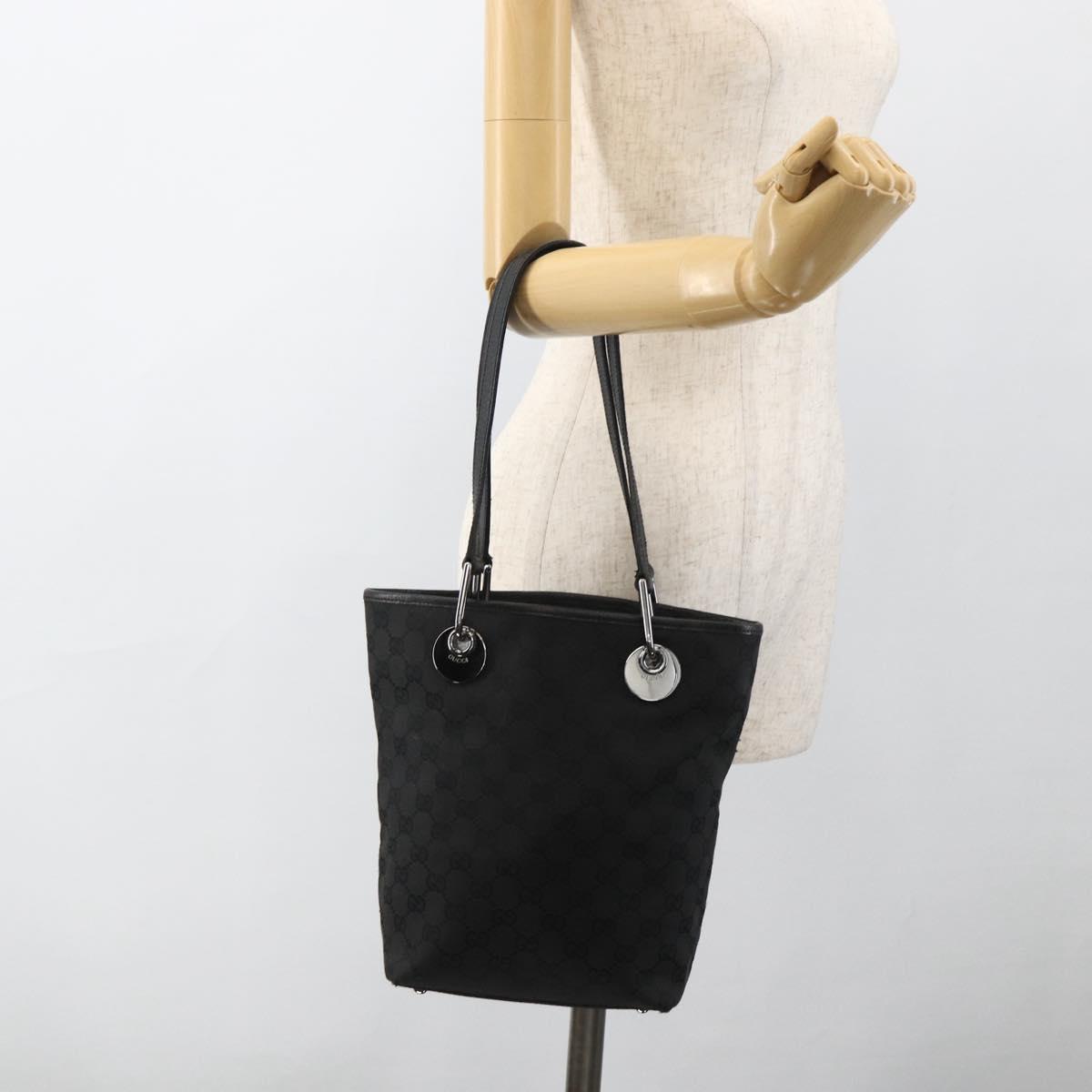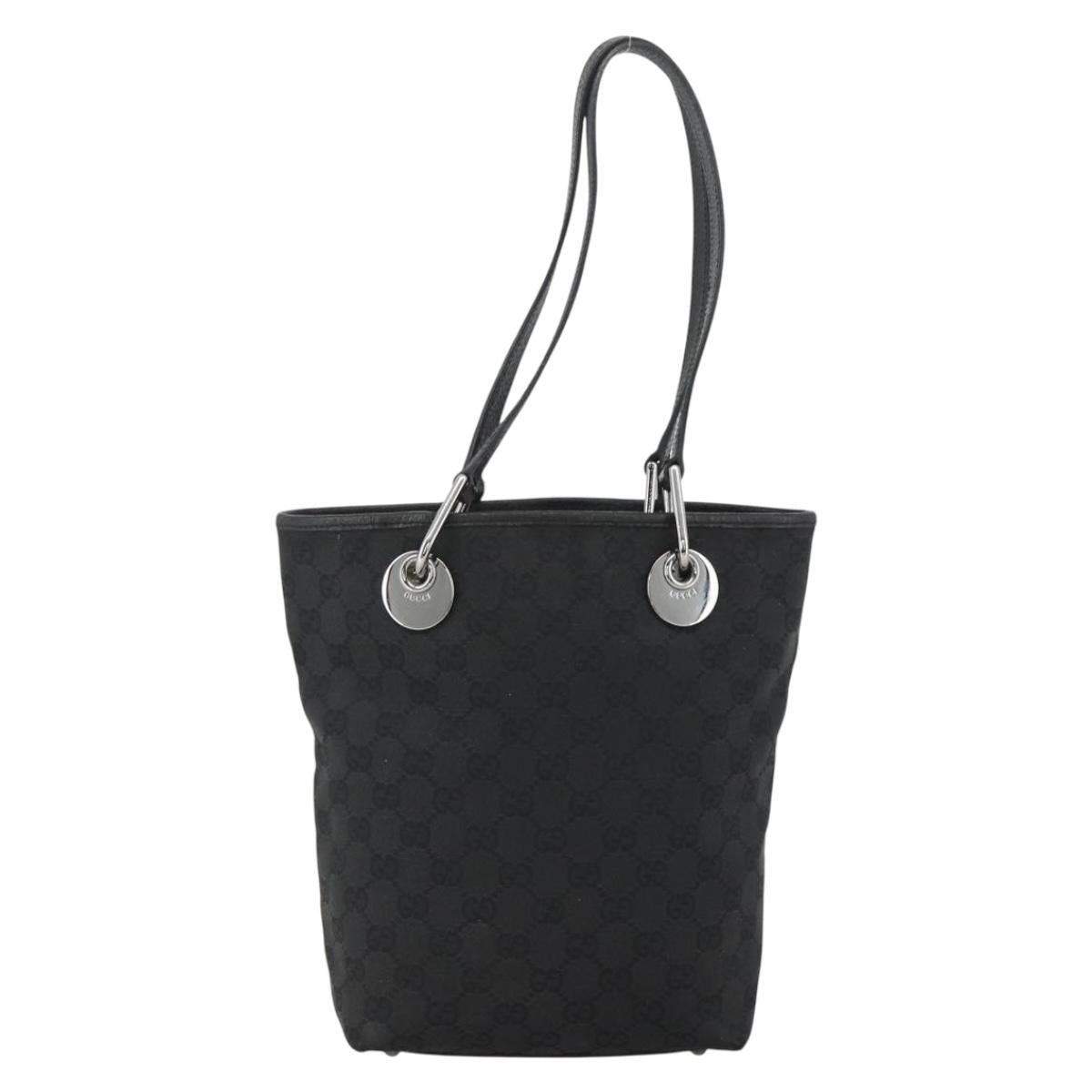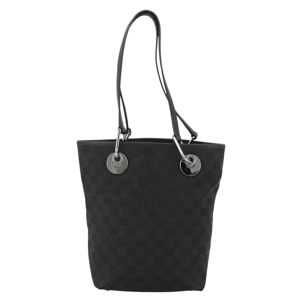 GUCCI GG Canvas Tote Bag Black Silver 120840 Auth ka2935