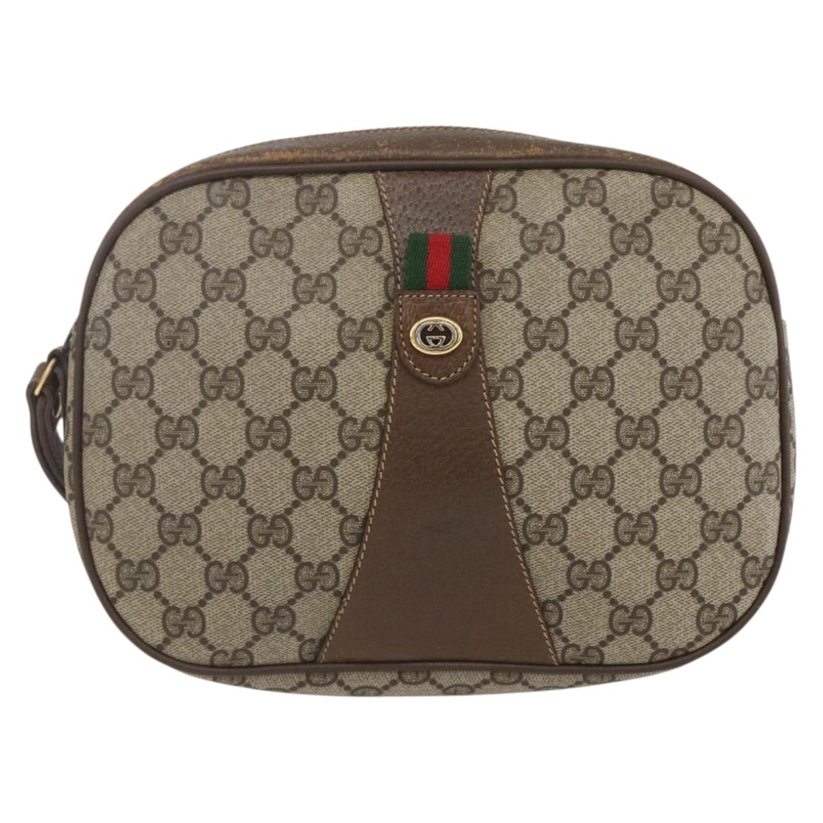GUCCI GG Supreme Web Sherry Line Clutch Bag PVC Beige Gold 89 01 034 Auth 158515