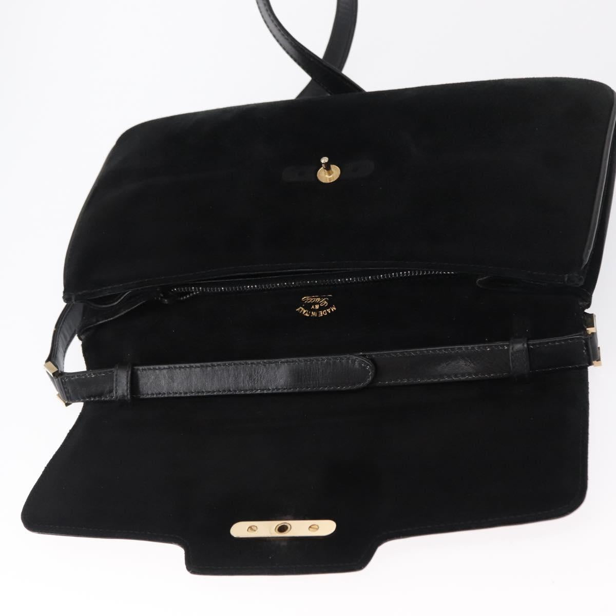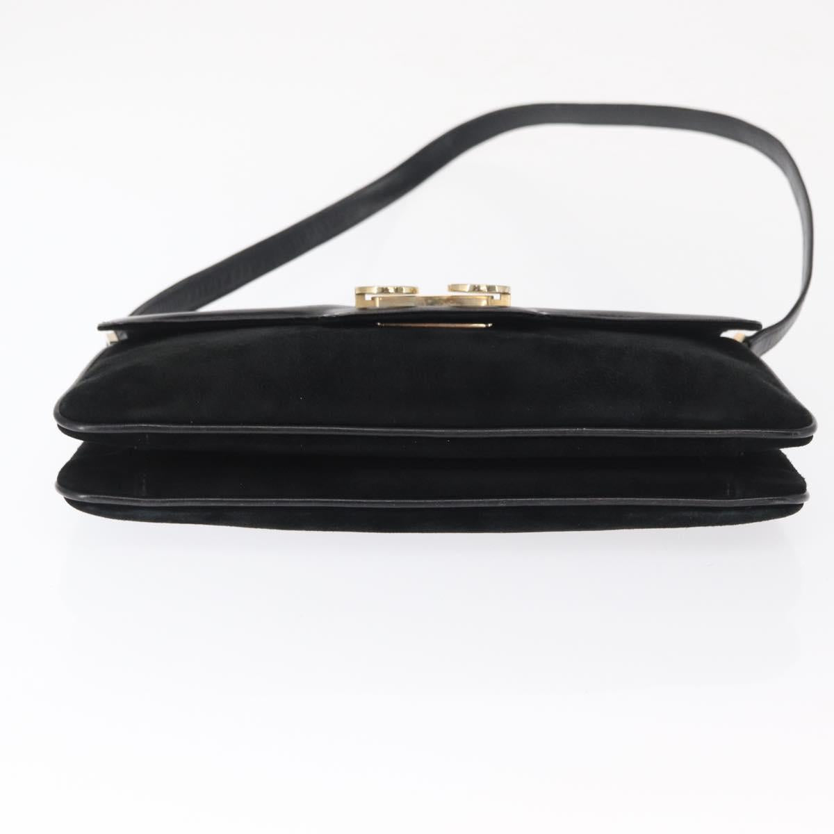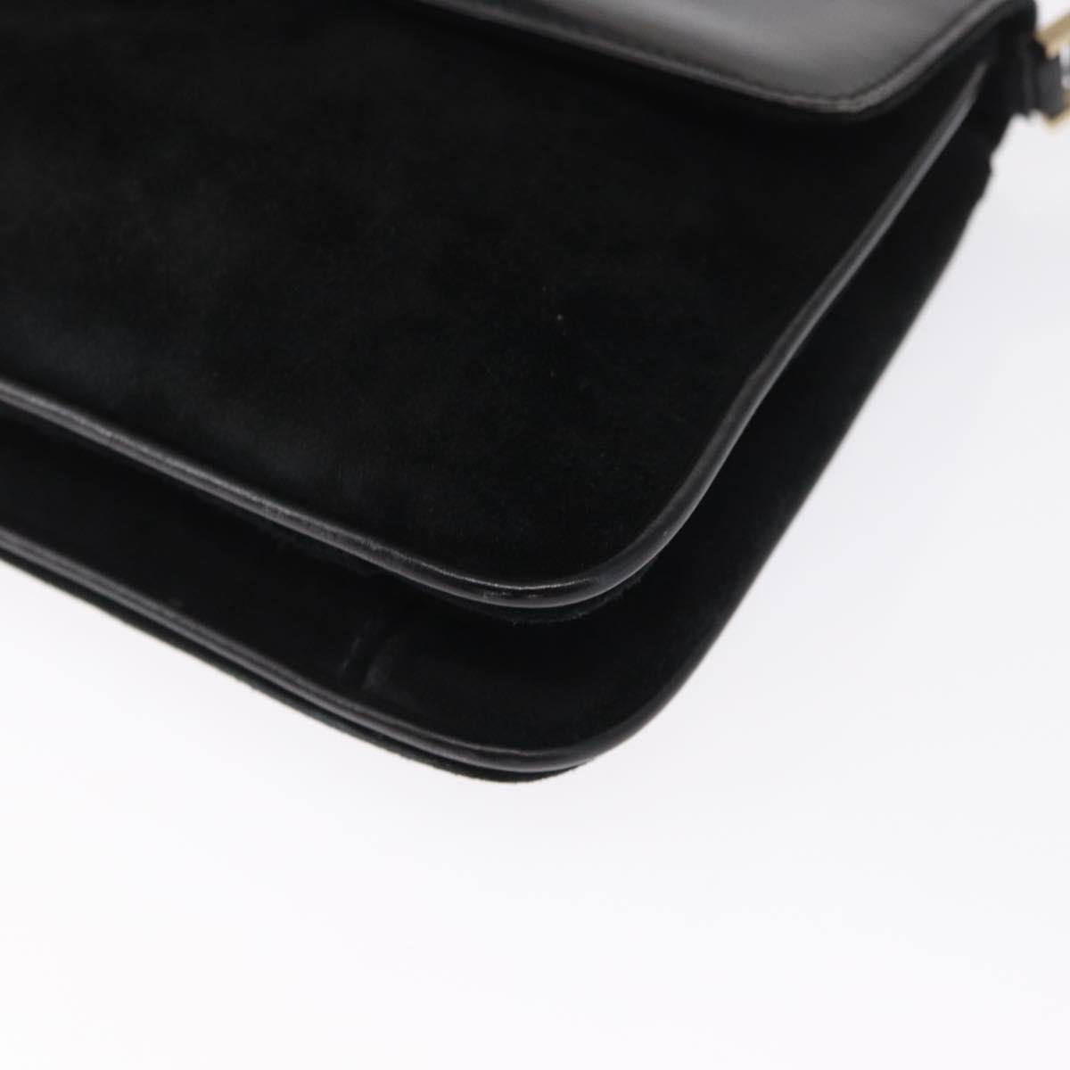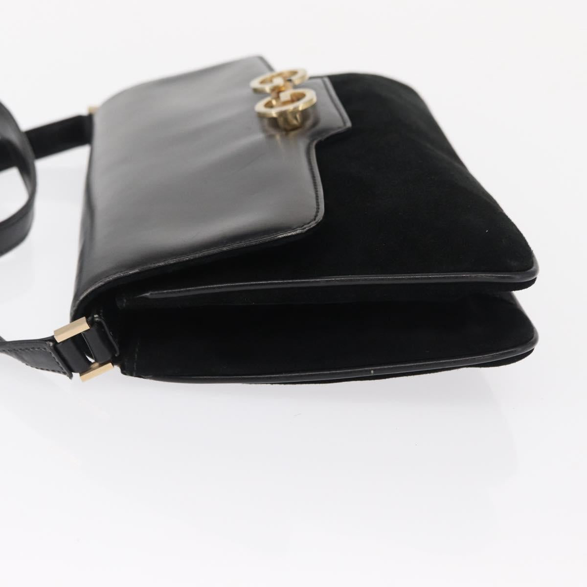 GUCCI Shoulder Bag Suede Black Gold Auth ep12880