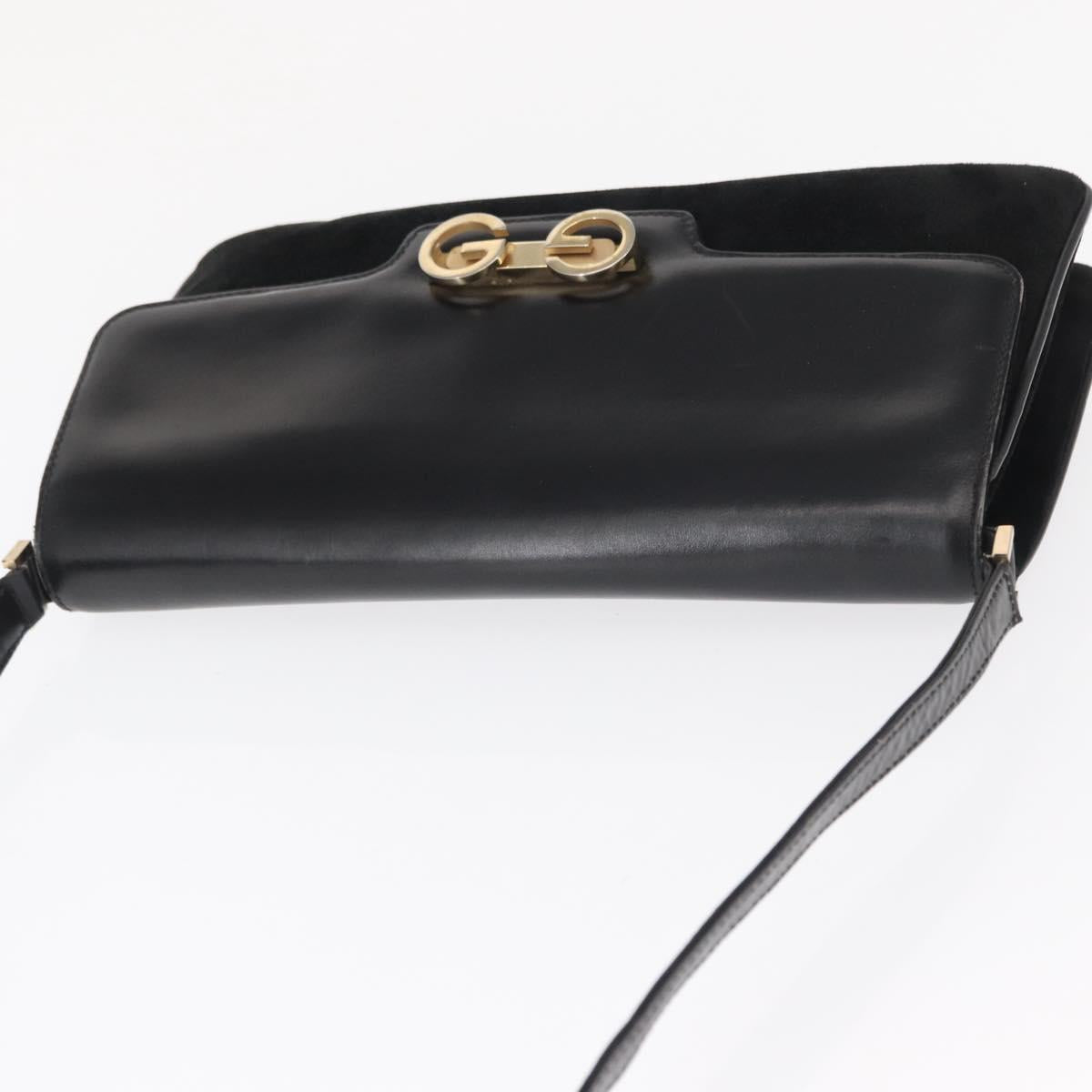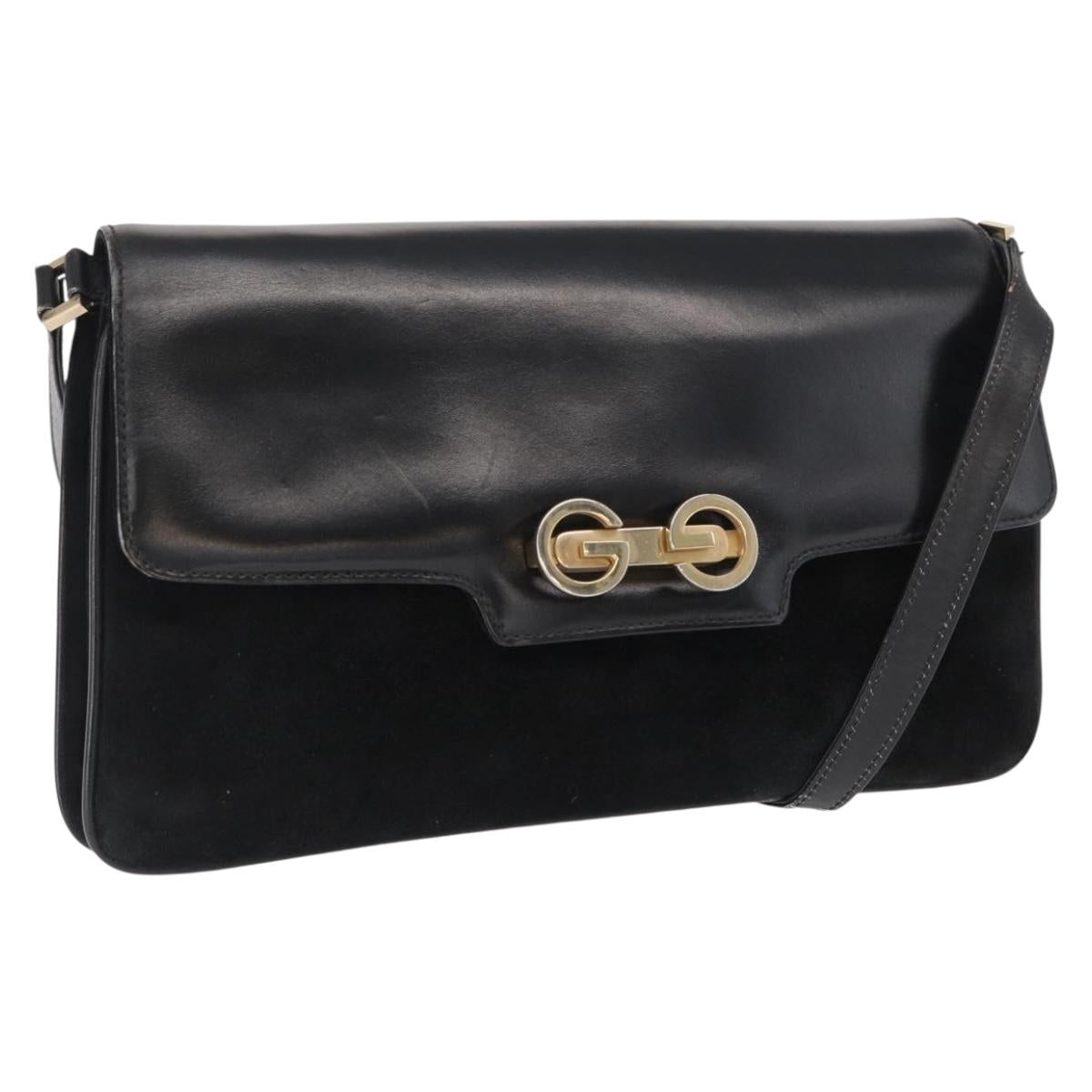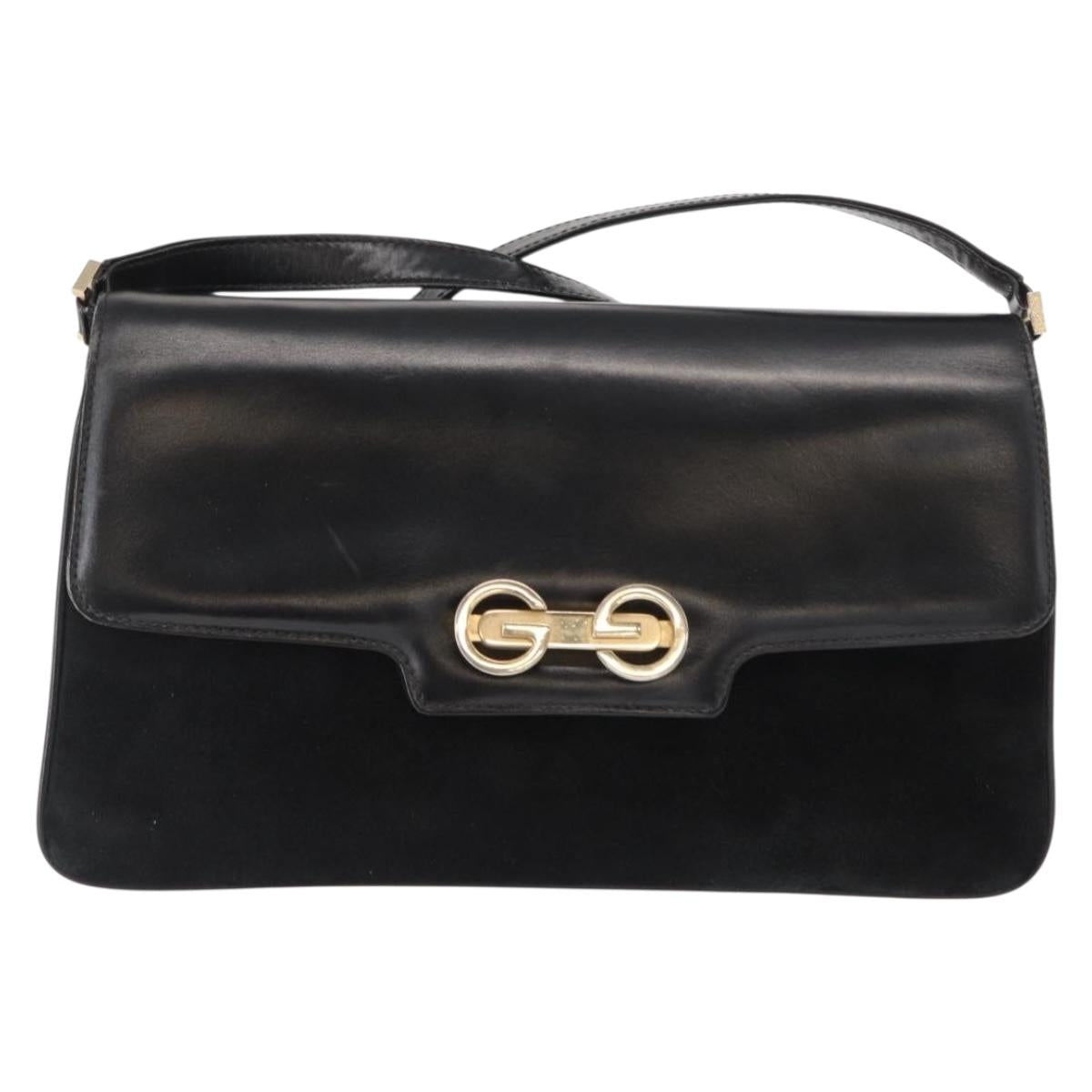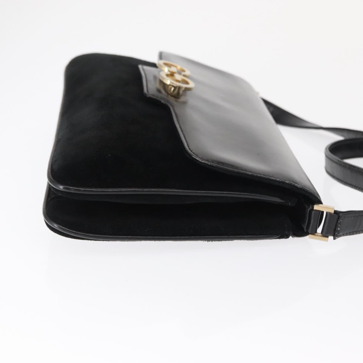 GUCCI Shoulder Bag Suede Black Gold Auth ep12880