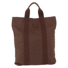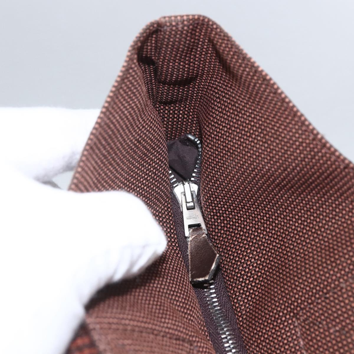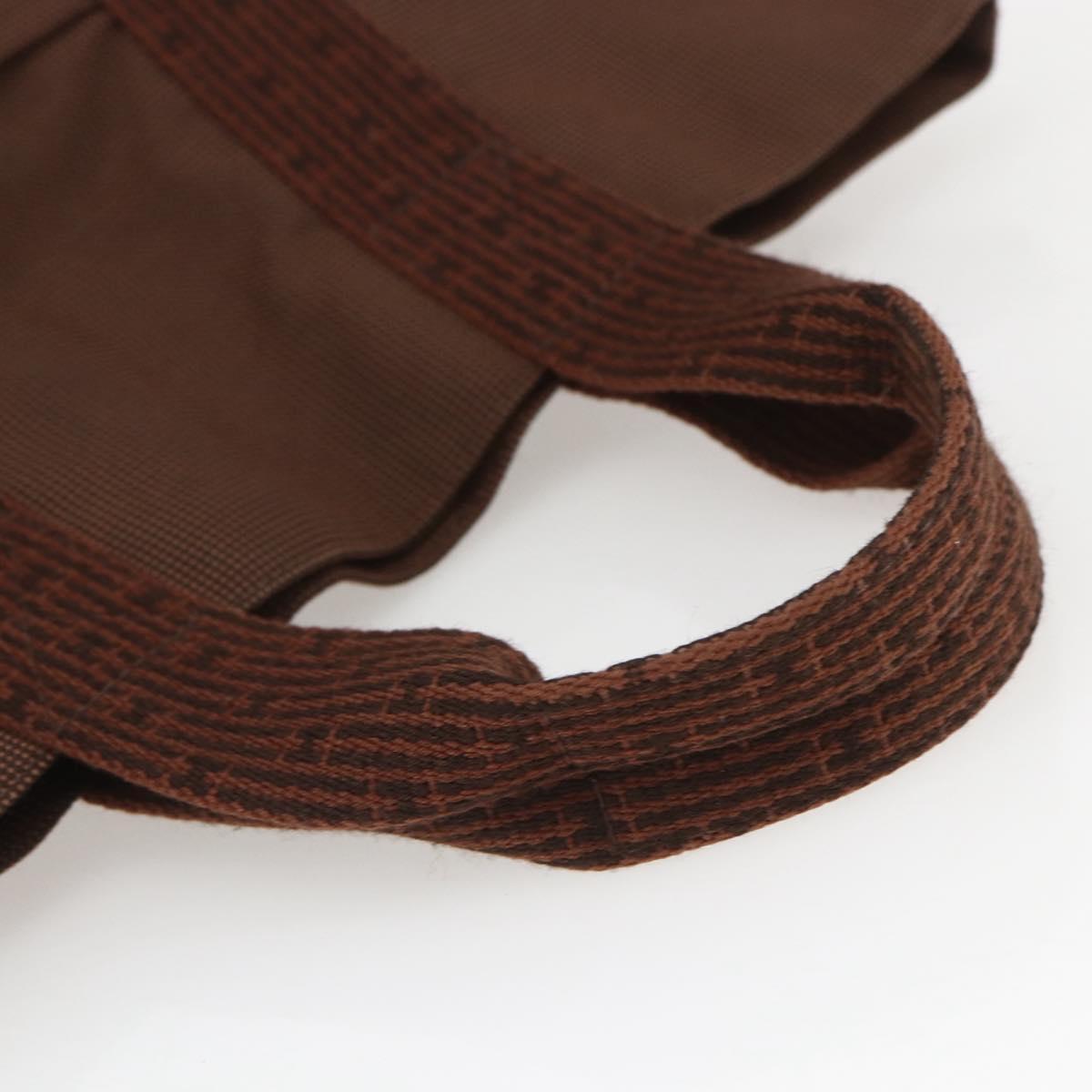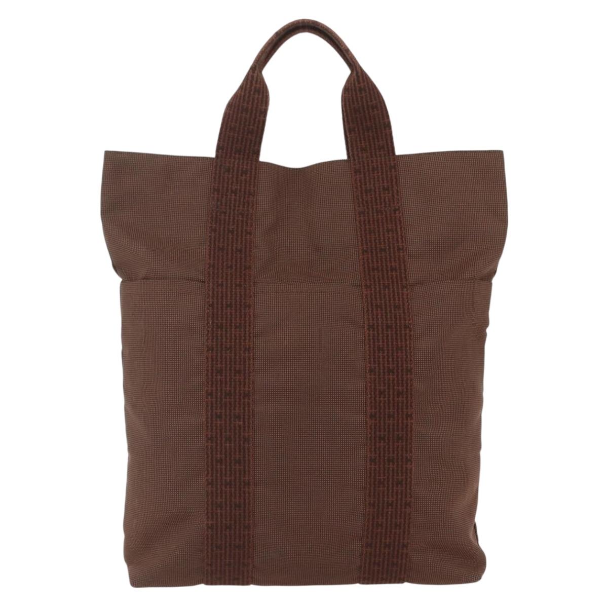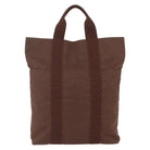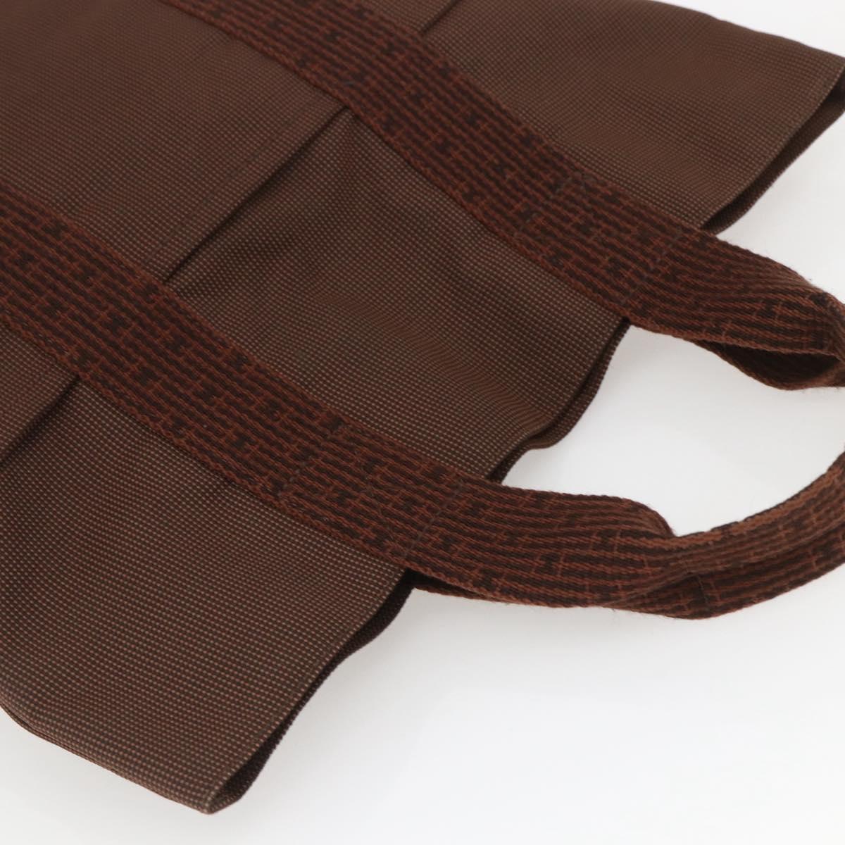 HERMES Her Line Cabas Tote Bag Canvas Brown Silver Auth 165552