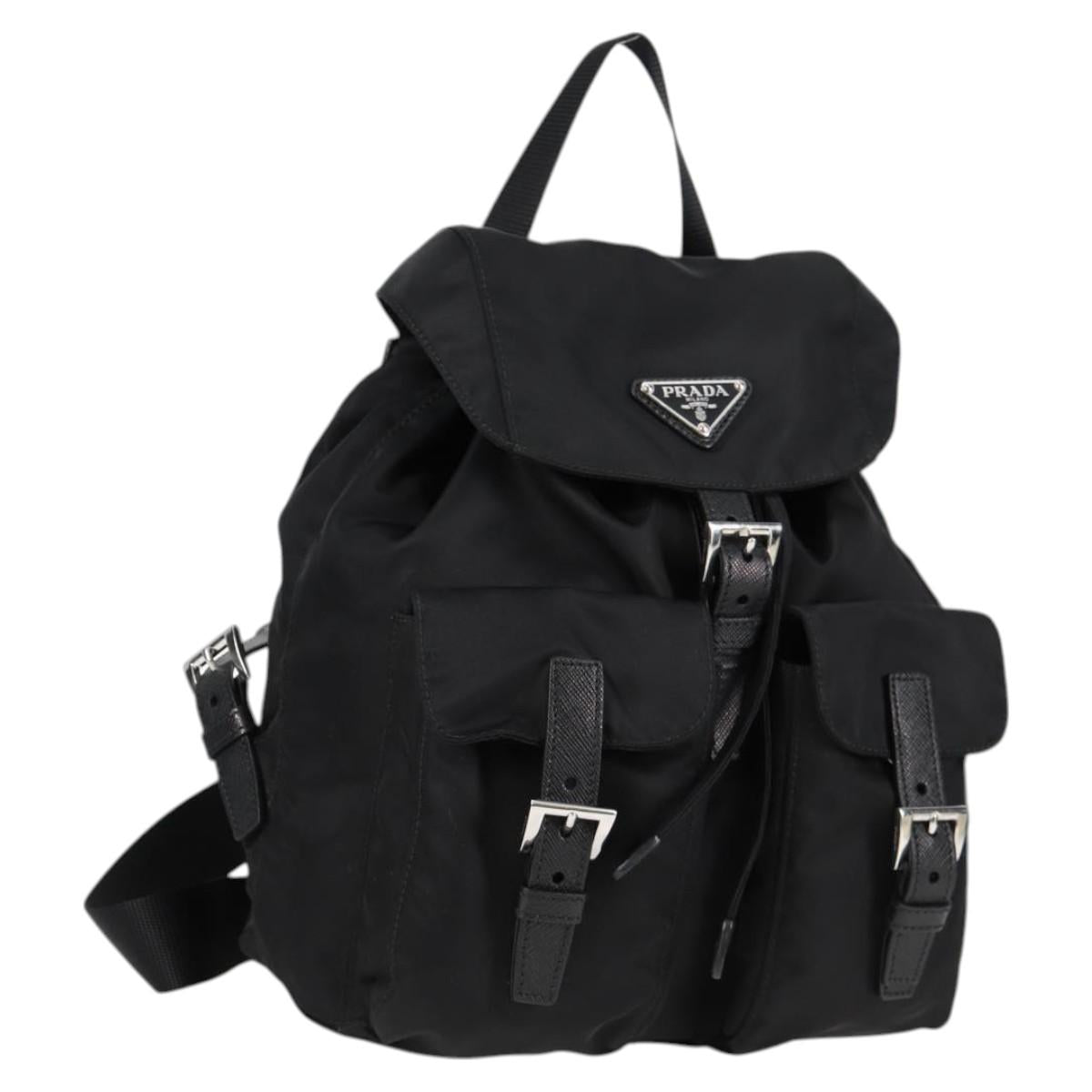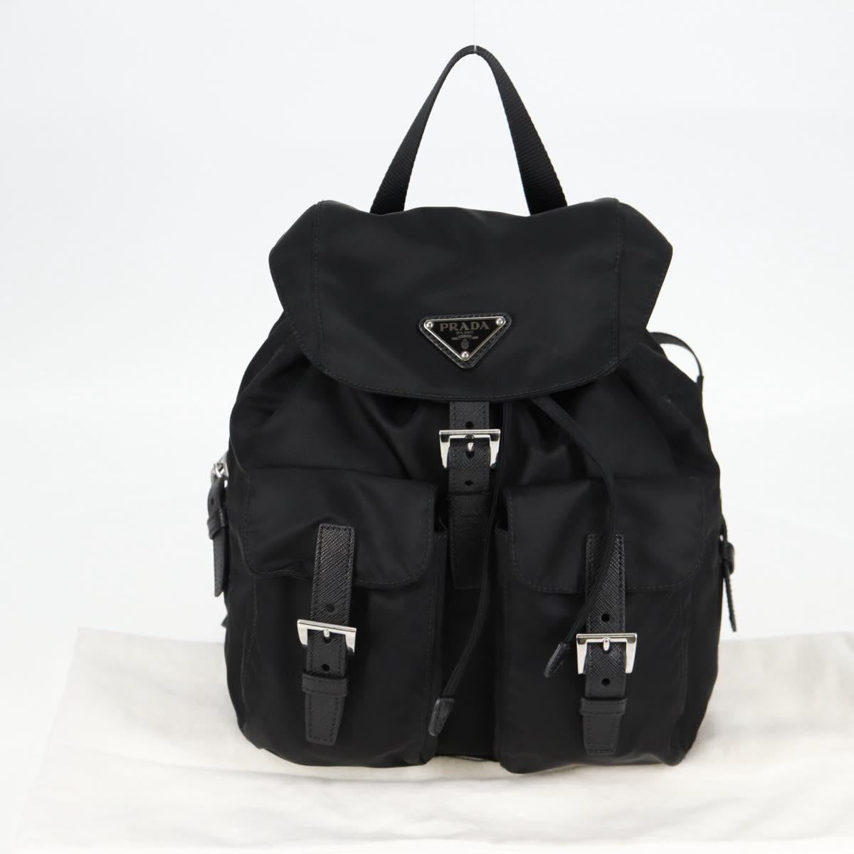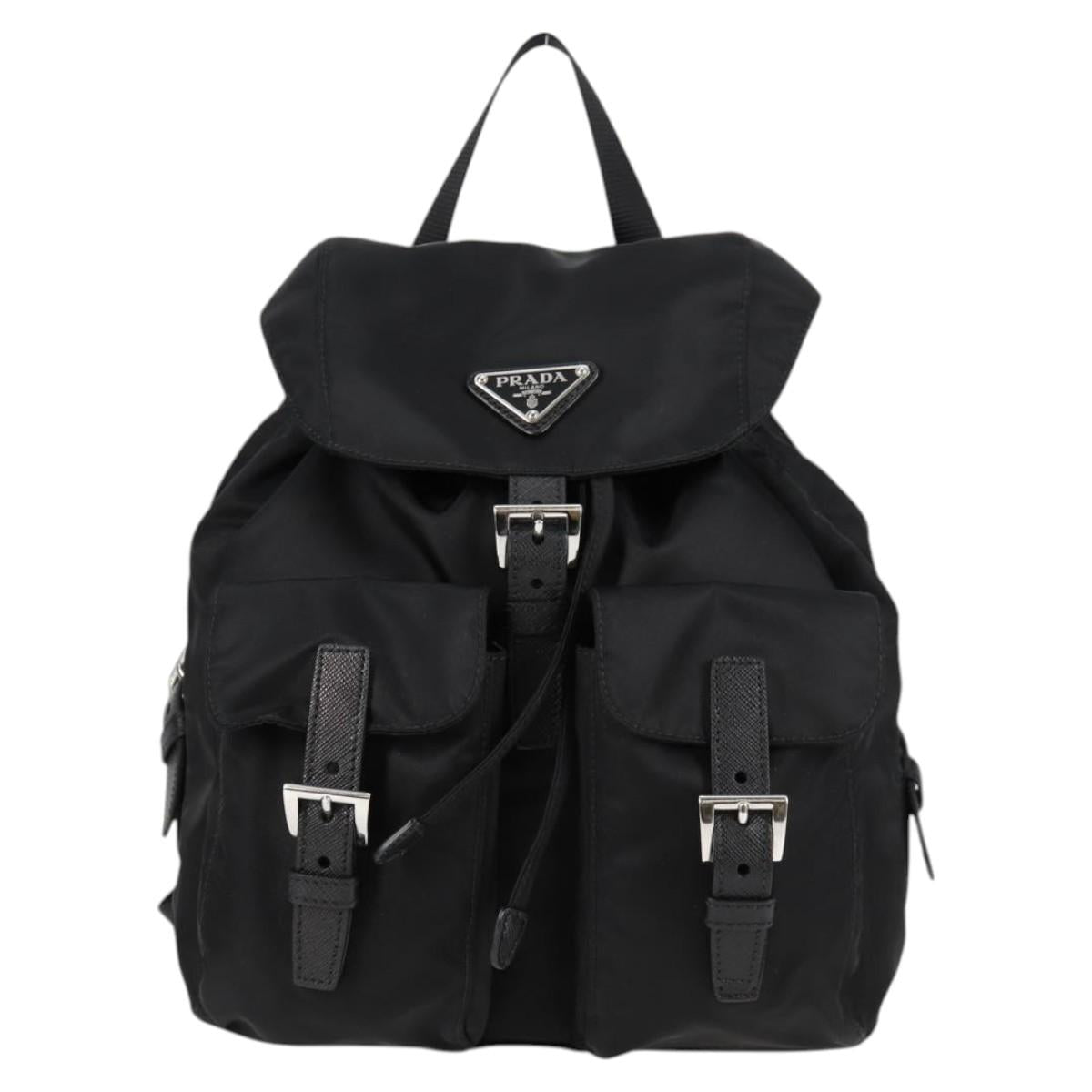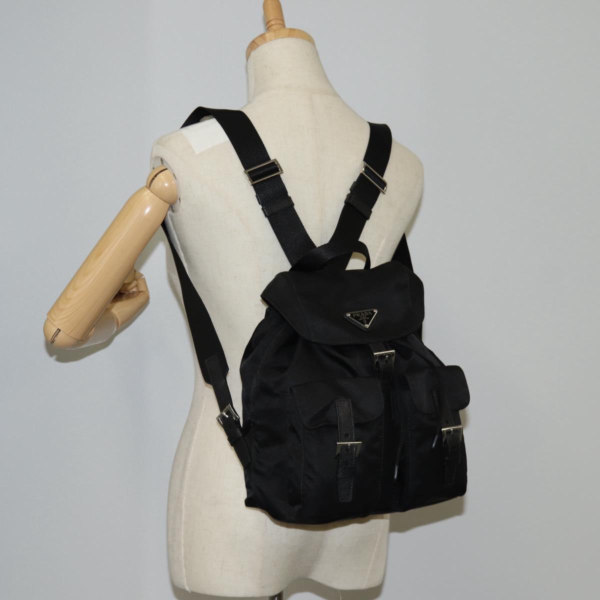 PRADA Backpack Nylon Black Silver 1BZ677 Auth yk18088AM
