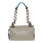 BALENCIAGA Turn Lock Chain Shoulder Bag Leather Beige Gray Silver Auth am6814V