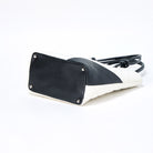 CHANEL Cambon Medium Tote 2004 Hand Bag White Black Silver Lamb Skin Auth